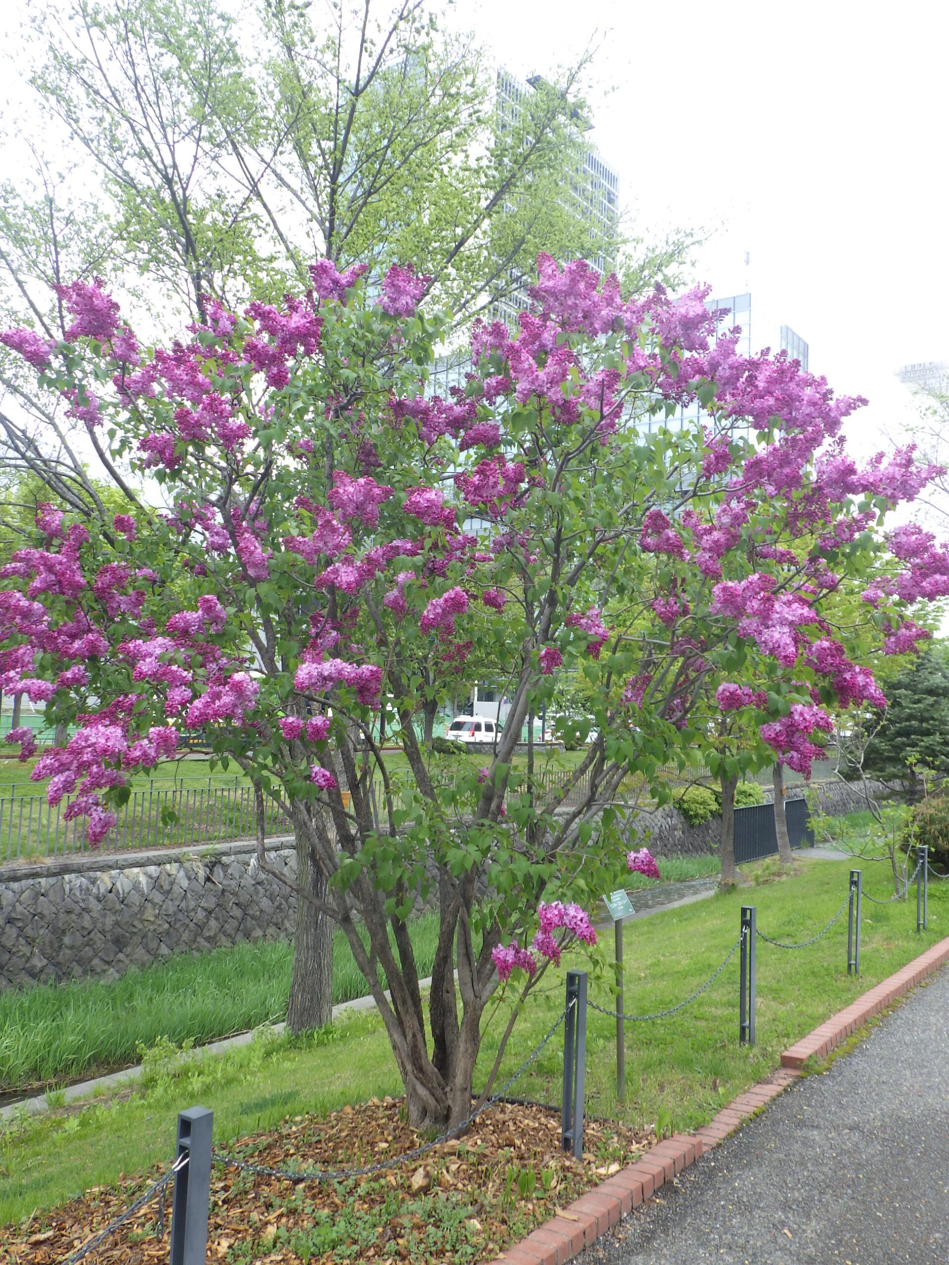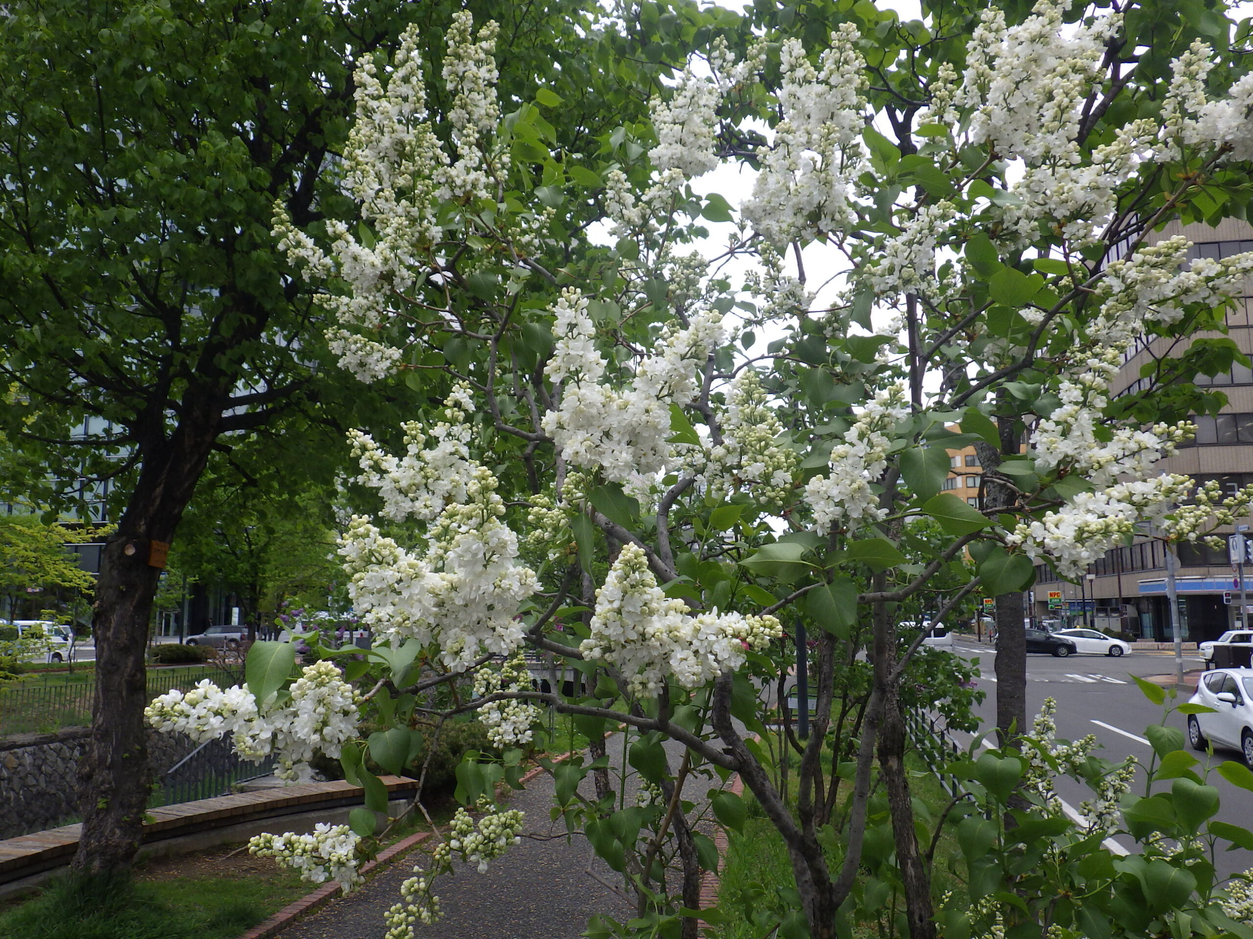 5月8日水曜日、一桁の気温となった肌寒い中、ライラックは次々と開花しています。
