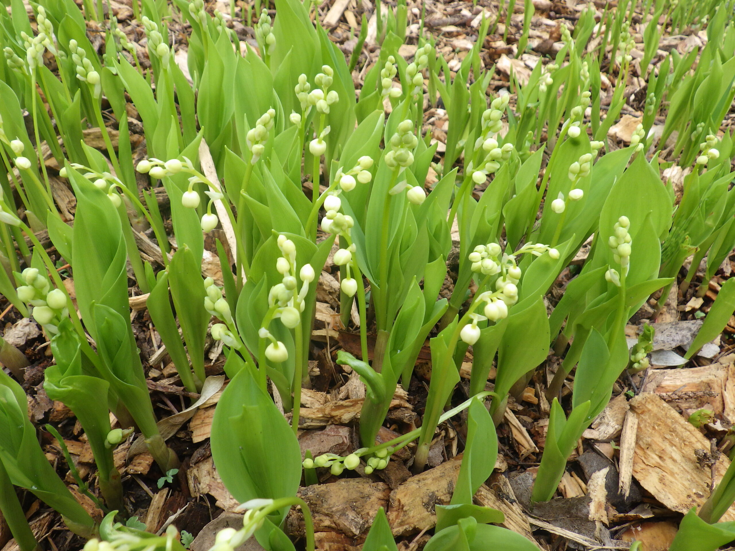 公園内に約35か所ある「ドイツスズラン」の花壇では、たくさんの芽が出て、つぼみのついているものもあります。