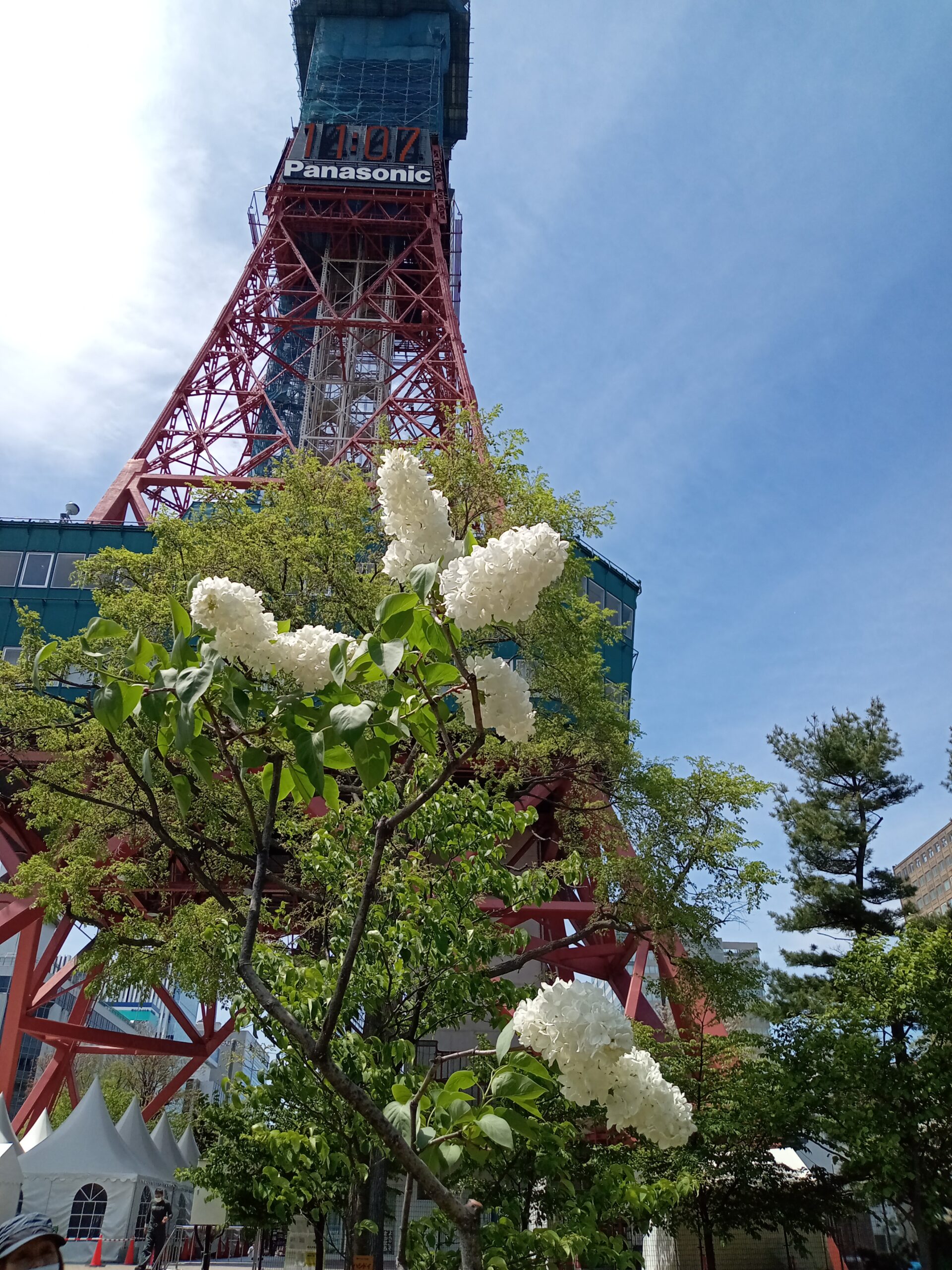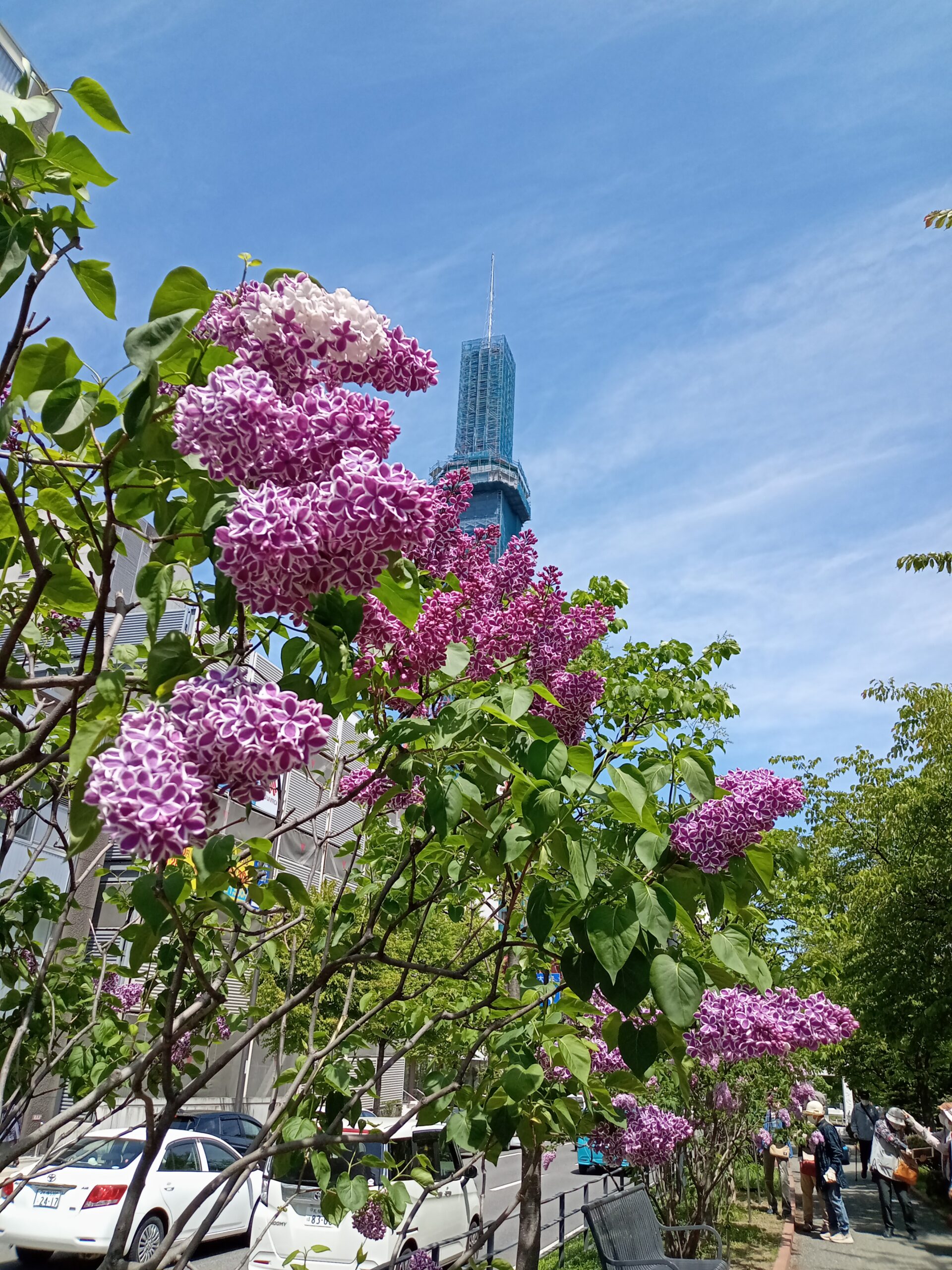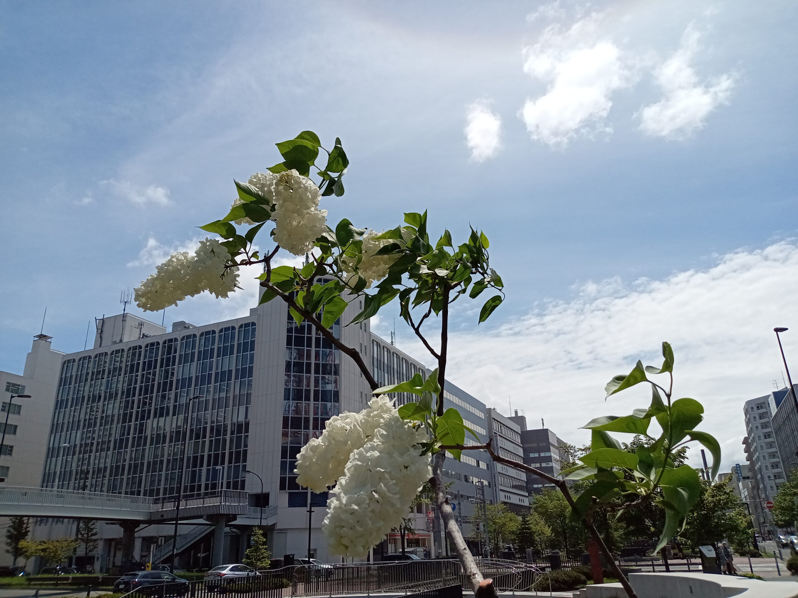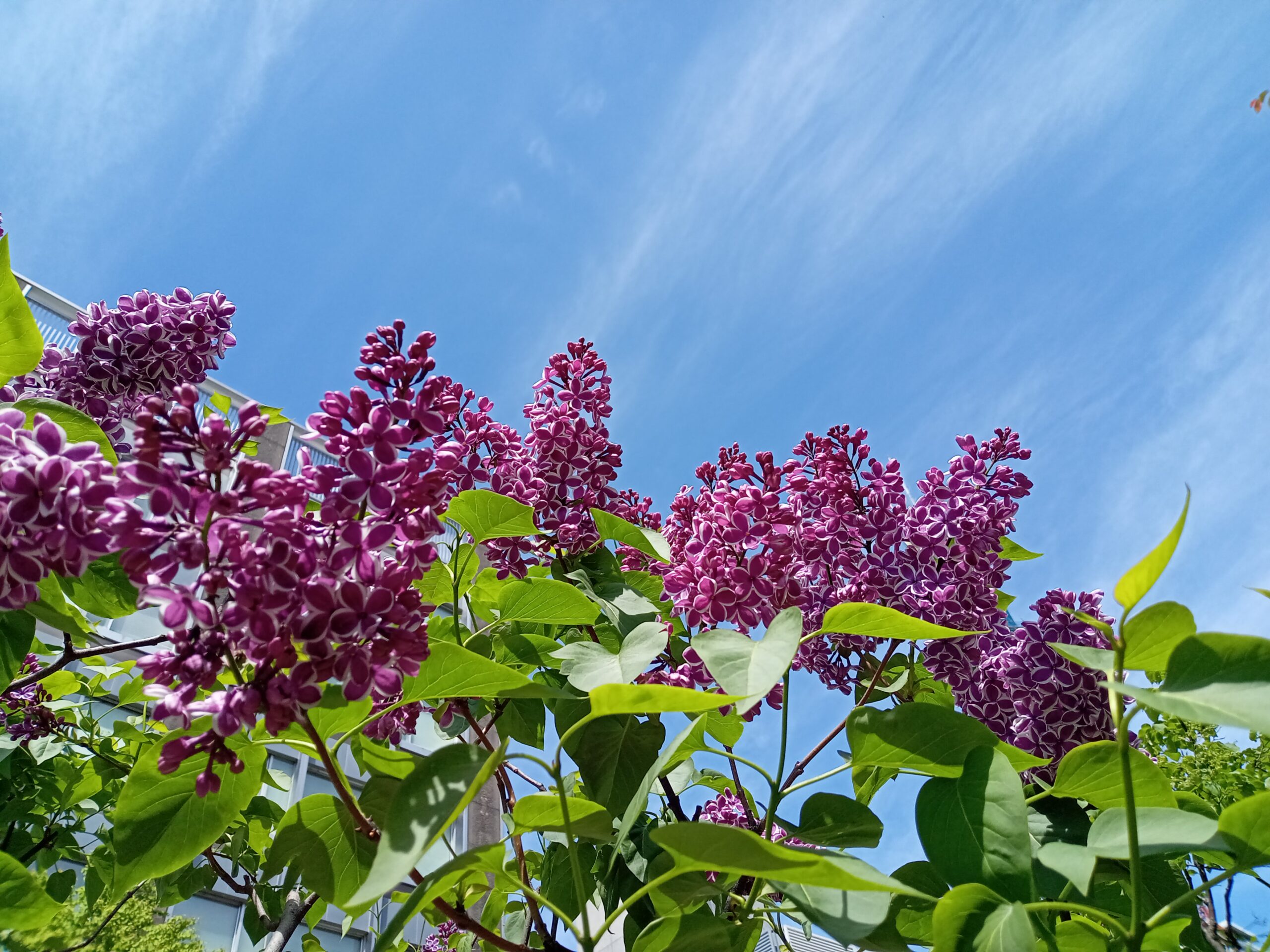 5月16日木曜日、晴れた空にライラックが映えています。