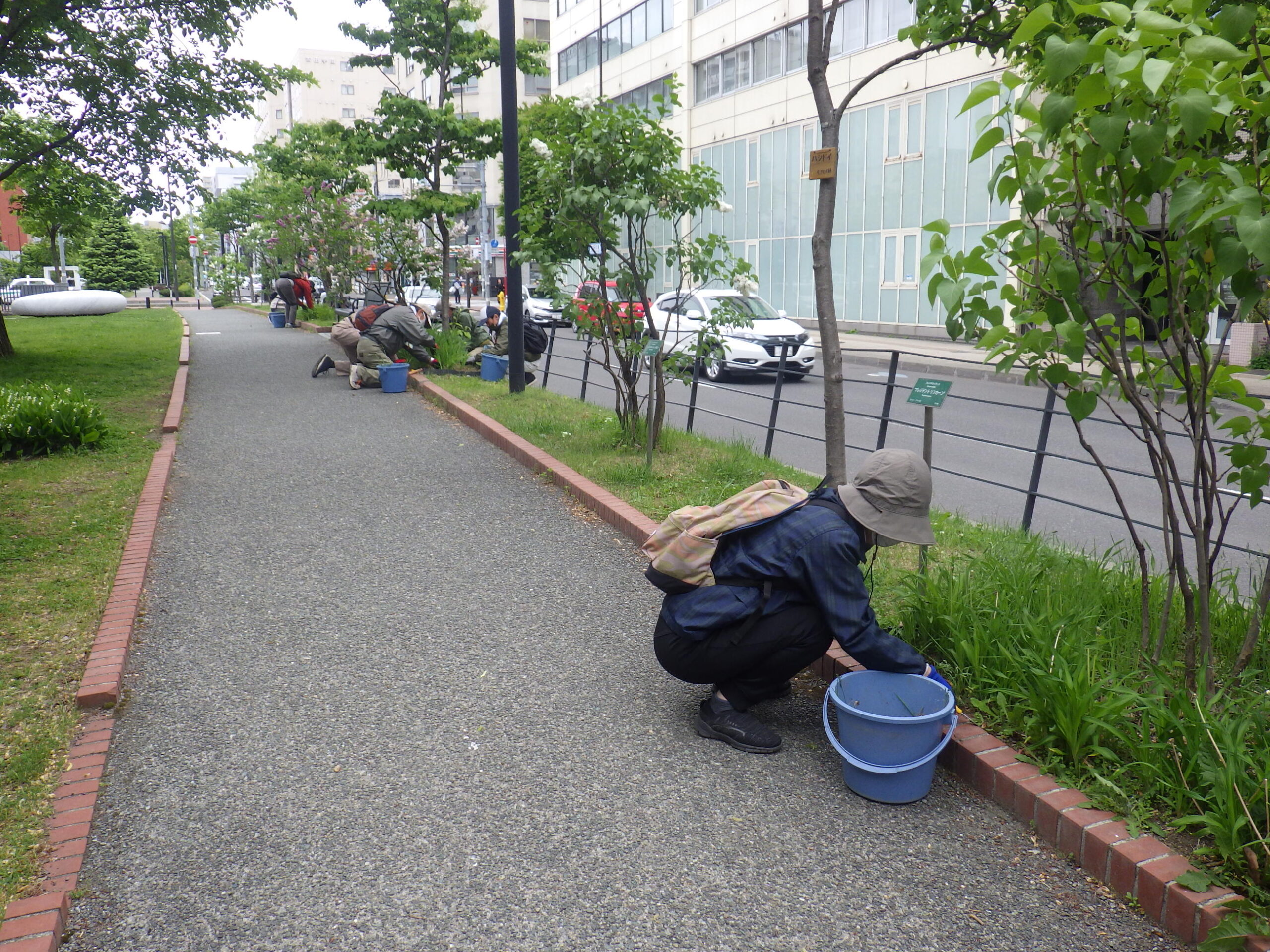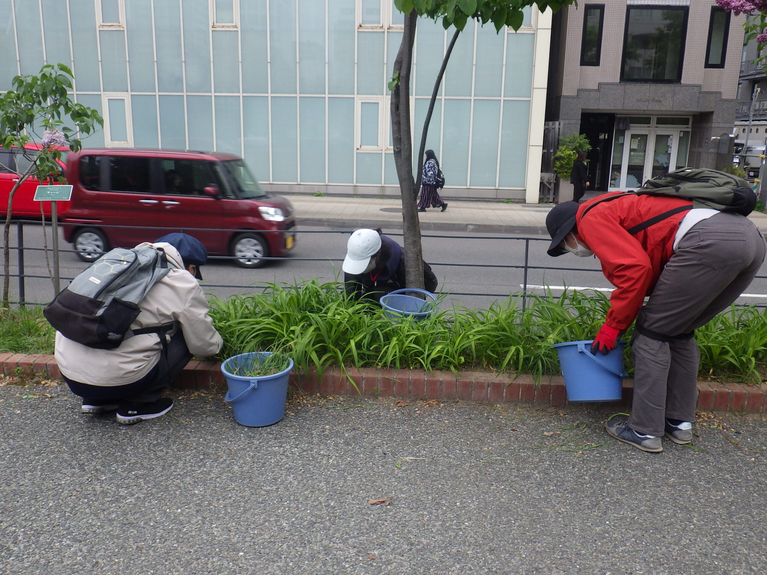 5月29日水曜日、お助け隊ではヘメロカリス花壇の除草。