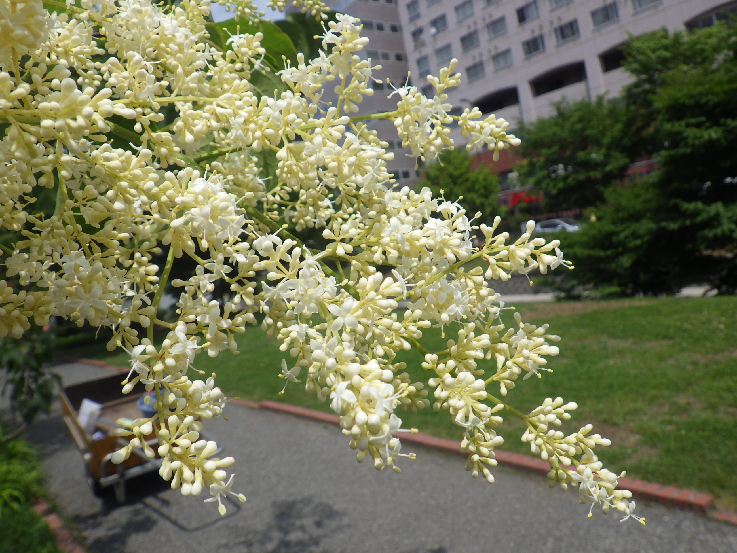 6月12日水曜日、今年一番早く咲いた、南2条西側のハシドイの花です。 公園内には約130本ほどのハシドイが植えられています。 この後、順次開花していきそうですね。本当に早いです。 今年は色々な樹木で花の付きが多いようです。公園内のハシドイもたくさんのつぼみをつけています。 ハシドイは、ジャパニーズツリーライラックと言われ、ライラックの日本の原種、自生種です。 香りが強く、淡いオフホワイトの柔らかな花が初夏を彩ります。