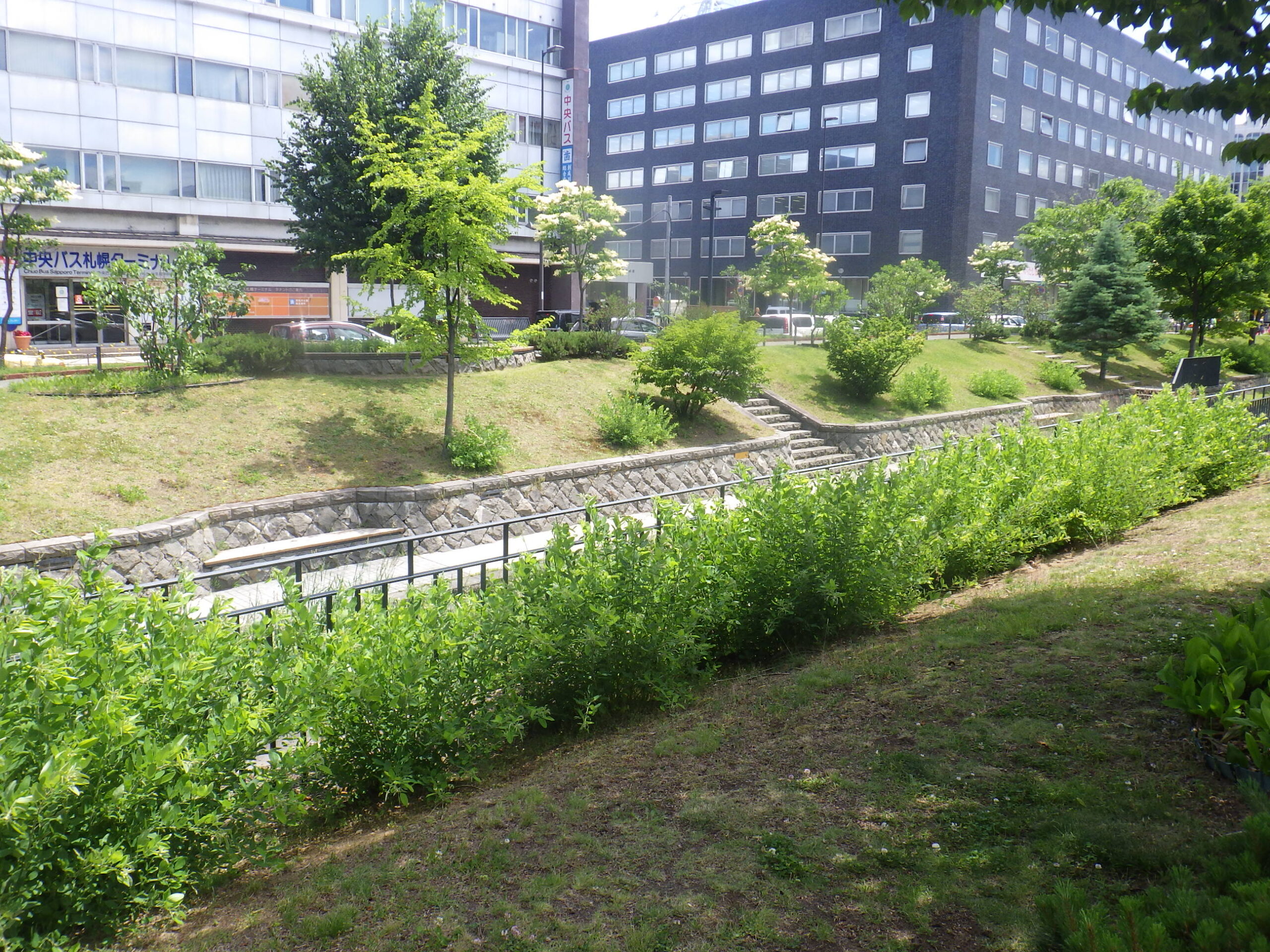 6月18日火曜日、狸二条広場の両サイドにあるシモツケの花が咲いていました。 ピンクの小さな花が集まったかわいい花です。 ハシドイの花は、まだつぼみのもの、満開のもの、少し茶色くなっているもの、日当たりなどの影響か場所によって違いますが、今見頃です。 ヘメロカリスのステラデオロの花が咲いています。 他のヘメロカリスは茎があがり、つぼみができてきました。早いですね。 ツルアジサイもきれいに咲いています。 秋の花、ハギ、も育ってきています。