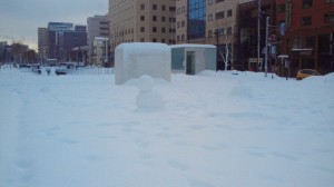 狸二条広場には、いくつかの雪だるまもできていました。