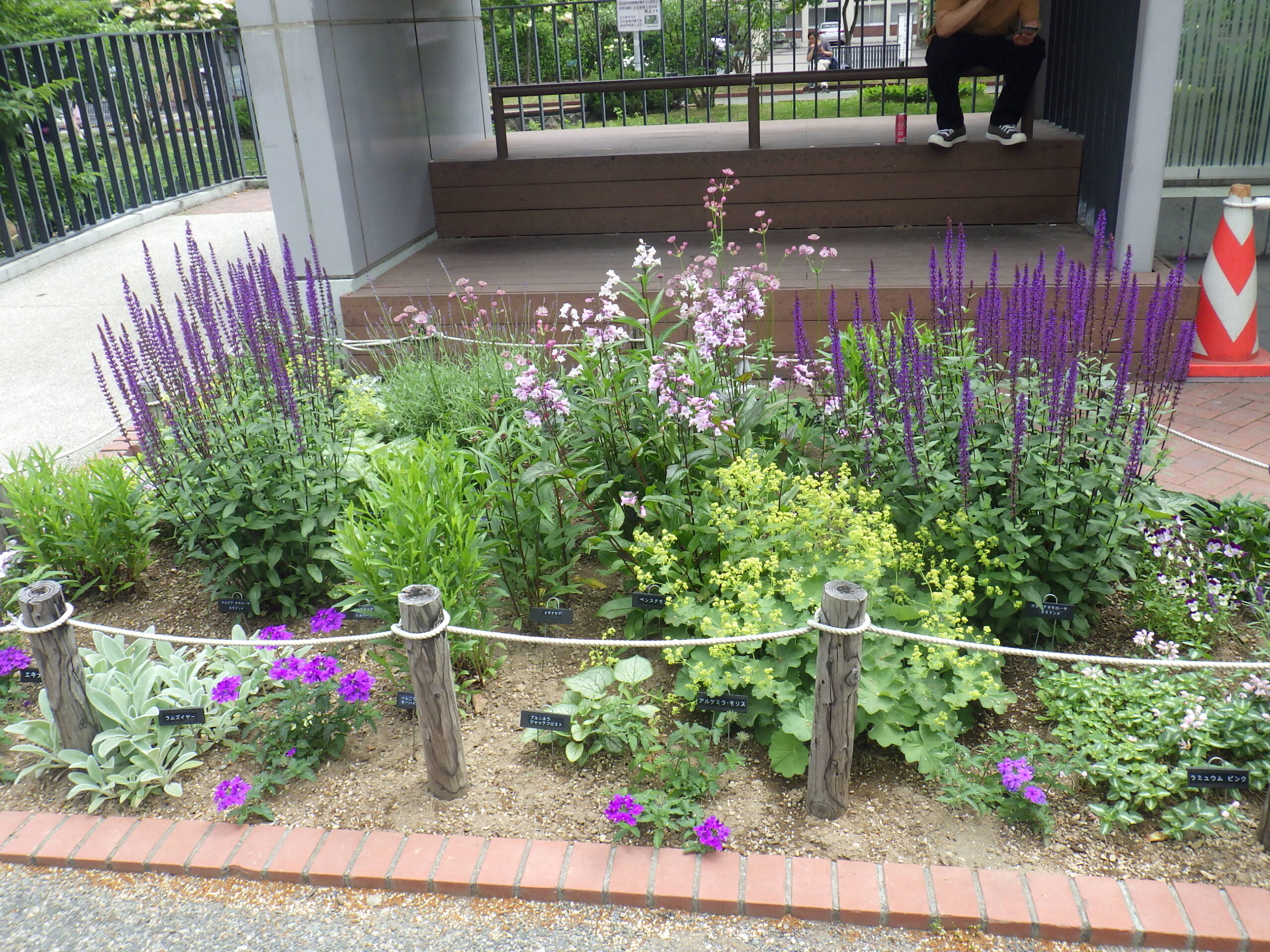 6月25日火曜日、北2条の花壇では宿根草の花たちがきれいに咲いていました。