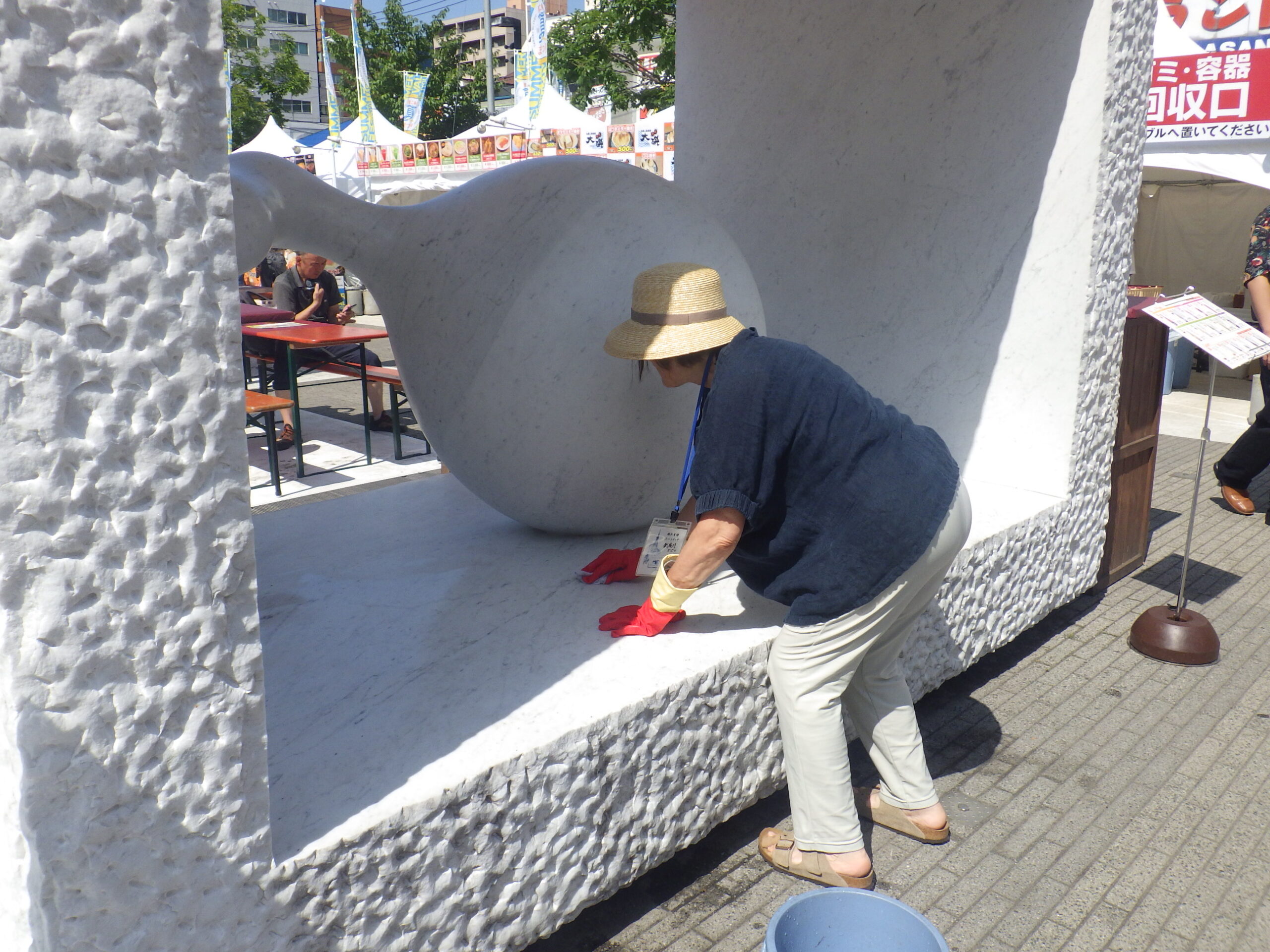 月に1度の彫刻清掃の日、まず夏祭り会場の「生誕」もきれいにしました。