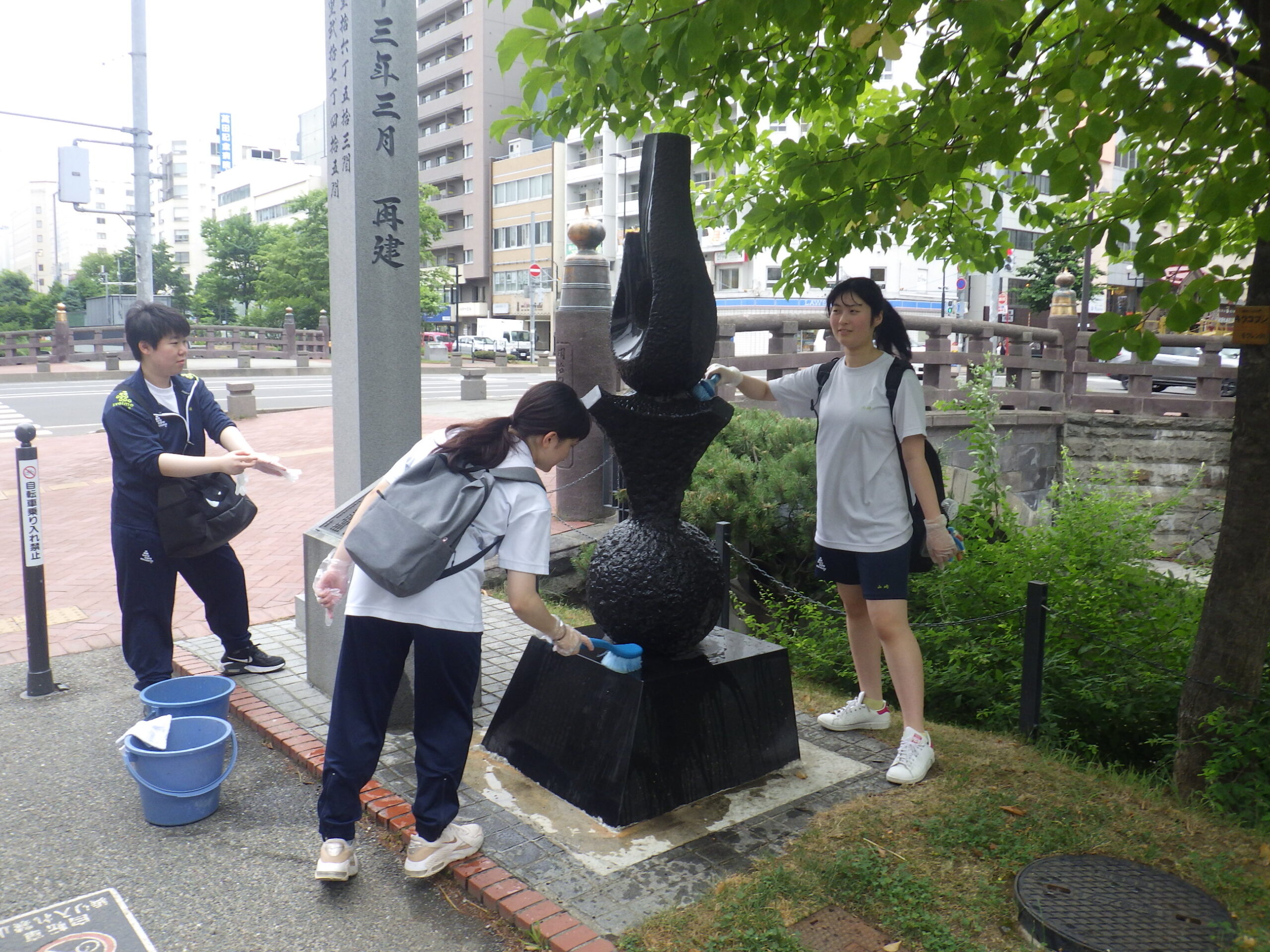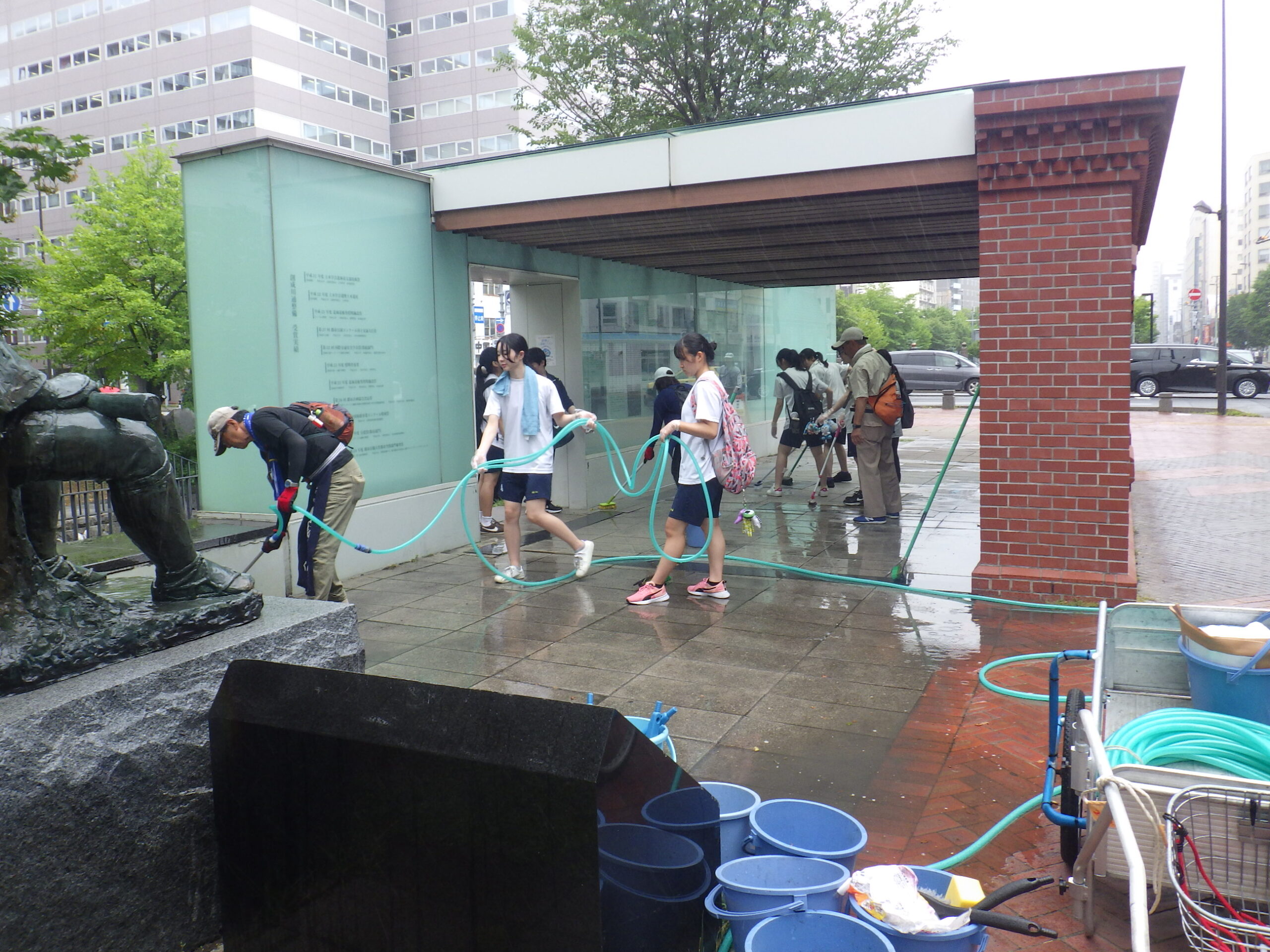 7月24日水曜日、こちらもお助け隊の活動に高校生ボランティアが参加、彫刻やモニュメントの清掃を行いました。