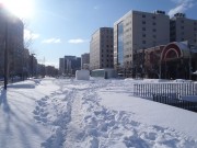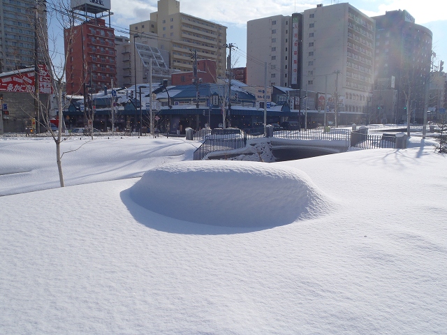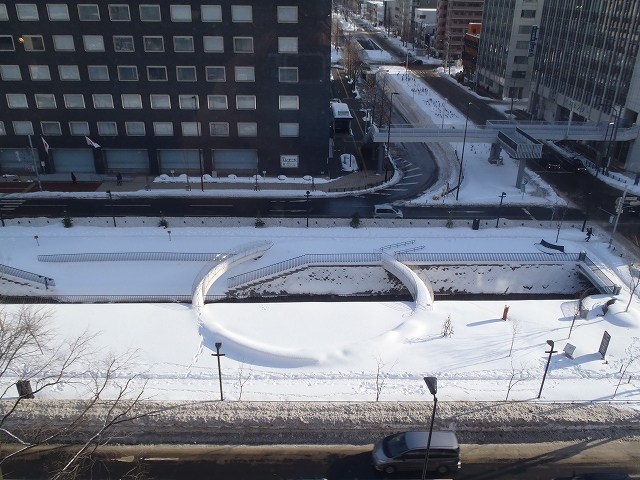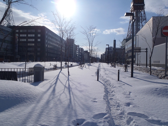 公園は一面の雪に覆われていますが、みなさんの足跡で一本の道ができていました。