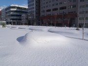 彫刻作品も雪の中、また違った雰囲気を作っていました。