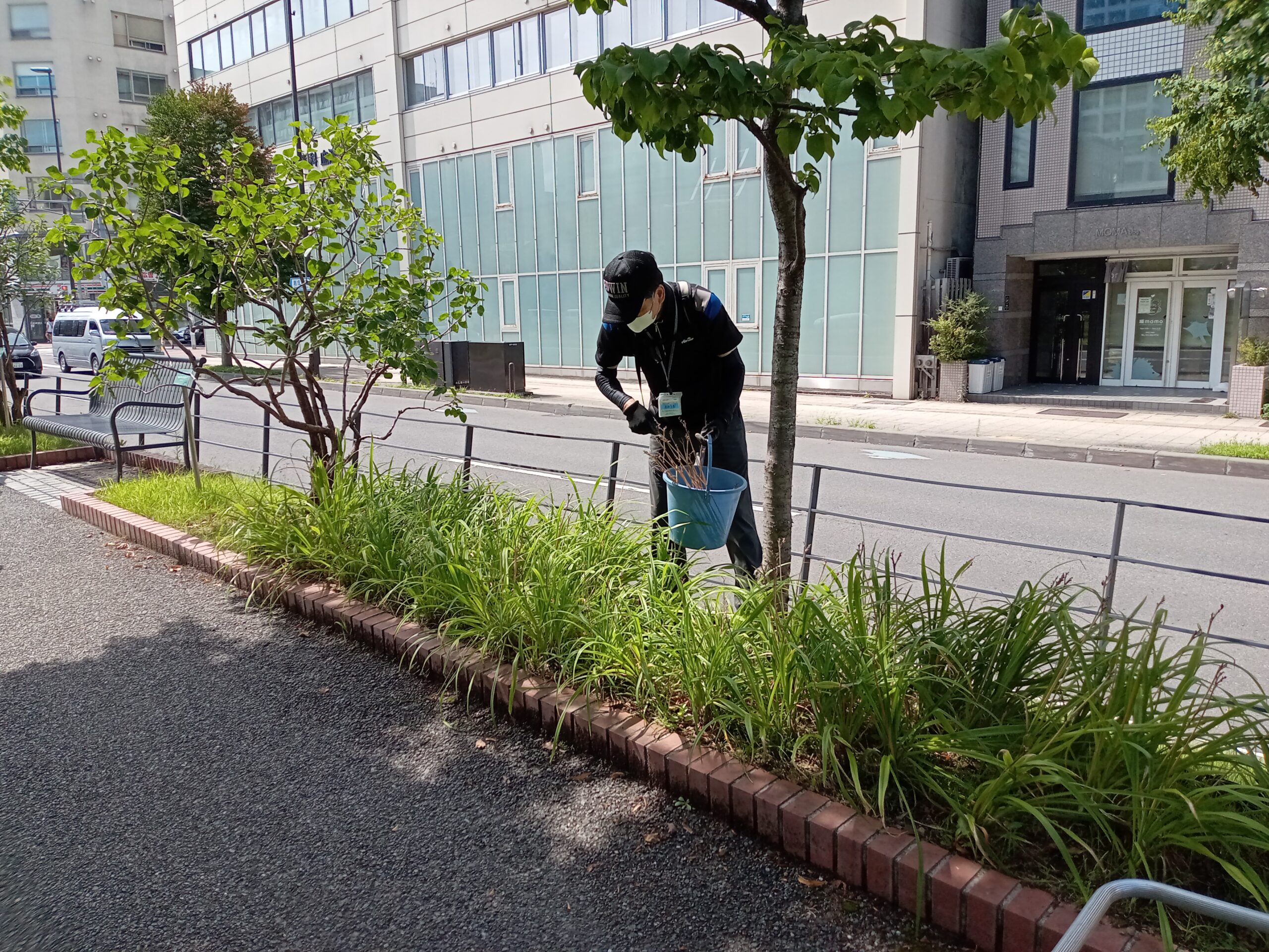 8月20日火曜日、植物ボランティアは花の終わったヘメロカリスの茎抜きをしました。