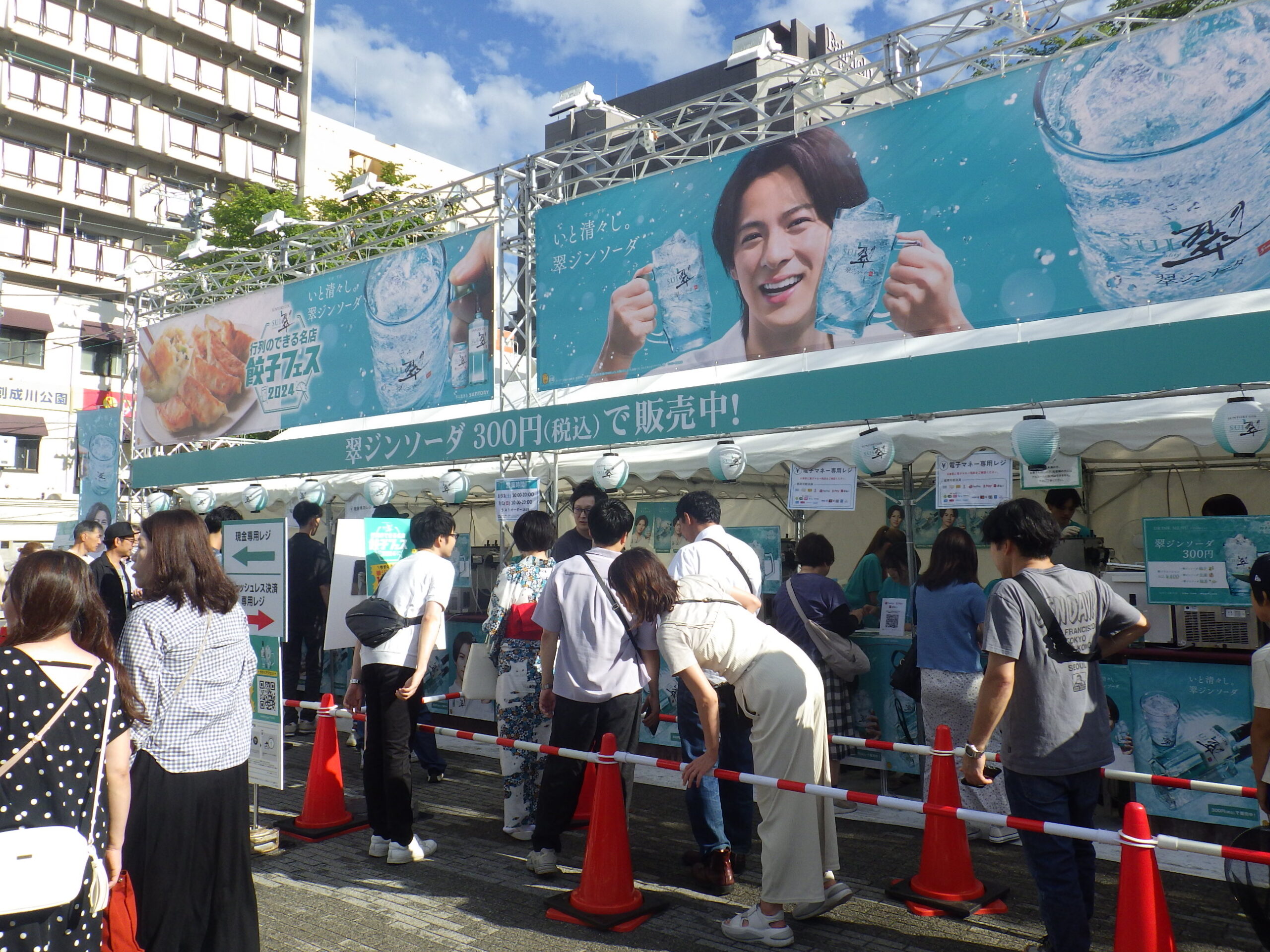翠ジンソーダを飲みながら、名店の餃子の味を楽しみに、狸二条広場へお越しください。