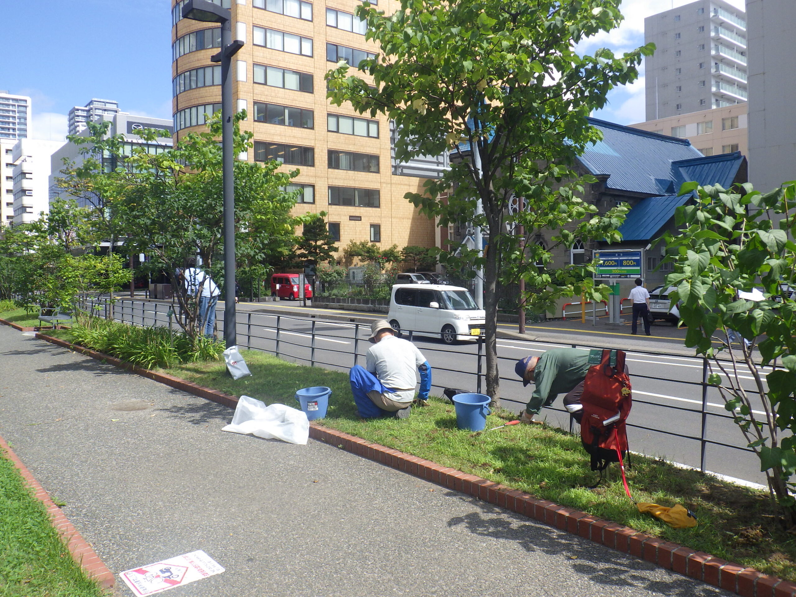 8月30日金曜日、除草ボランティアは有名な札幌教会の前で除草作業です。