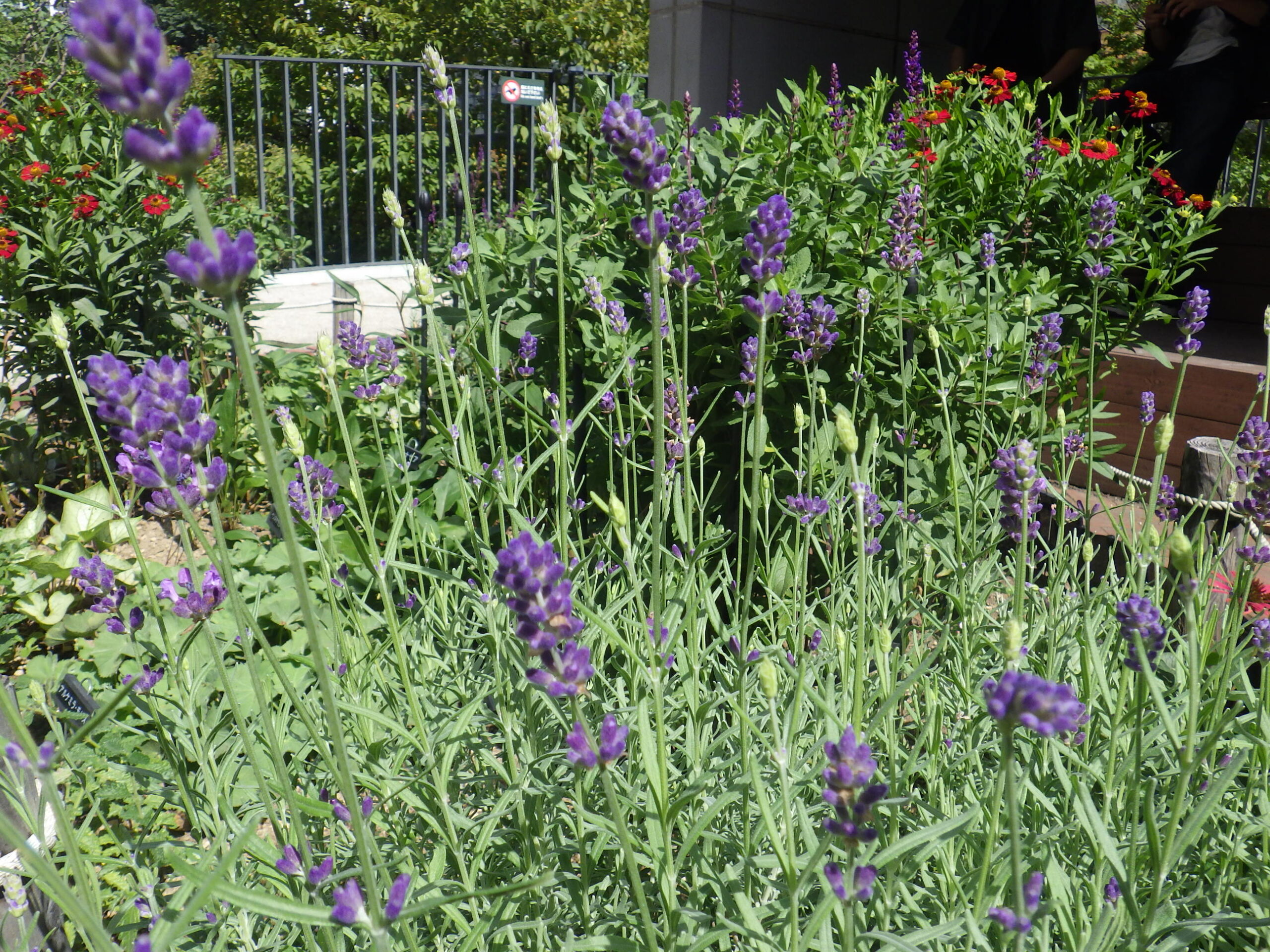 まんなか広場のコンテナの花も、きれいに咲いています。
