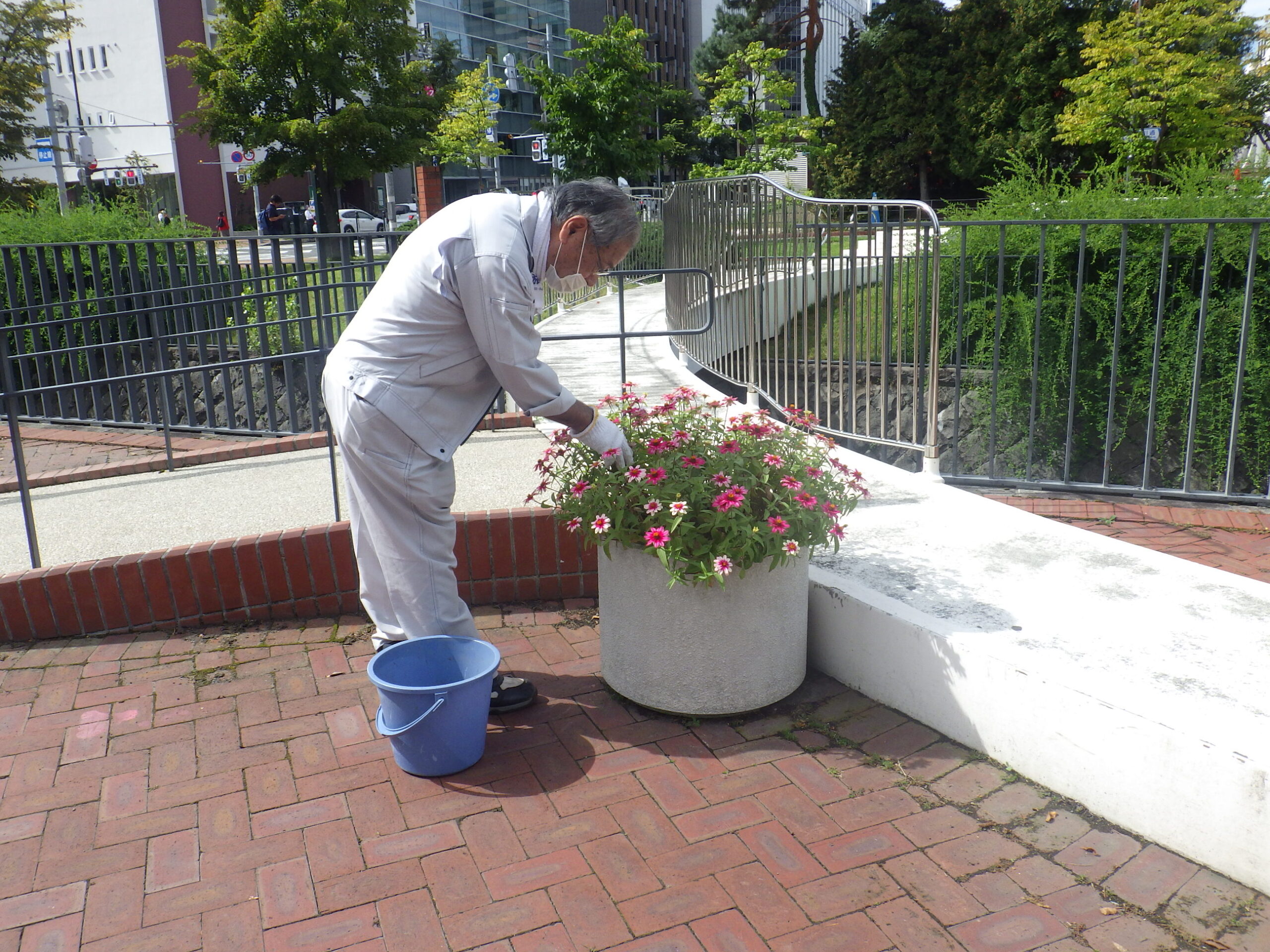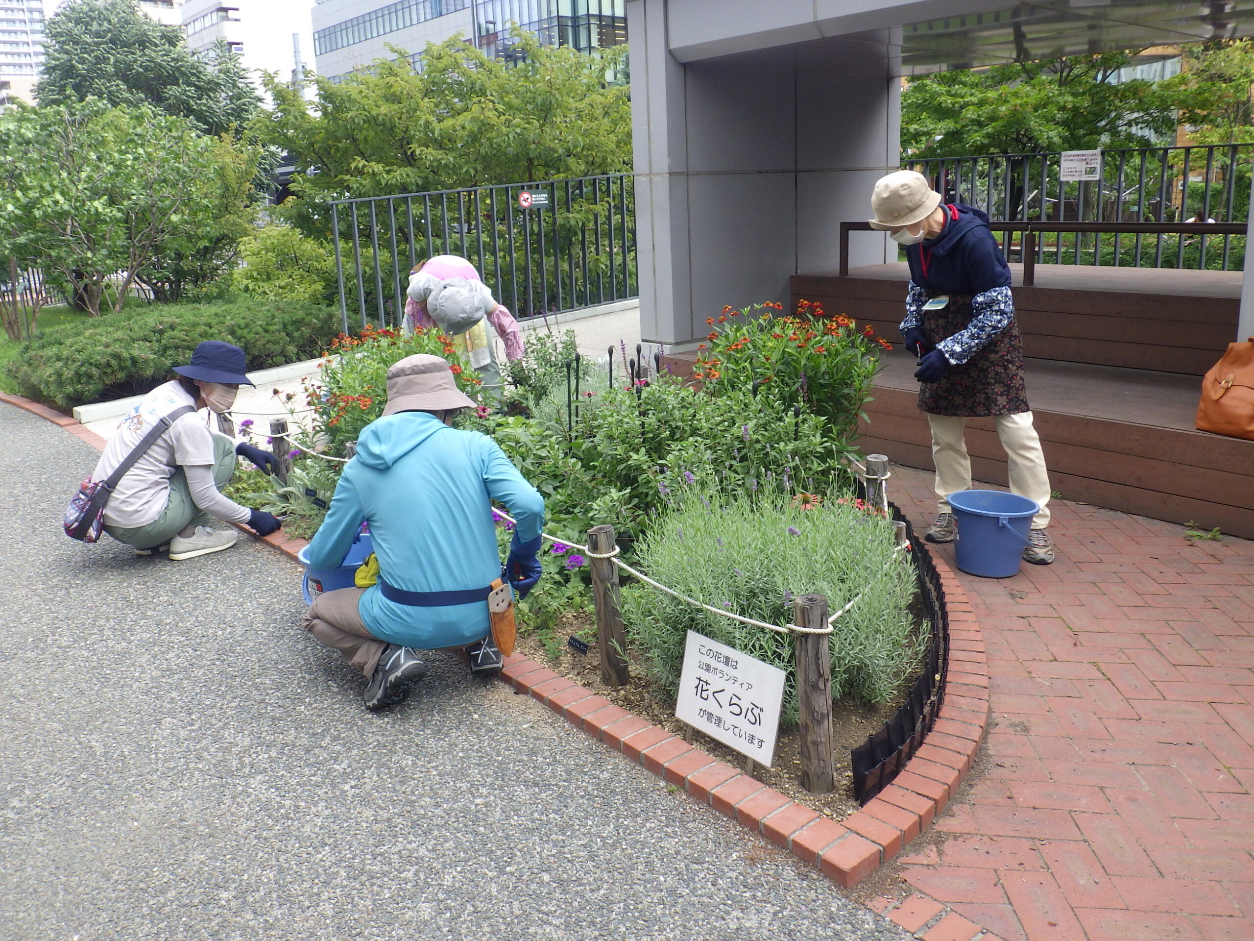 9月5日木曜日、花くらぶではいつもの通りコンテナや花壇のお手入れ。