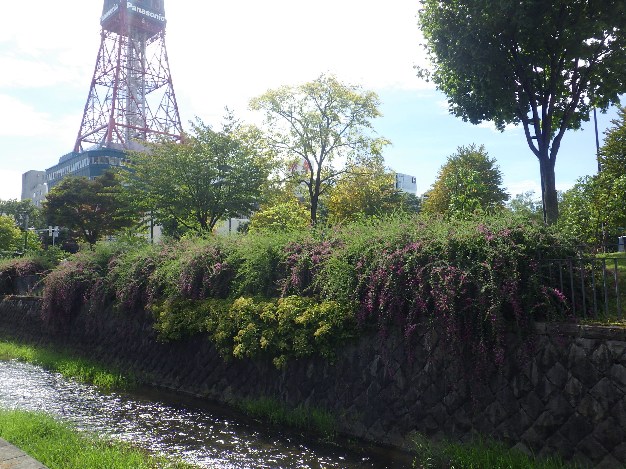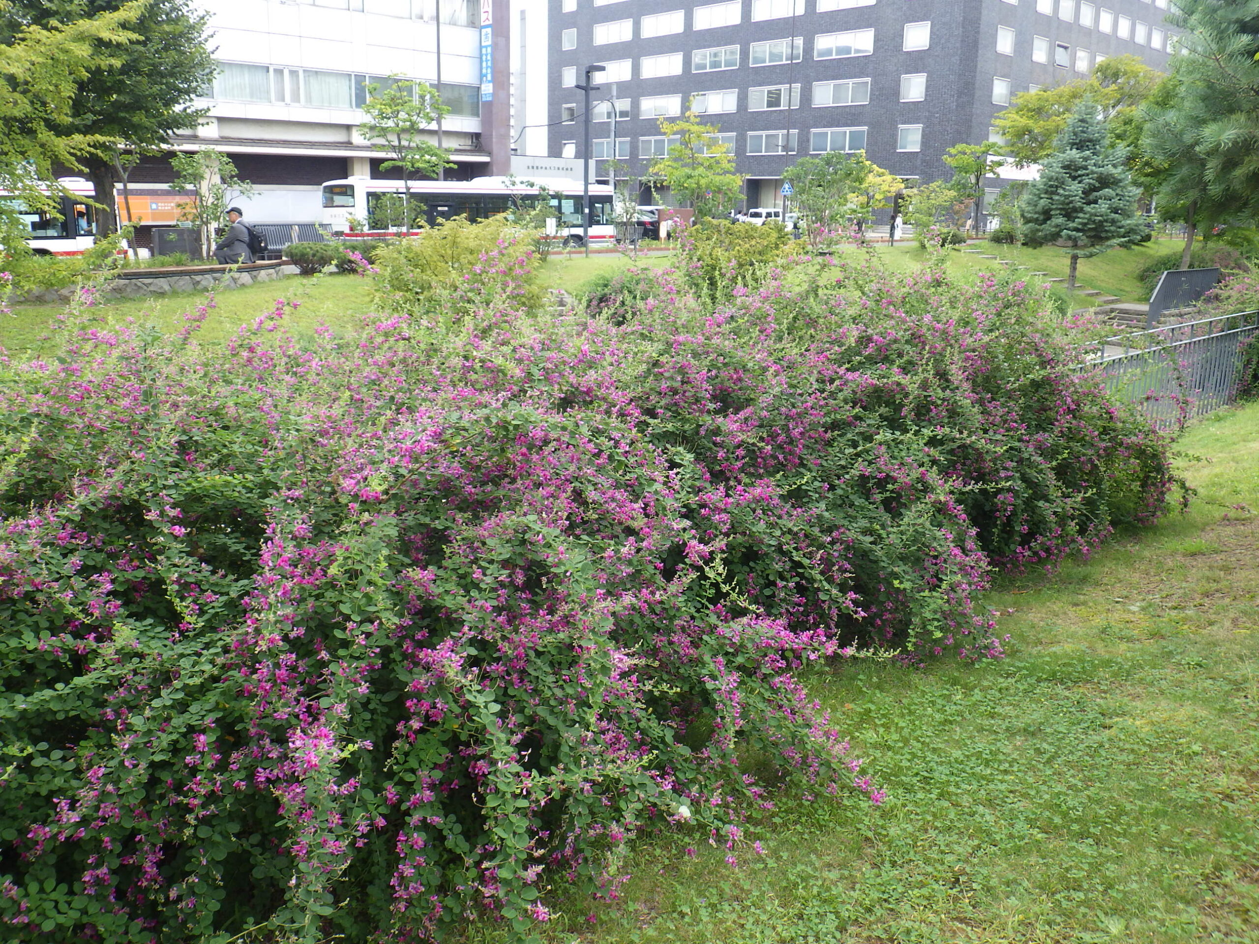 9月13日金曜日のハギの花の様子です。 朝晩には北海道らしい涼しさとなってきたからか、ハギの花が咲いてきています。 南1条の川に垂れさがるハギの様子です。 北1条の川に垂れ下がるハギです。 階段やベンチ周りのハギは、6月下旬に一度刈込して成長調整を行っています。 北2条アンダーパス避難口裏のハギです。 ハギの花は、全体の豪華さに加えて、一つ一つもじっくり見てみてくださいね。