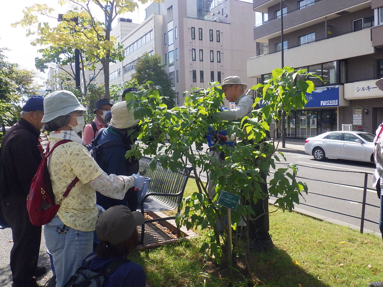 そして本題の、ライラックの秋剪定。そんなにやることは無いようですね、とのお話でしたが来年の花後の剪定のためにも細かく指導してくださいました。