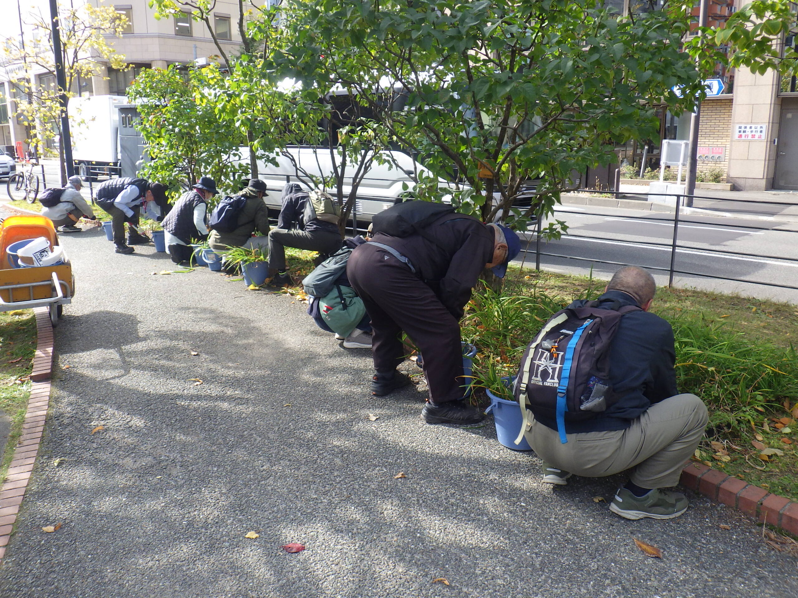 10月15日火曜日の植物ボランティアは、いよいよヘメロカリスの刈込です。