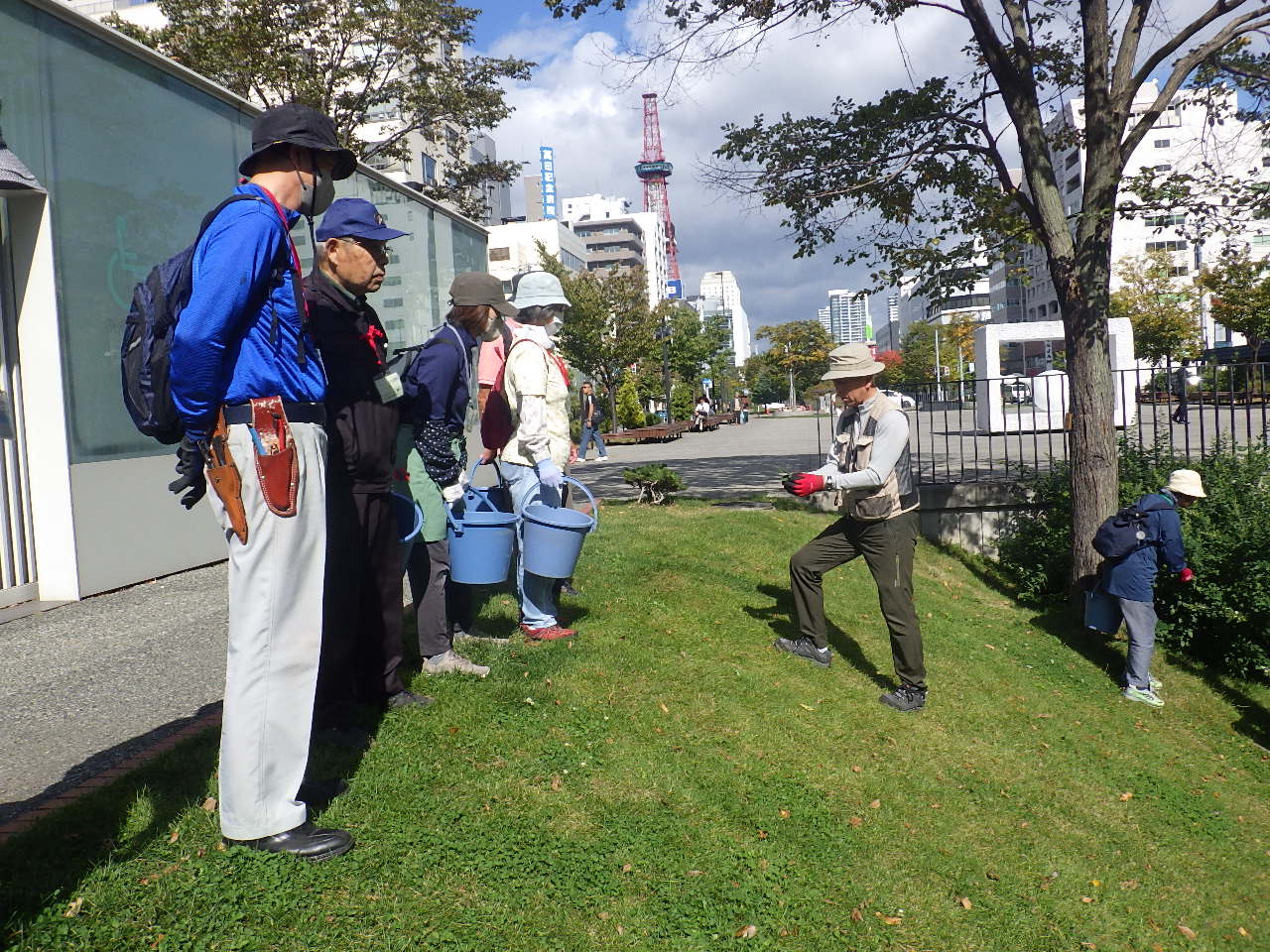 10月11日金曜日、除草ボランティアはいつものように、芝生の中のブタナやタンポポの除草です。