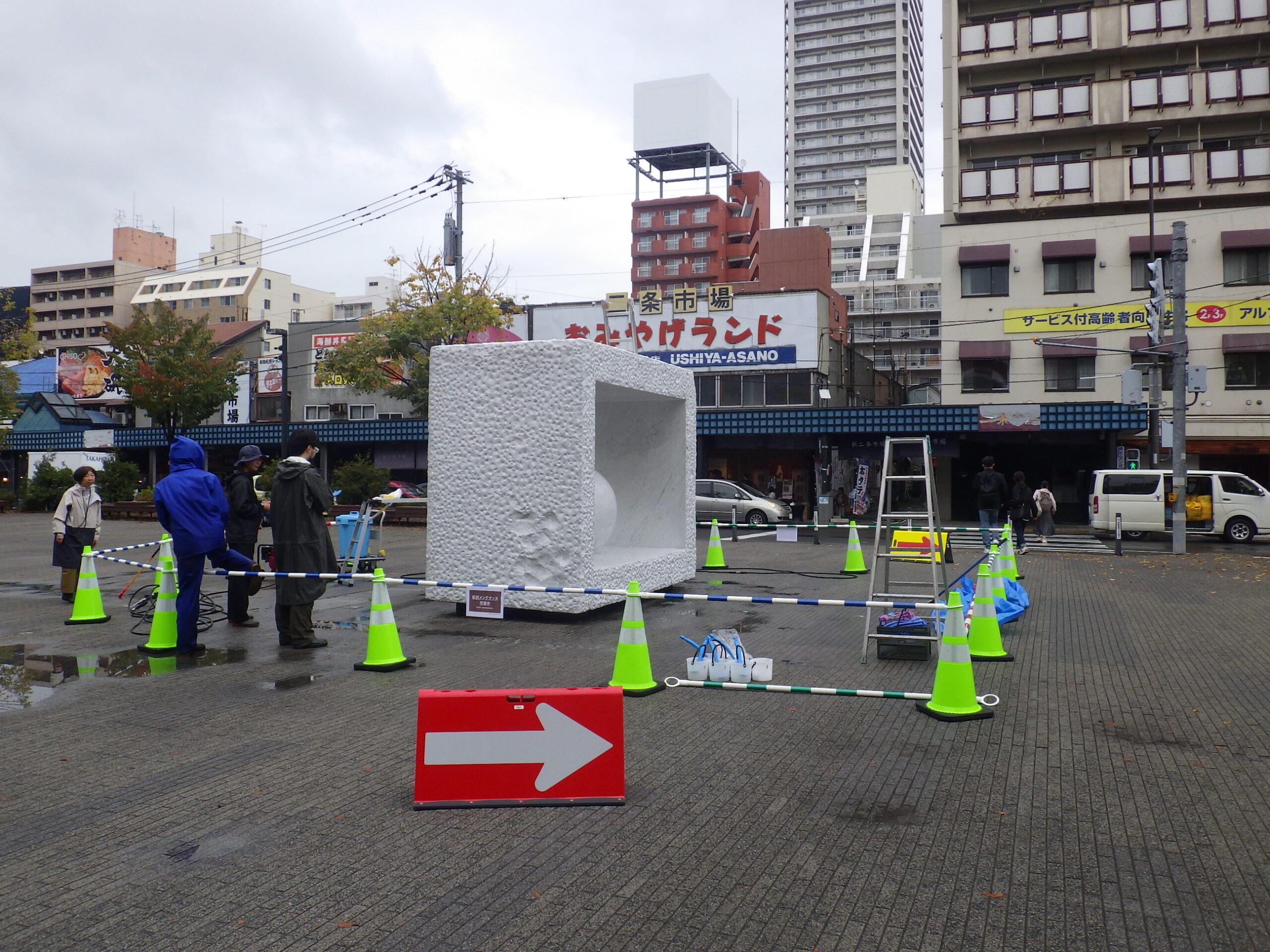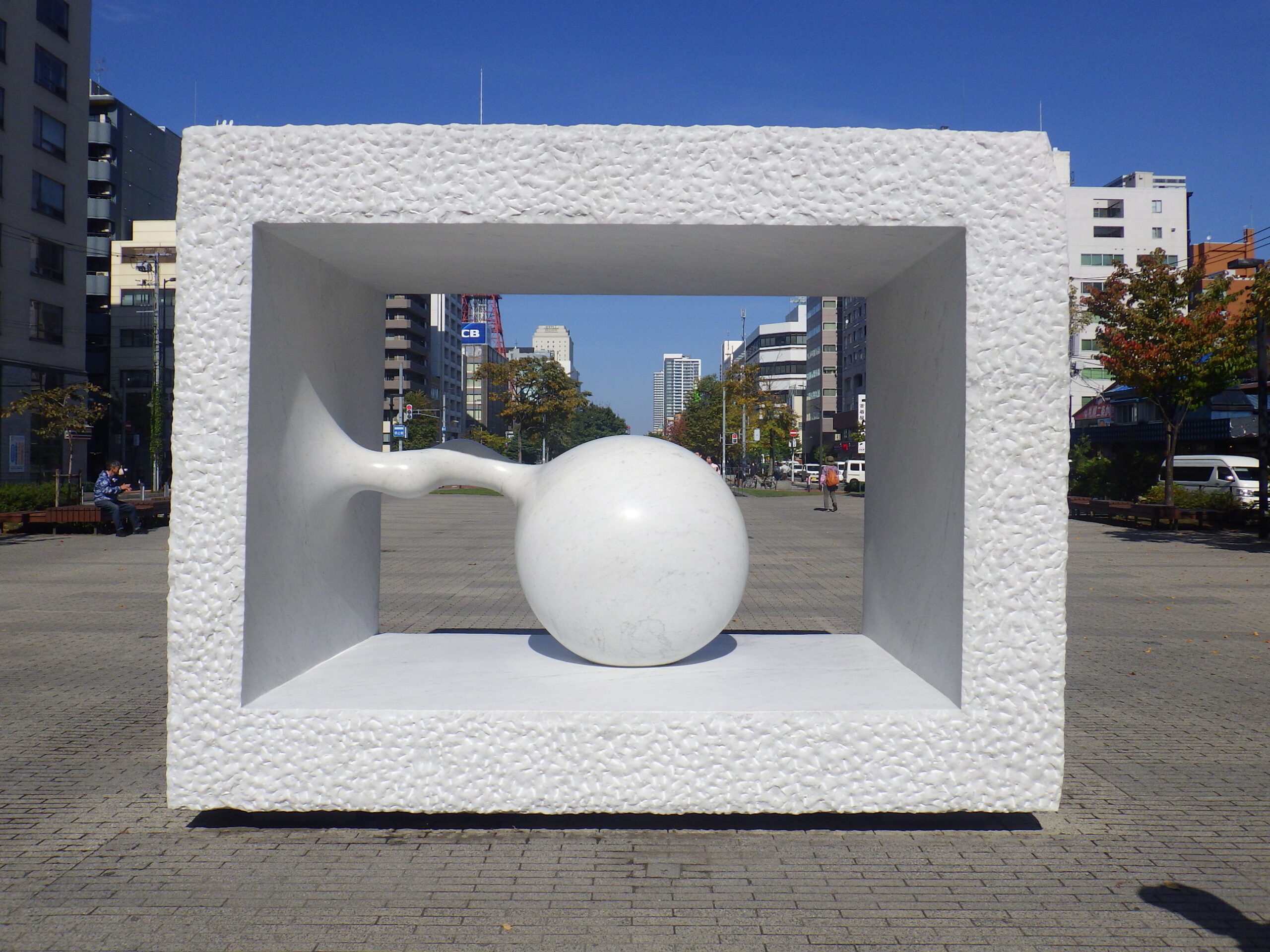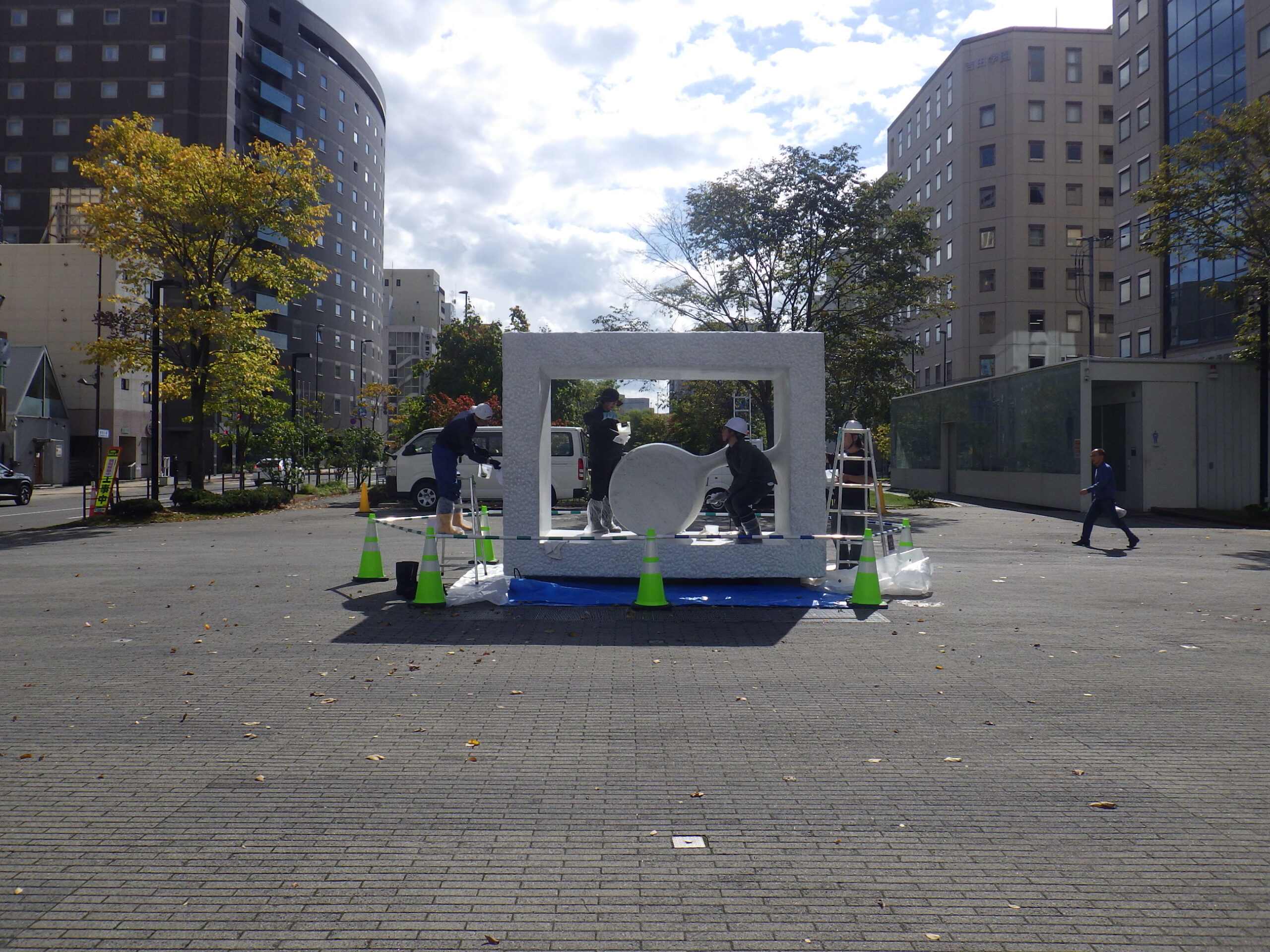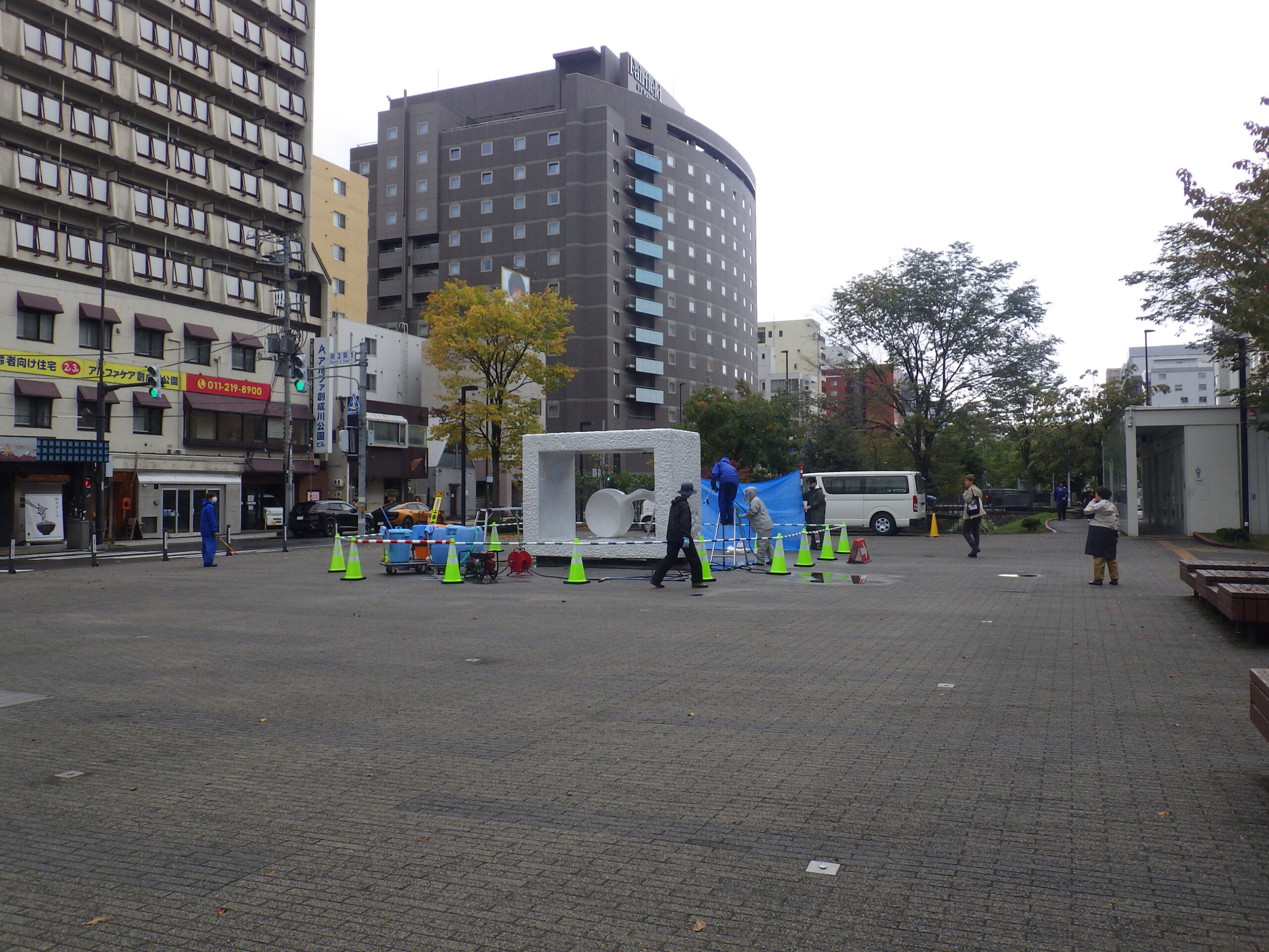 10月7日月曜日、8日火曜日、安田侃さんの4つの彫刻作品のメンテナンス作業が行われました。 まずは高圧洗浄での清掃作業。公園利用者のみなさんに配慮しながら作業を進めました。 2日目はコーティング作業です。 そしてコーティングの終わった生誕です。 こちらは生棒です。 そして天秘。 どれもすっかりきれいになりました。