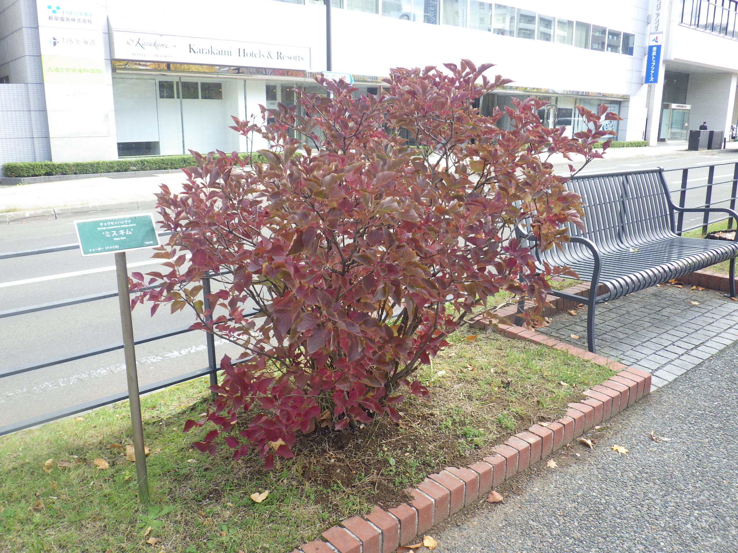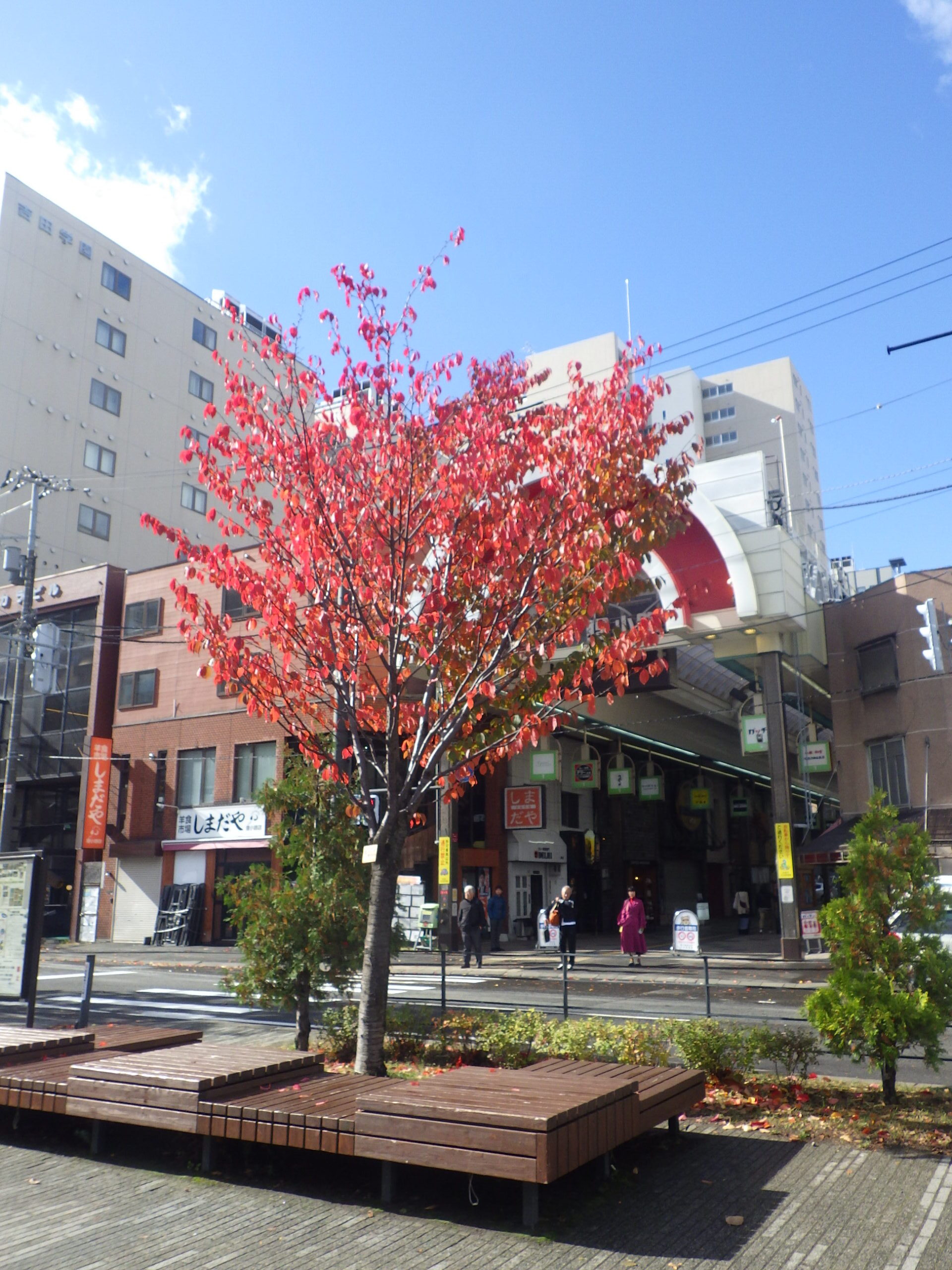 北1条のヤマモミジの葉もきれいな赤になってきています。