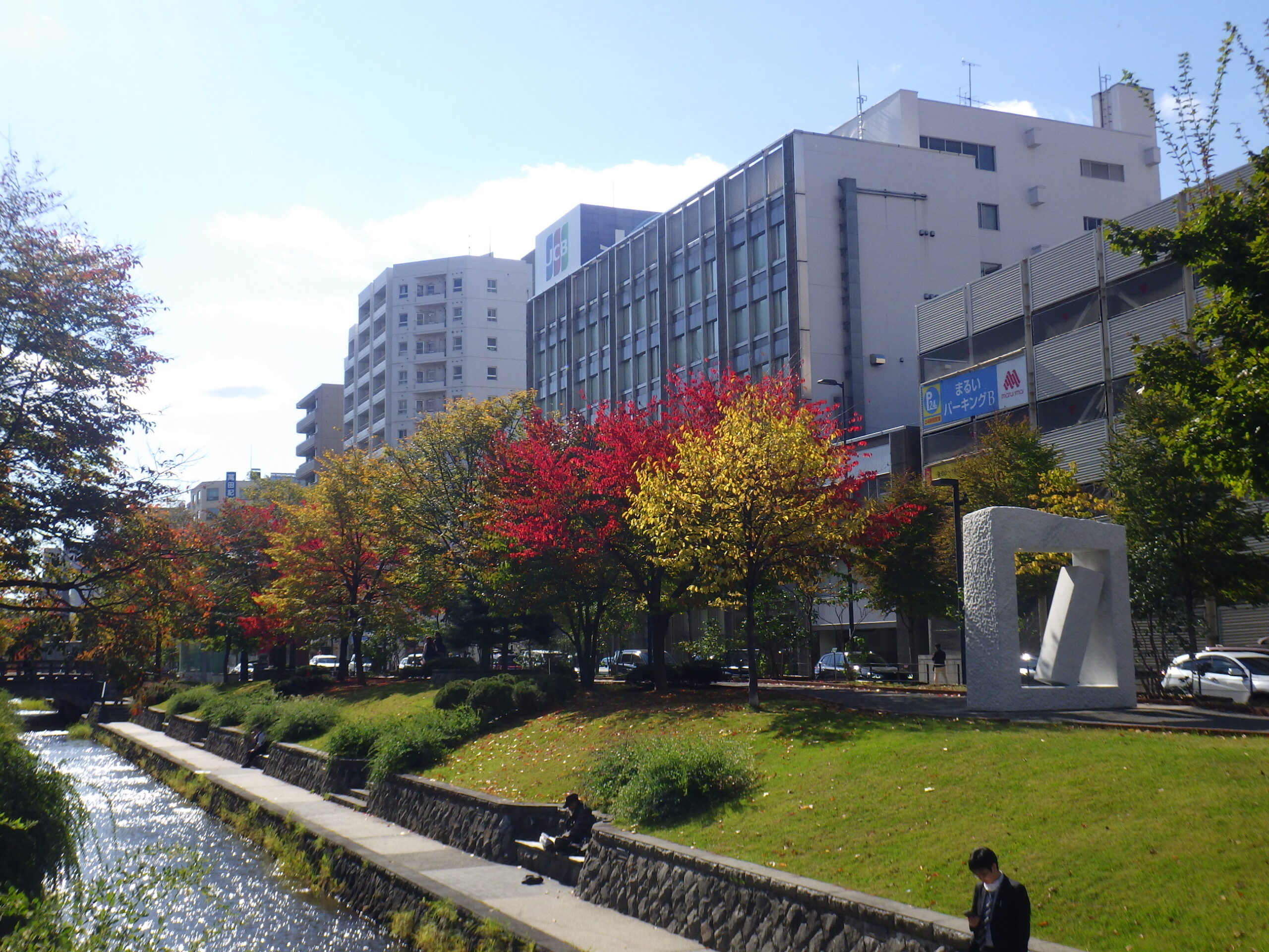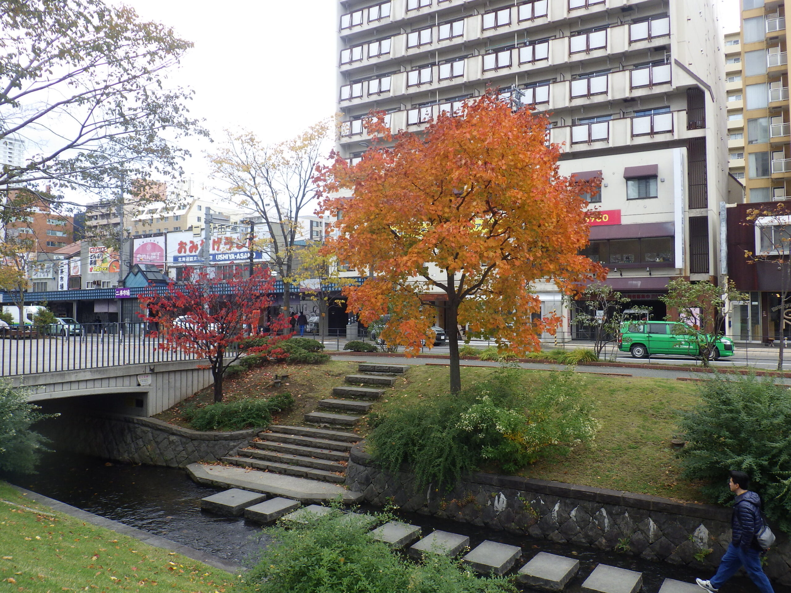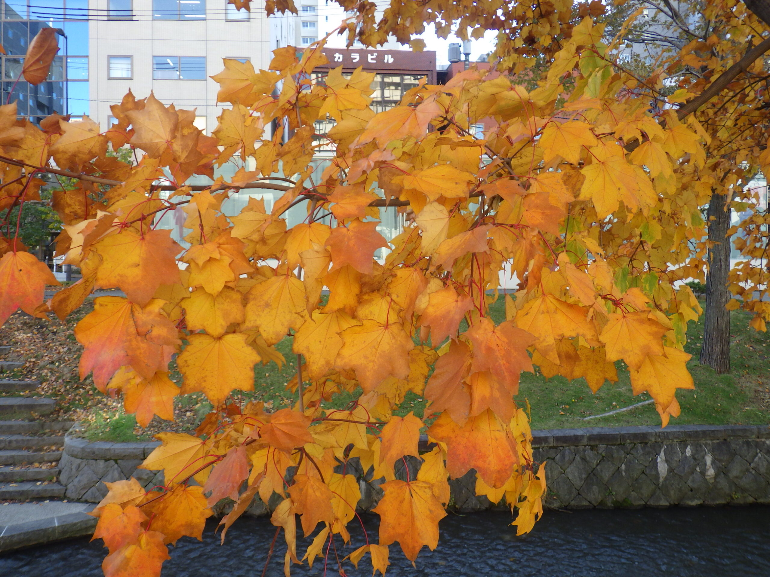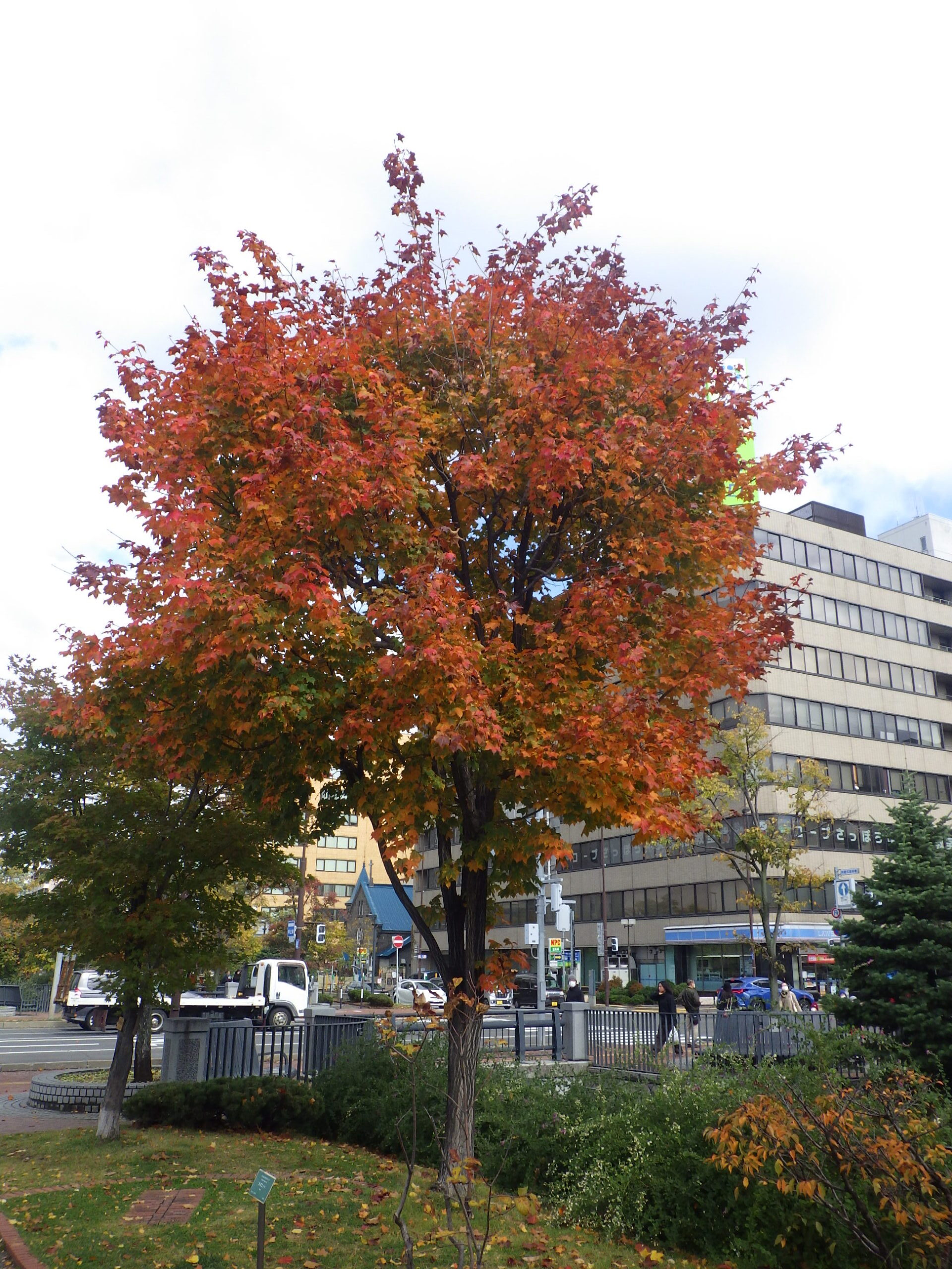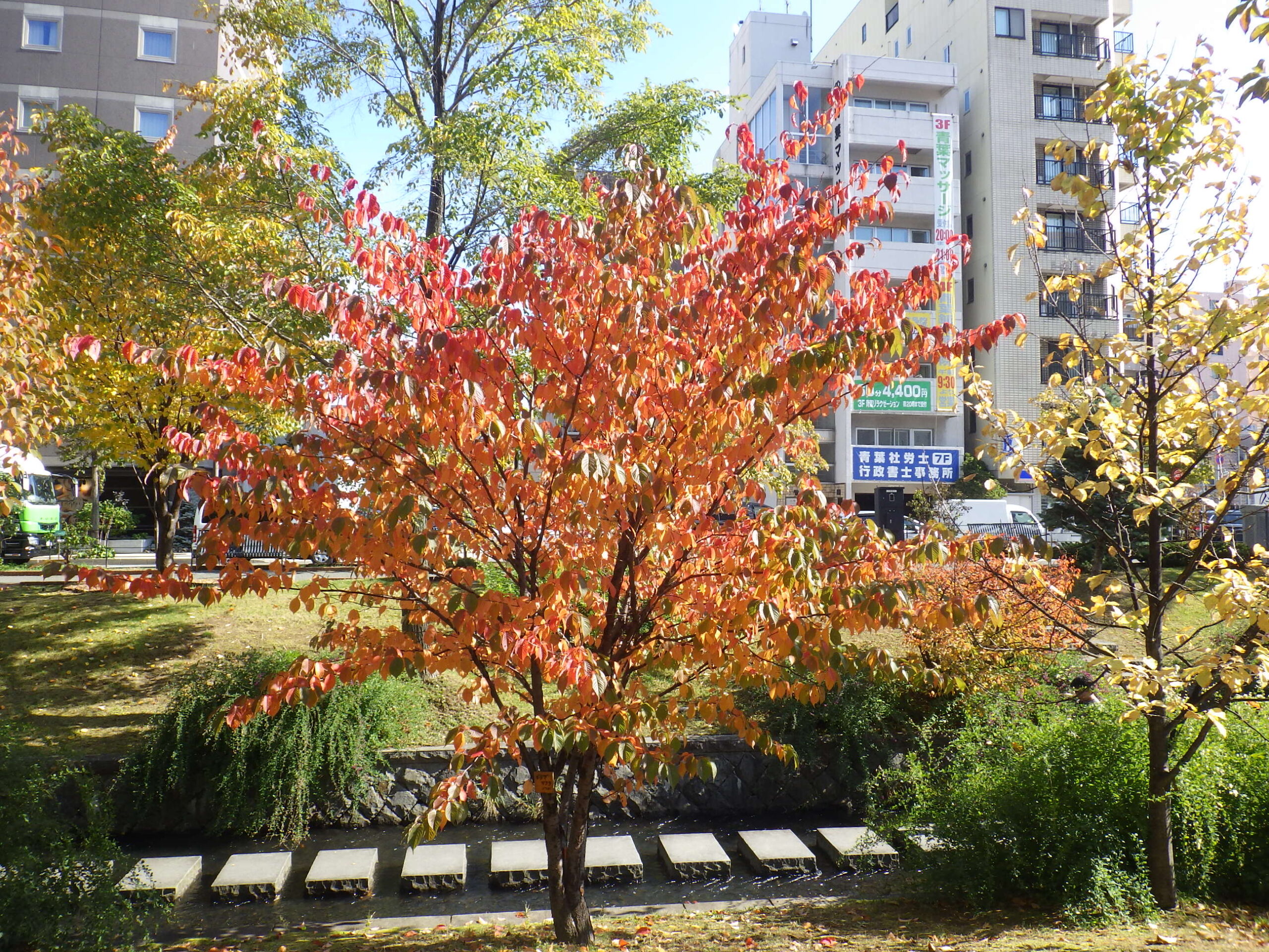 こちらはその数日前、10月17日の南1条の様子。まだエゾヤマザクラの赤がまぶしい園内です。