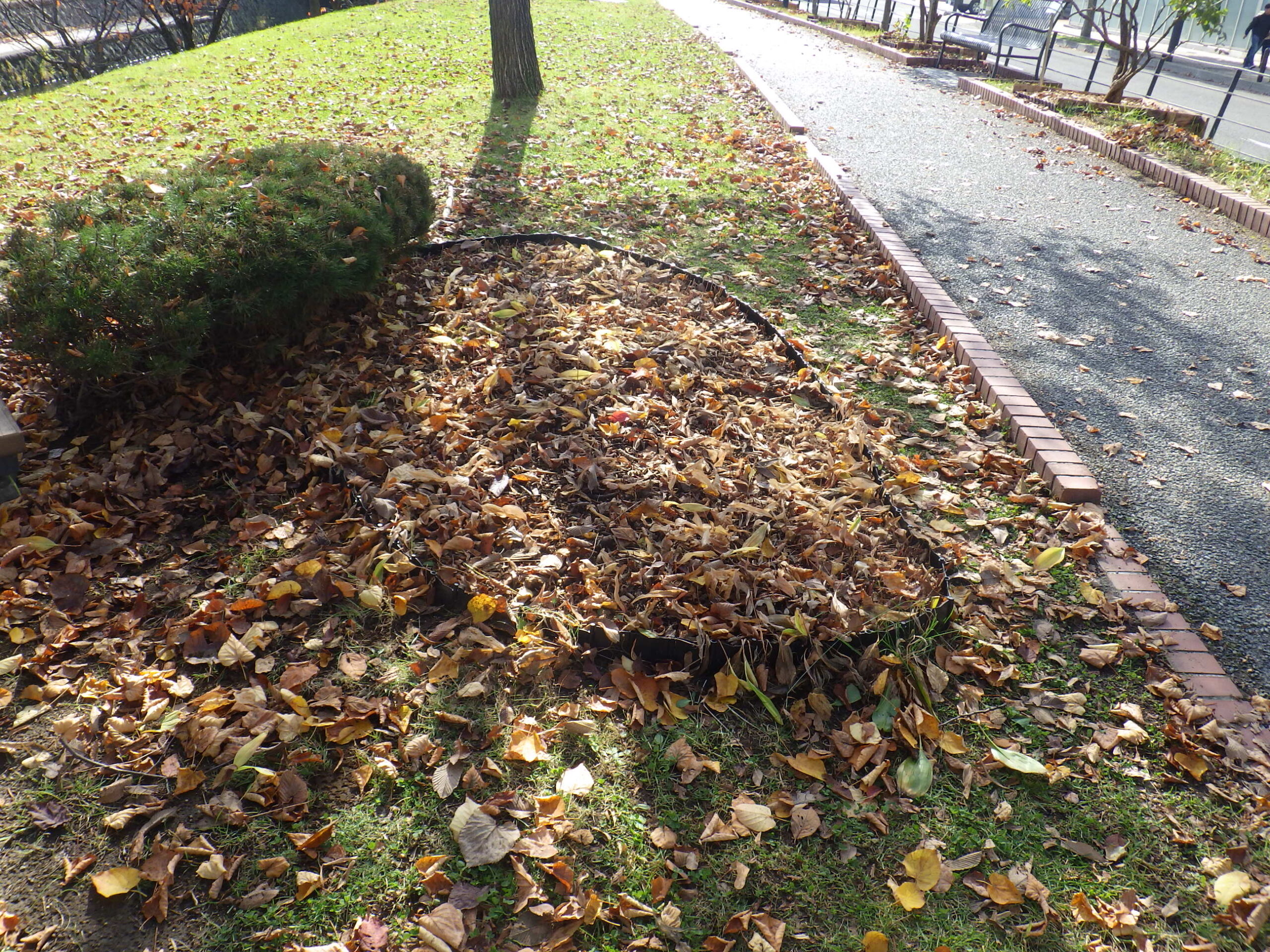 この日は同時進行で、園路の落ち葉清掃もしました。