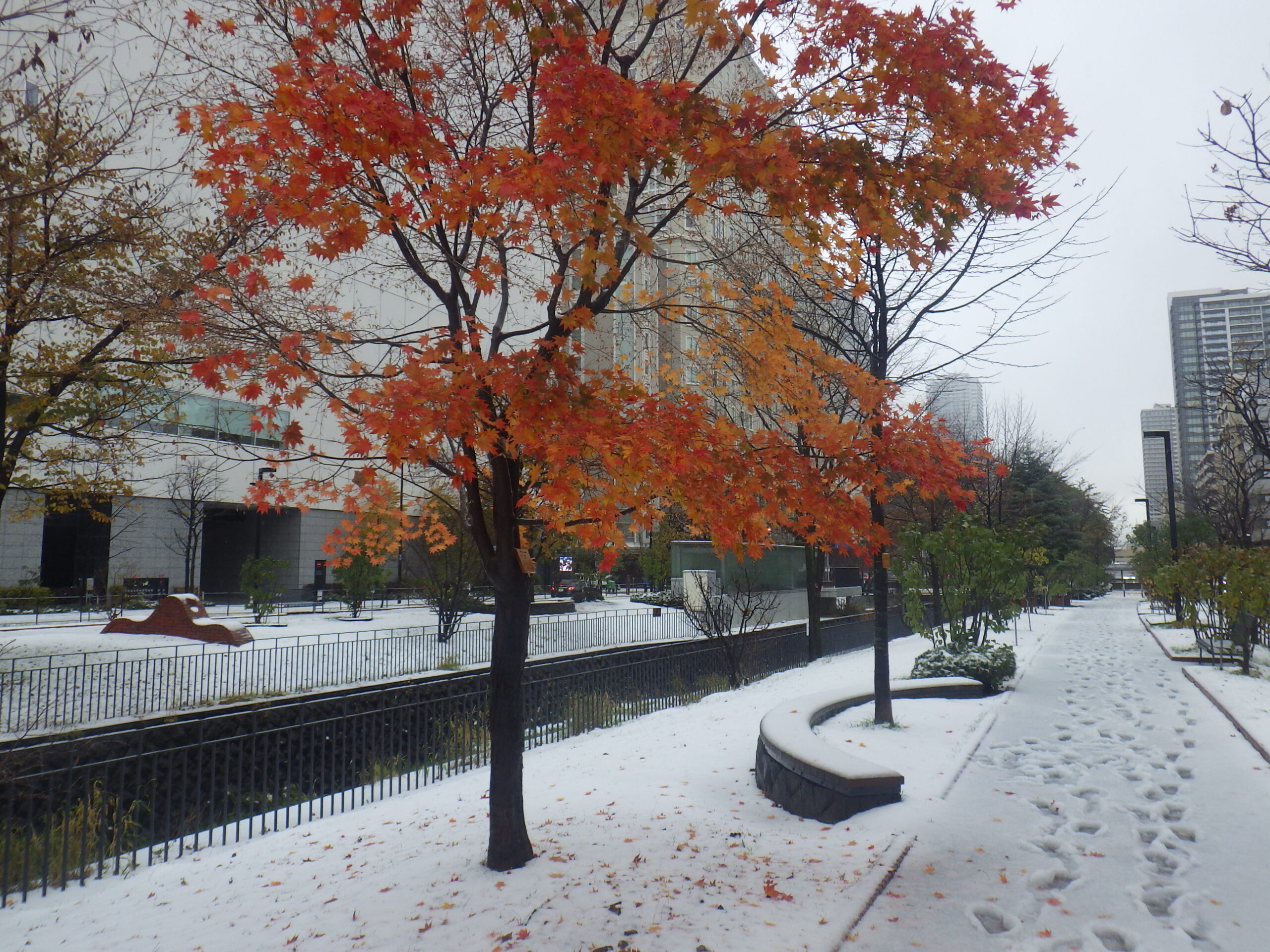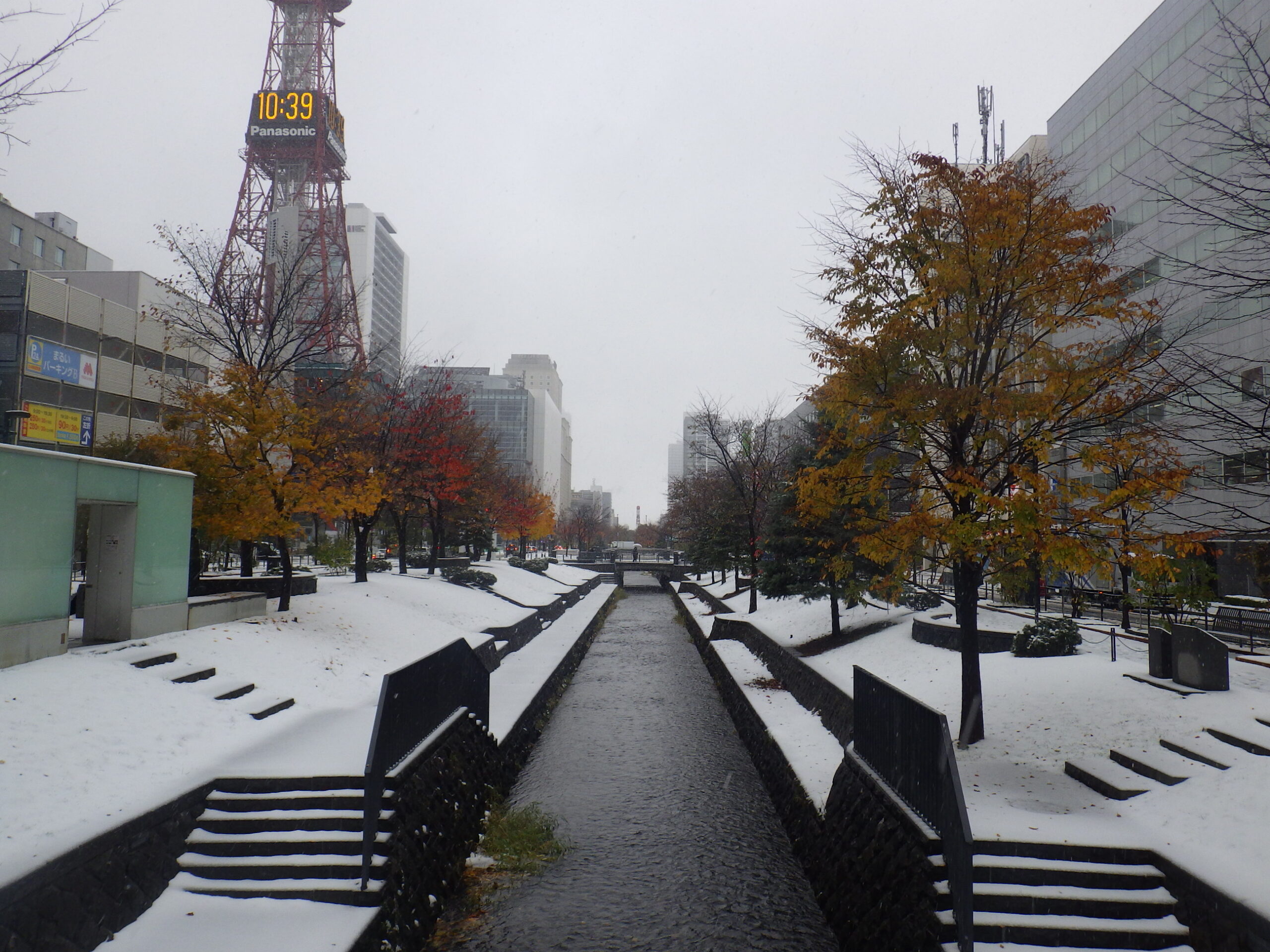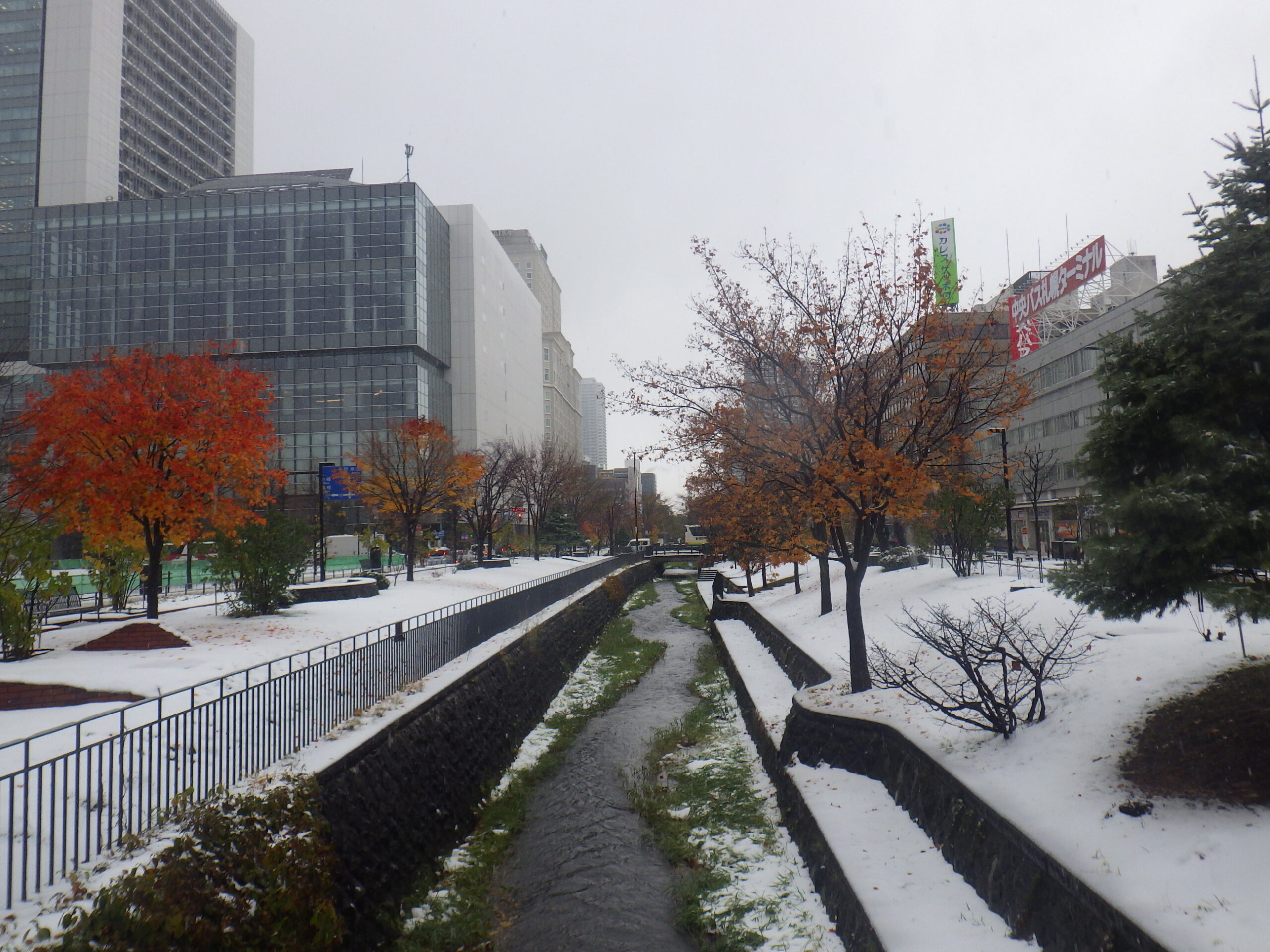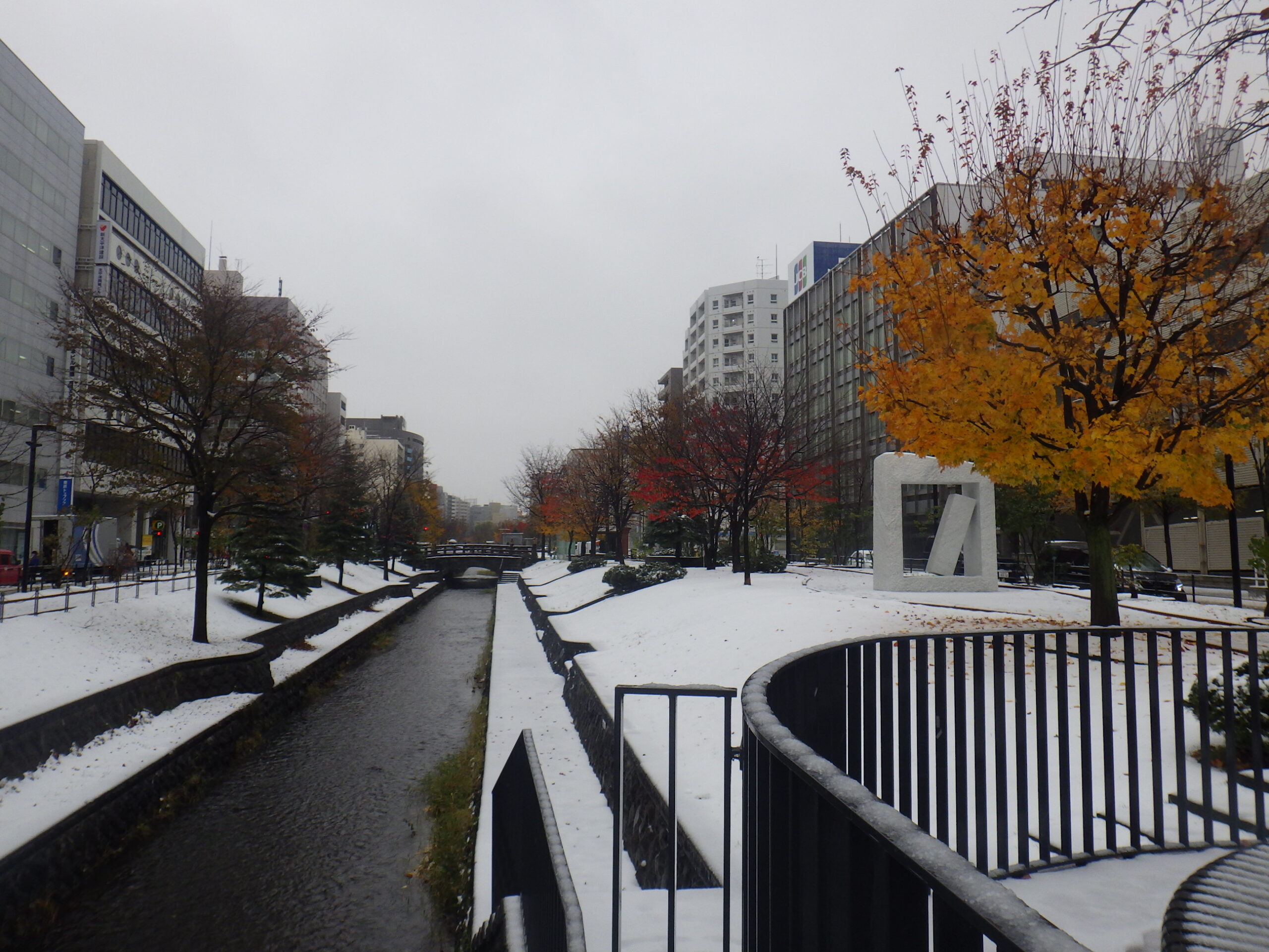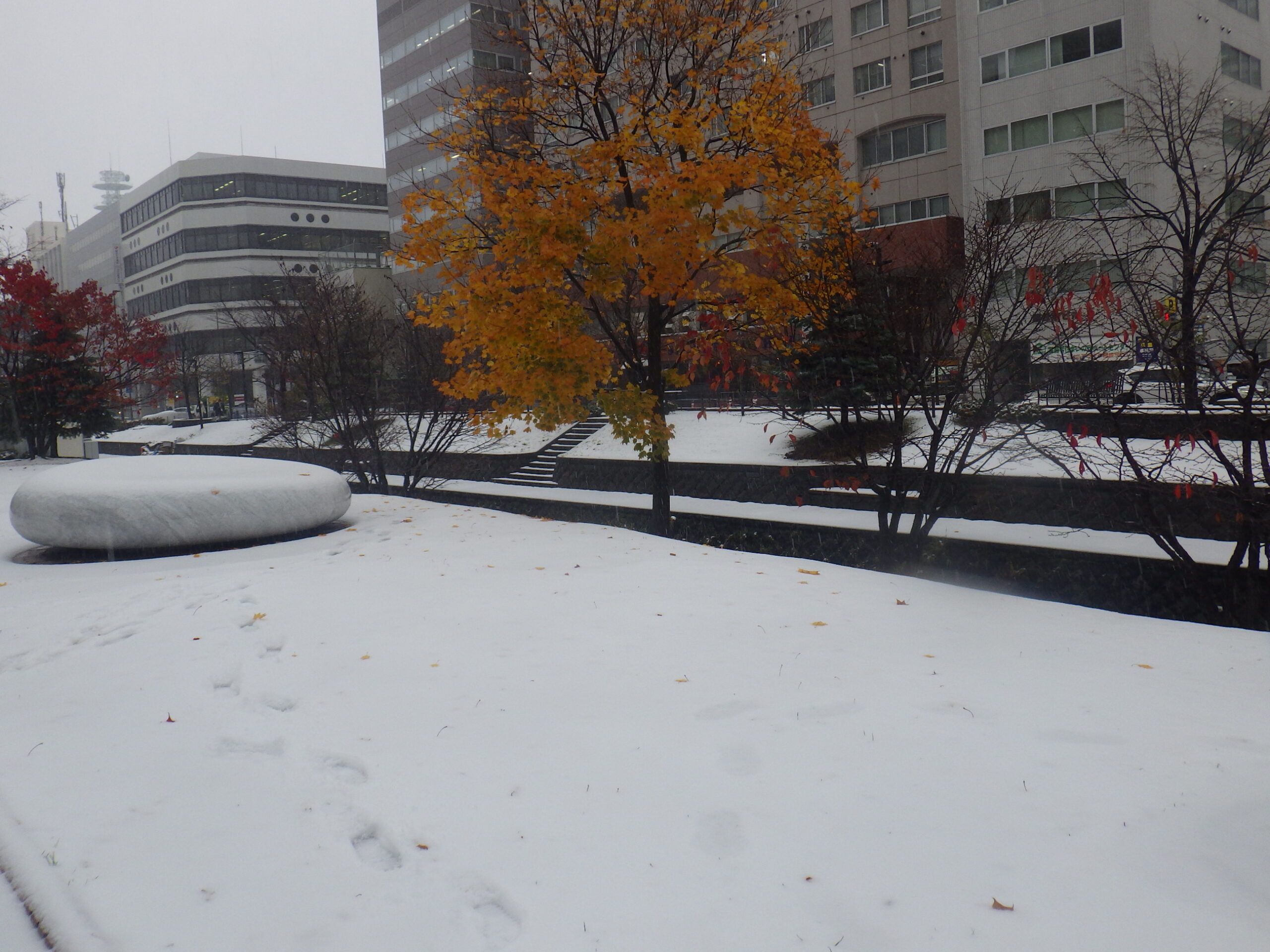 11月7日木曜日、札幌にも雪が積もりました。 雪の積もった南1条の様子です。 南1条の同じ場所、前日の11月6日の様子です。 なんだか急に冬がやってきたようです。 南2条です。 南3条、狸二条広場です。 まだ冬ごもりをしていない安田侃さんの彫刻たちも雪景色です。 南4条です。 テレビ塔下、大通ブロックです。 北1条、ヤマモミジの紅葉も雪の白の中で一段と綺麗ですね。 北2条です。 この後また気温が上がるとのこと、また秋に戻りそうですね。