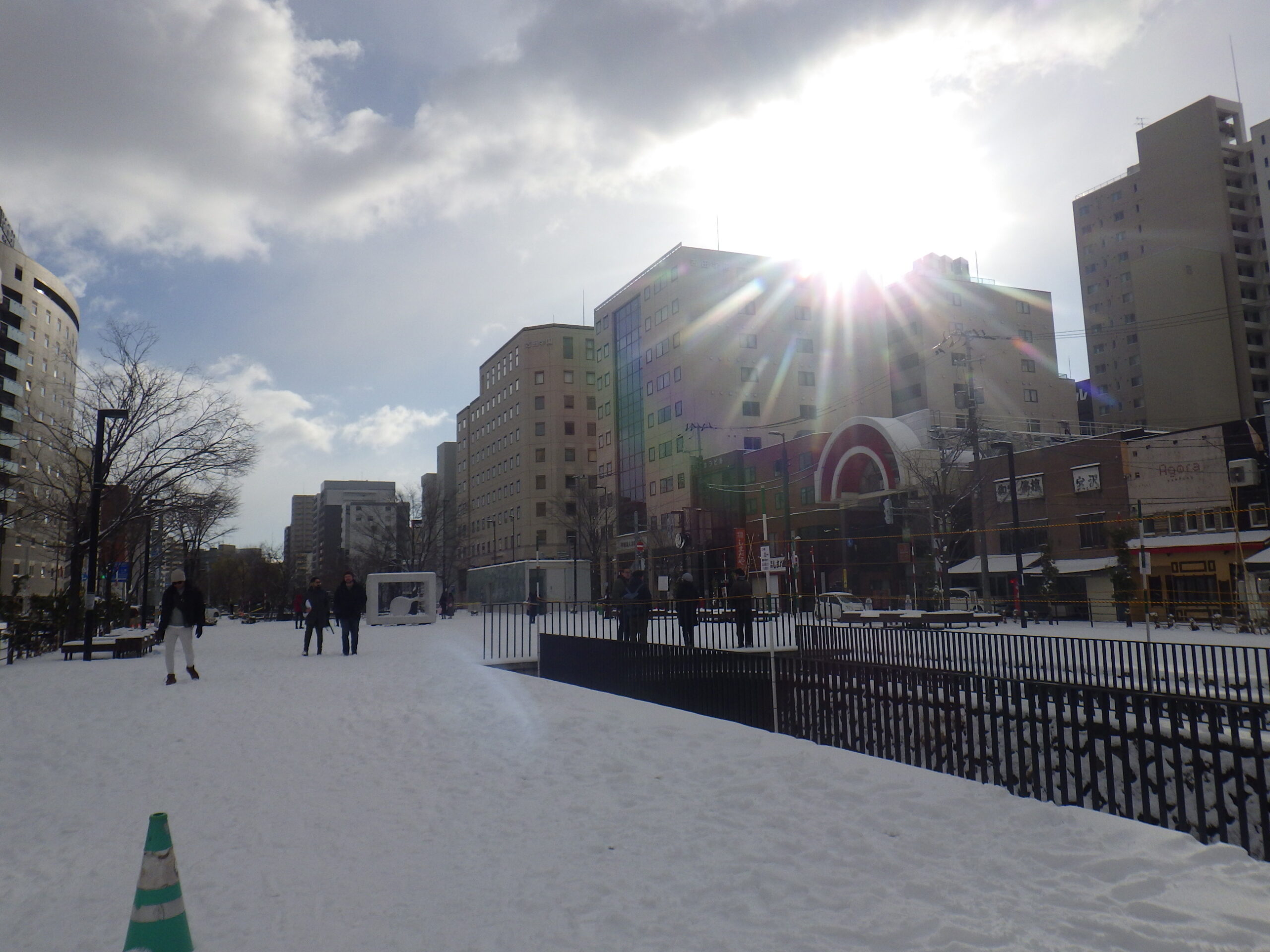午後1時20分の南1条です。少しづつ青空が隠れてきました。