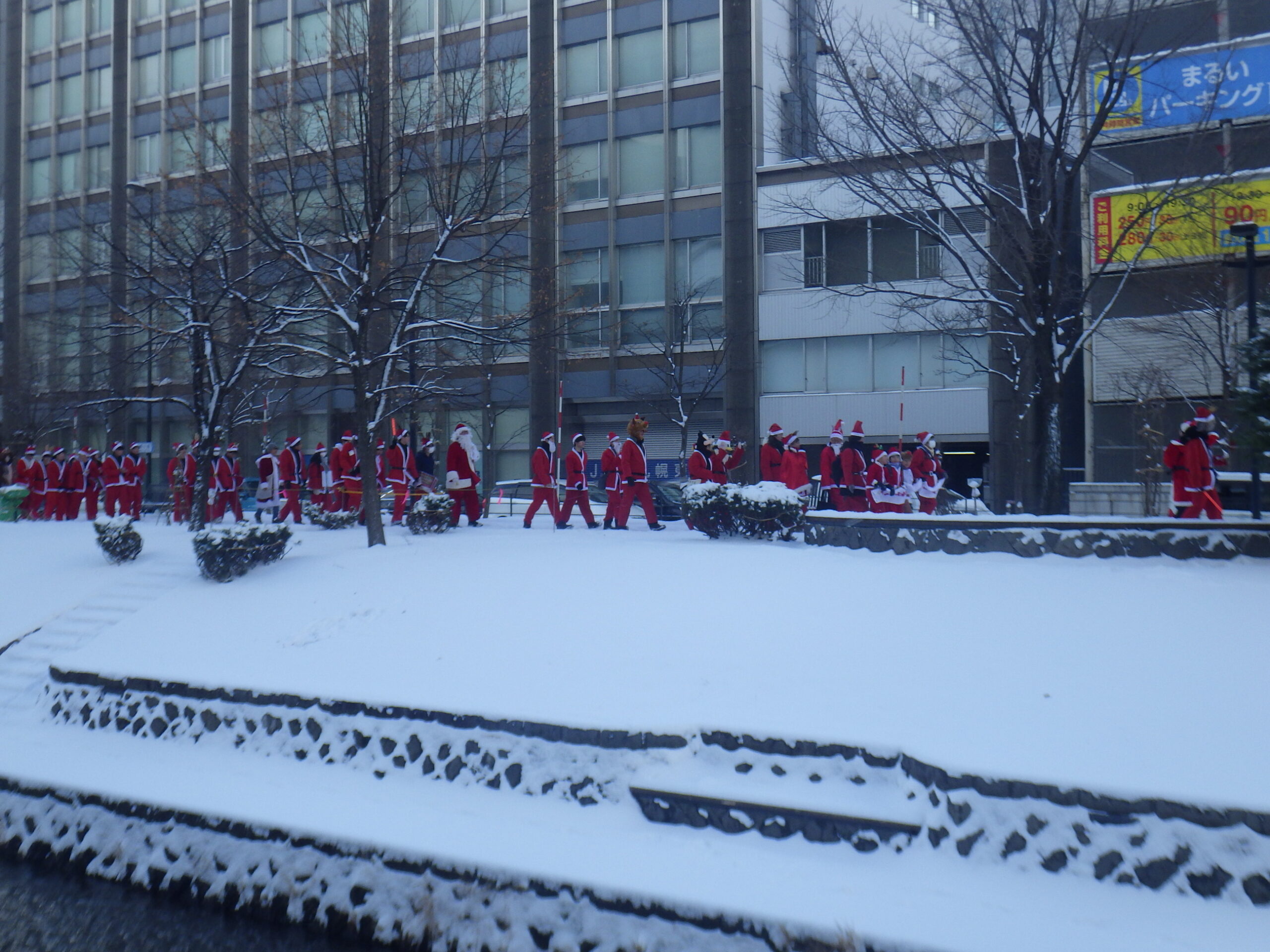少し寒そうなサンタさんたちが、メリークリスマス!と声掛けしながら歩いていきました。
