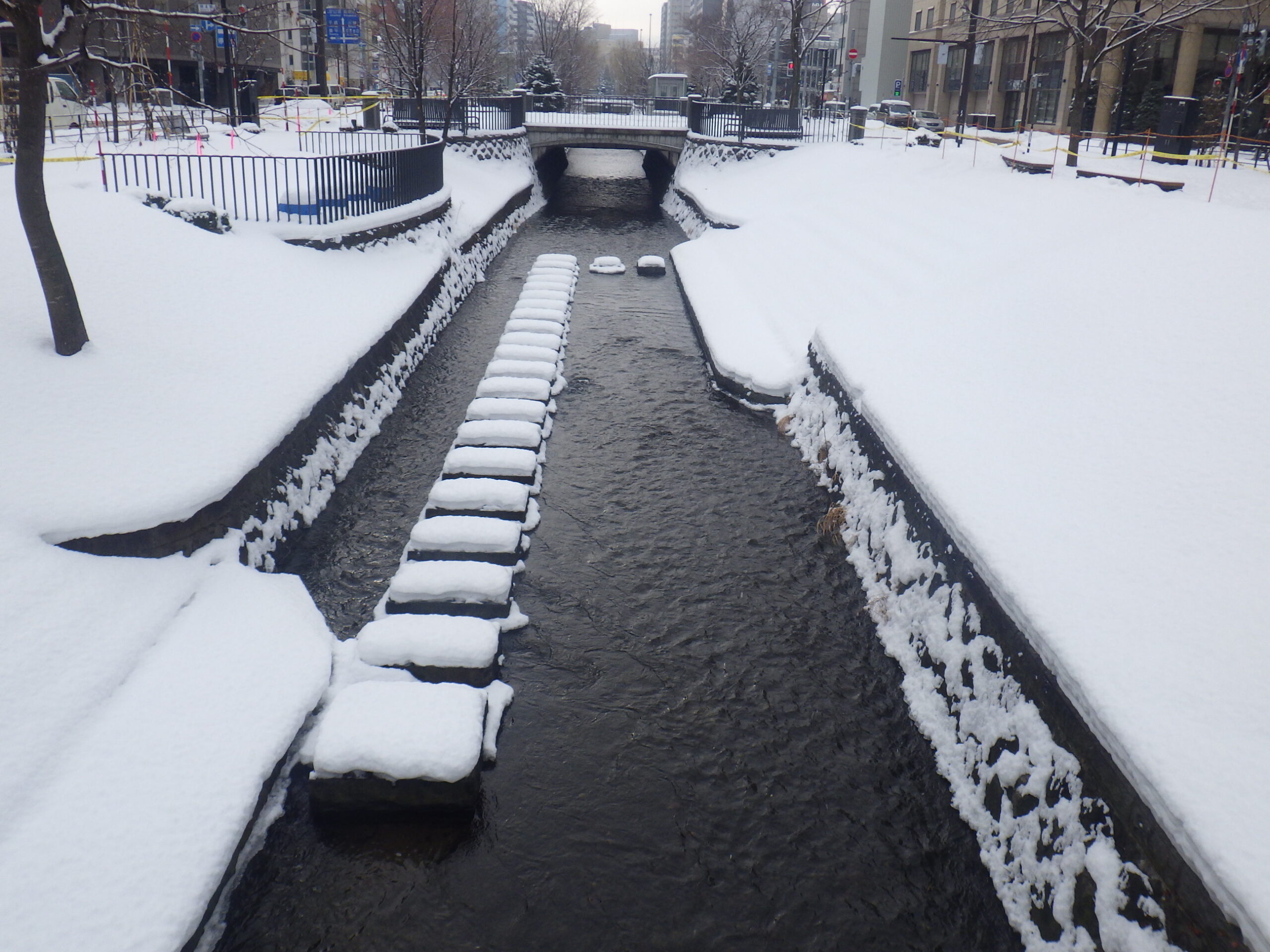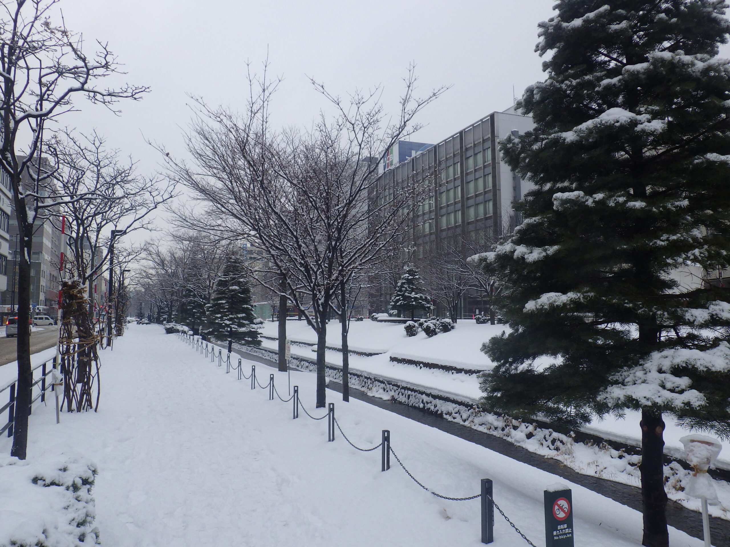 2025年1月6日月曜日、新しい年を迎えました。 今年もどうぞよろしくお願いいたします。 今日は少し暖かく雪も降っていますが、お正月の間はお天気に恵まれたようです。 南1条の園路も支障なく通ることができます。 南1条です。積雪量は昨年の今頃と変わりはないようです。 南2条 南3条創成川の飛び石のあたりです。 北1条 北2条創世スクエア前です。 この後降雪により通行しにくい場所が出てくることもあります。気を付けてお通り下さい。