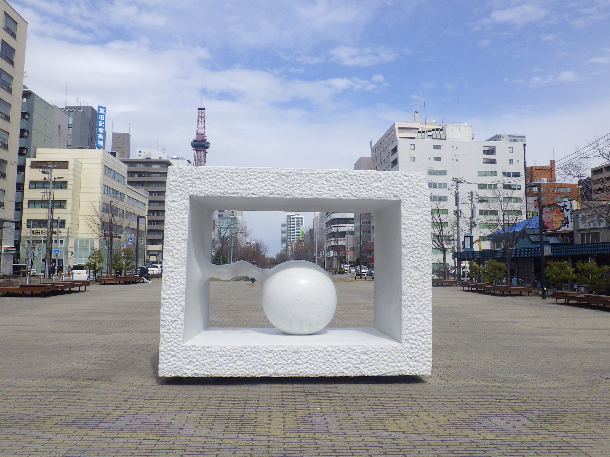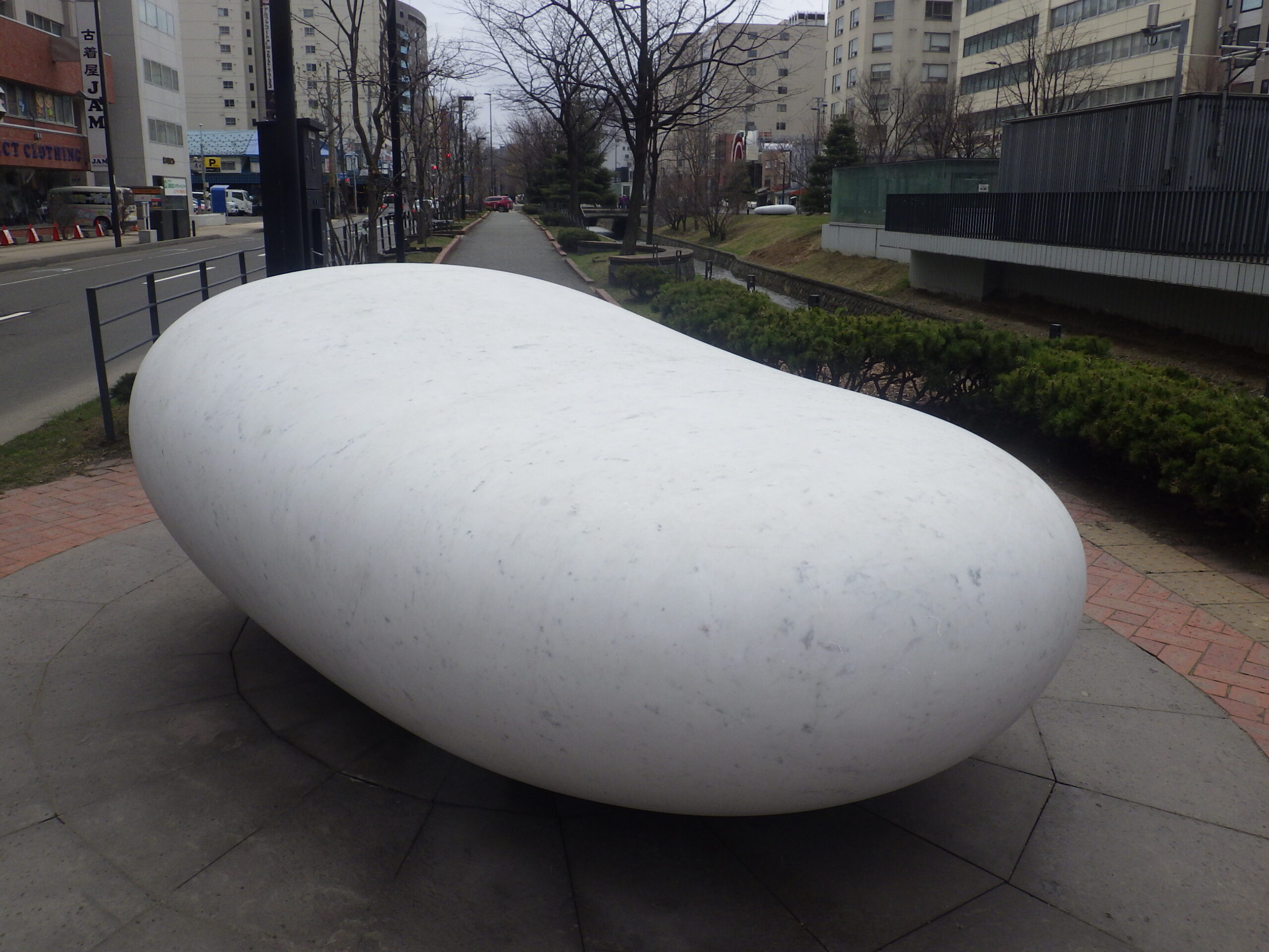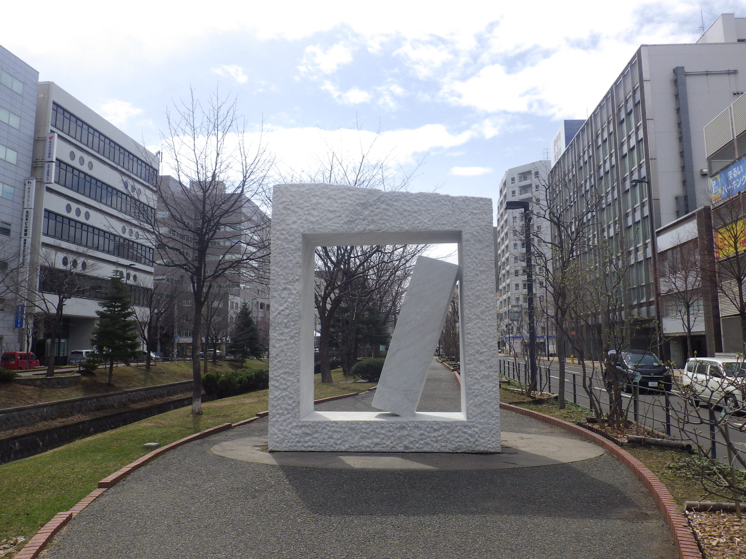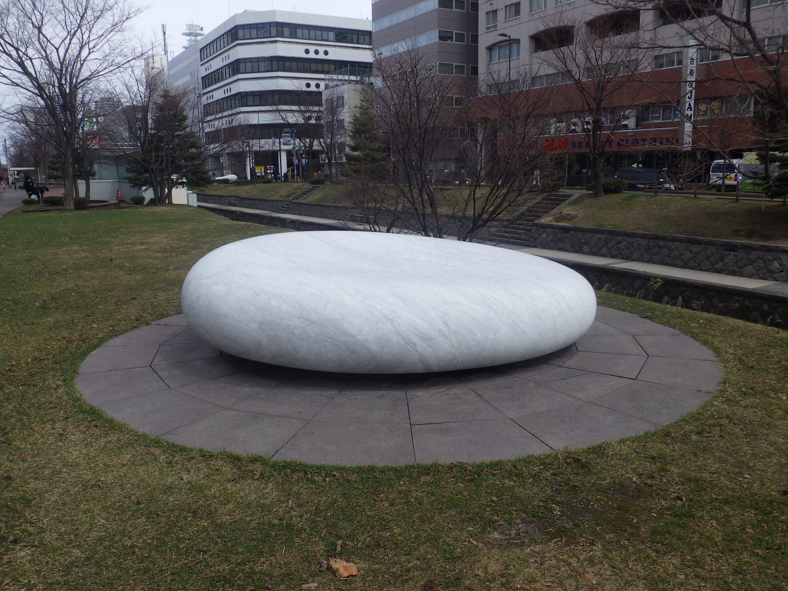 本日、安田侃さんの彫刻のシートが外され、長い冬ごもりから抜け出しました。