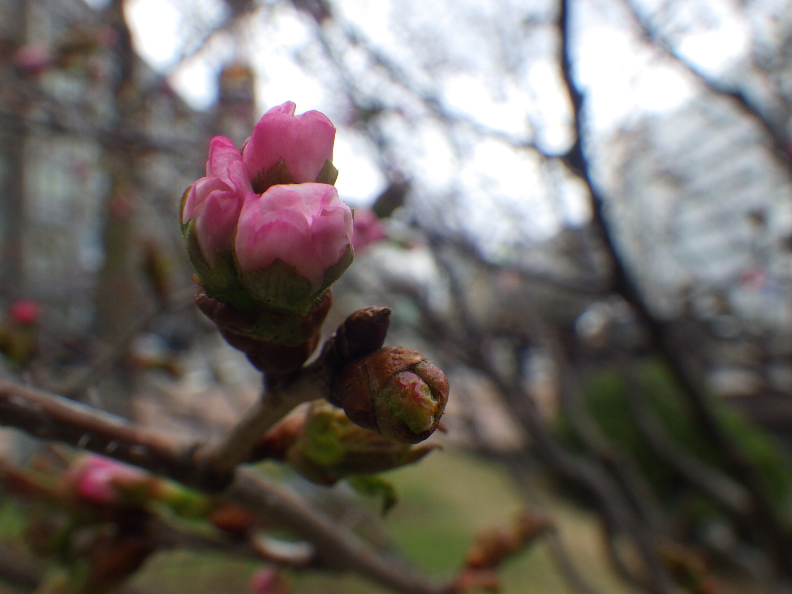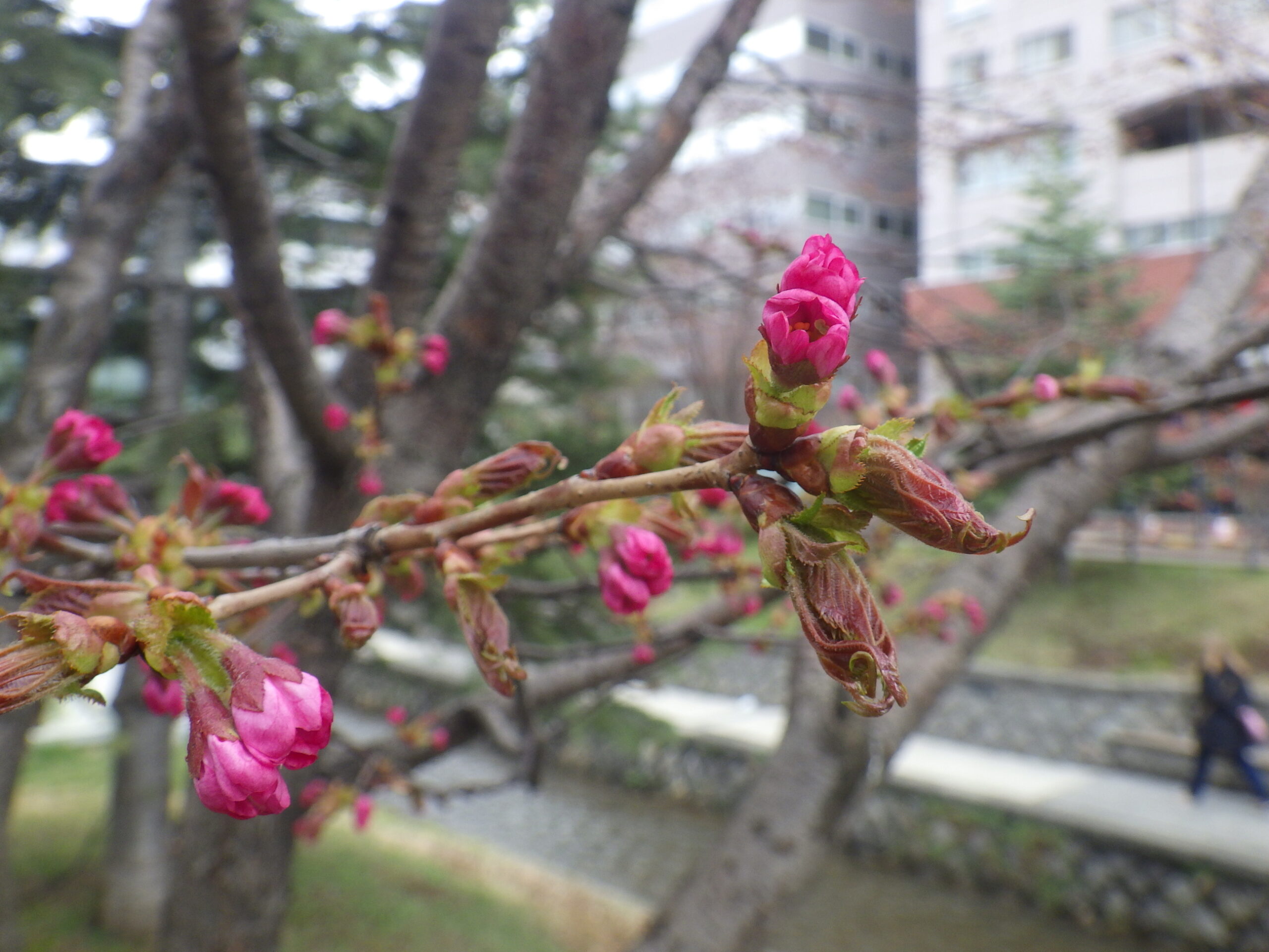 4月19日土曜日、今日の公園内のチシマザクラのつぼみの様子です。