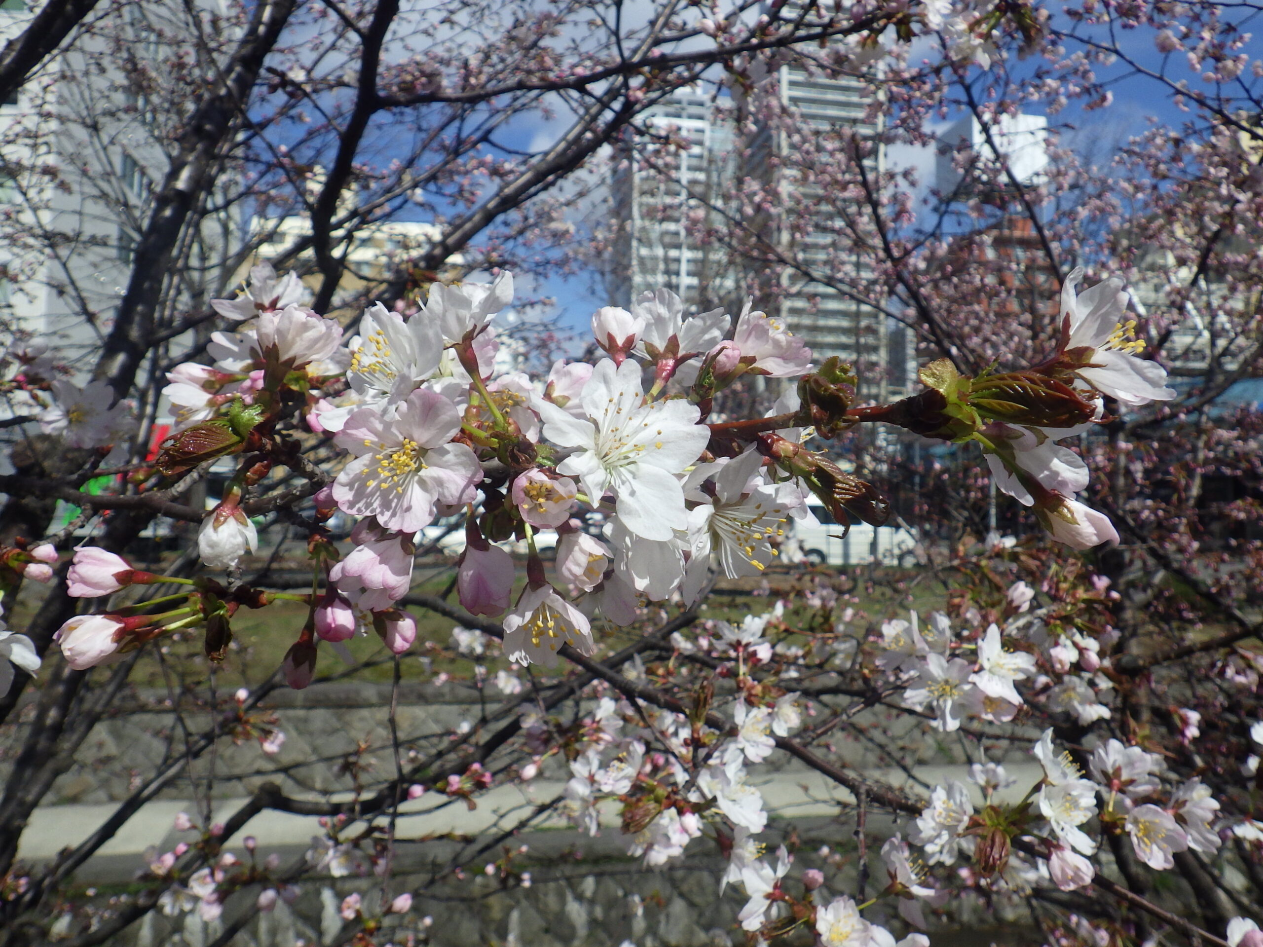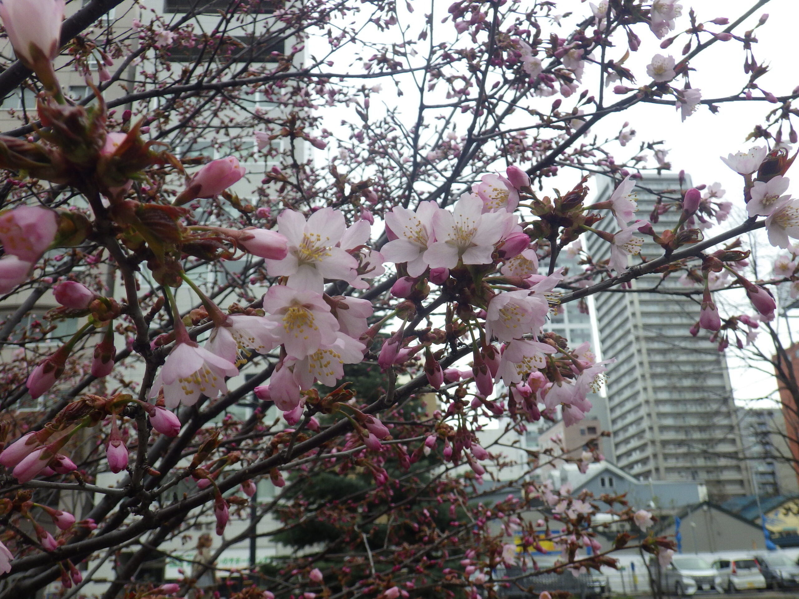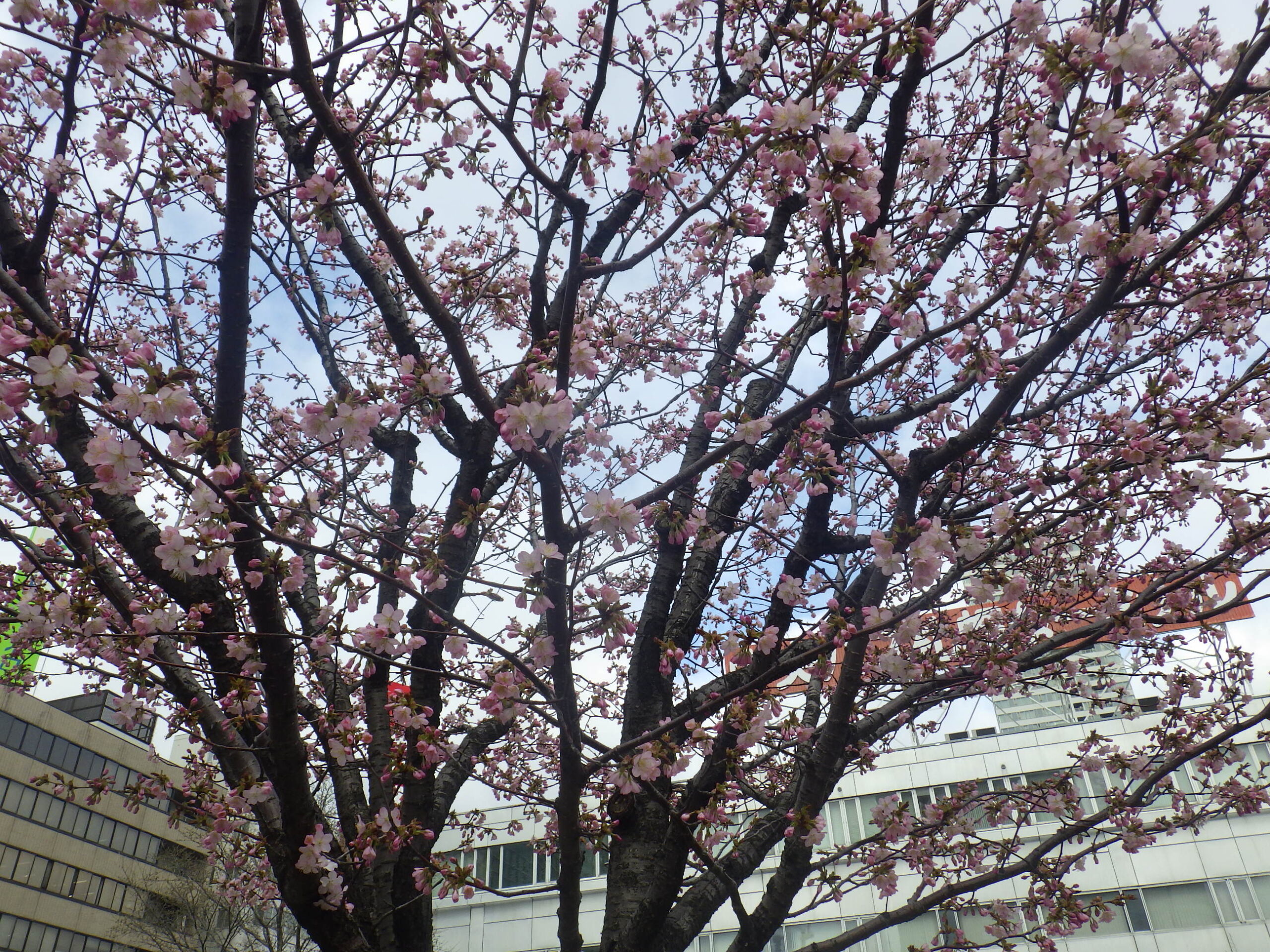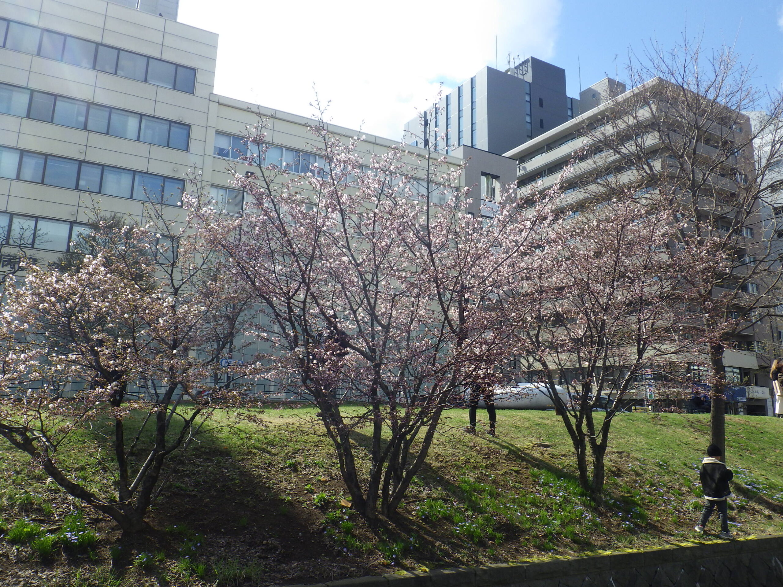 4月23日水曜日、南2条のチシマザクラがきれいに咲いていました。 南2条西側には川に沿ってチシマザクラが植えられています。 こちらは北2条ブロック西側創世スクエア前のチシマザクラです。 北1条のエゾヤマザクラも開花が進んでいます。 24日は気温の上がる見込みです。 さらに開花が進みますね。
