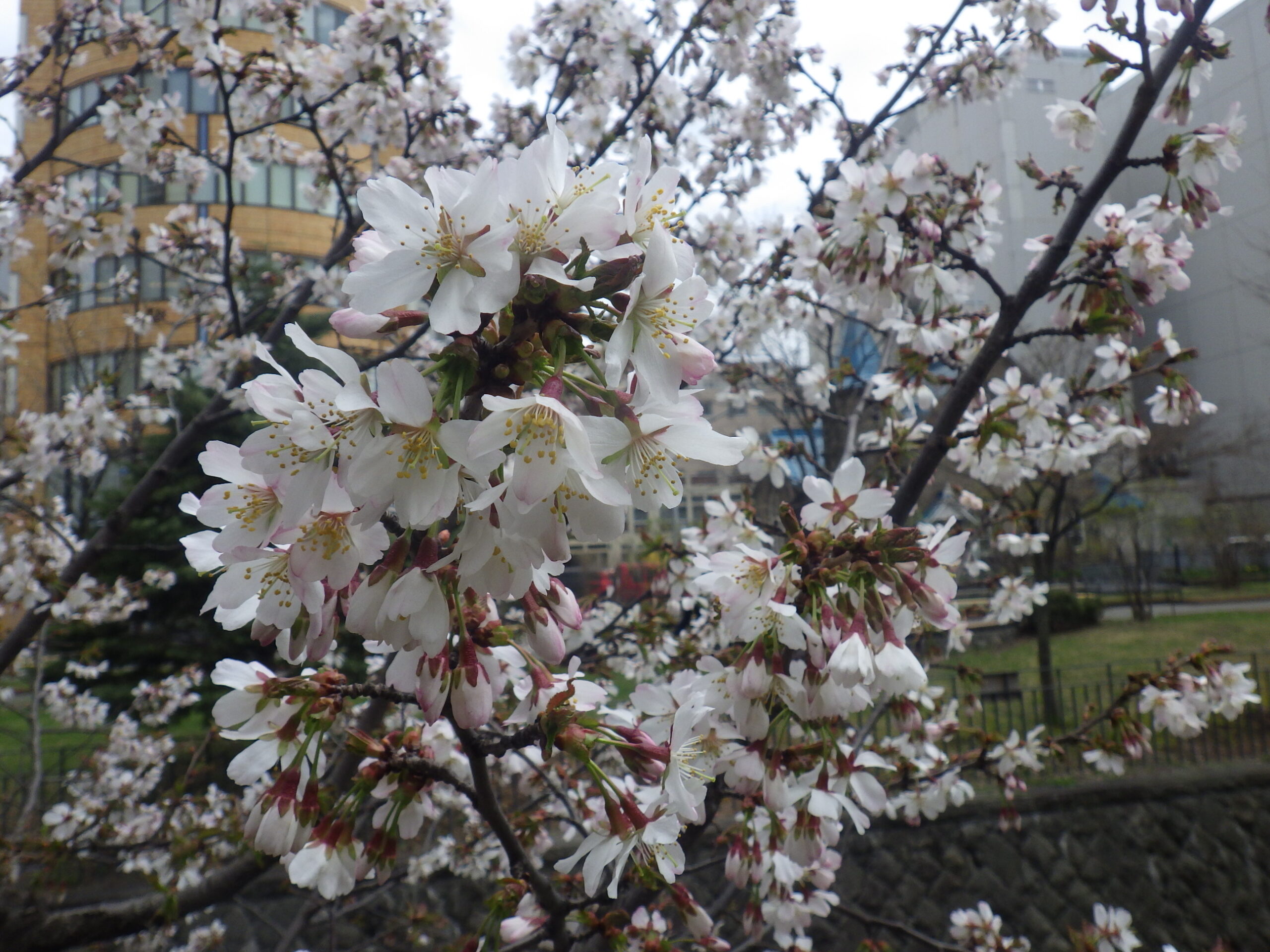 北1条西側のエゾヤマザクラ、公園内で一番咲いているエゾヤマザクラです。