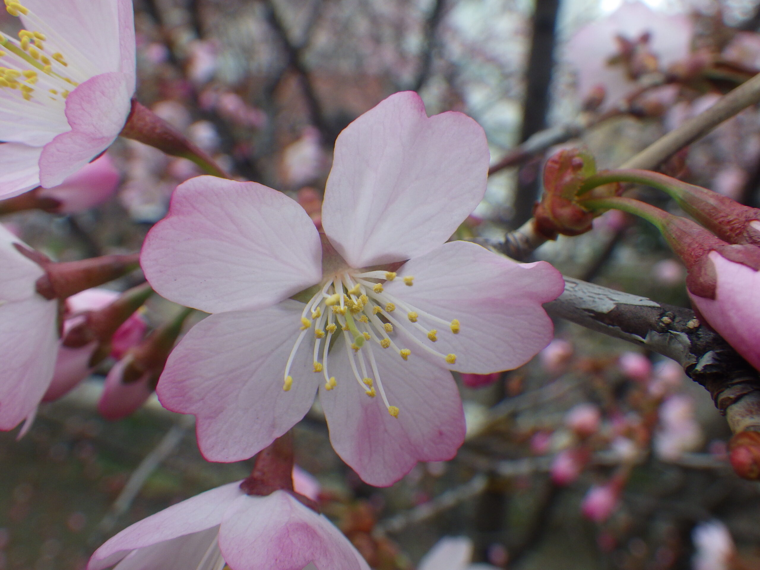公園内のサクラも暖かさに誘われて、昨日よりさらに花開いています。