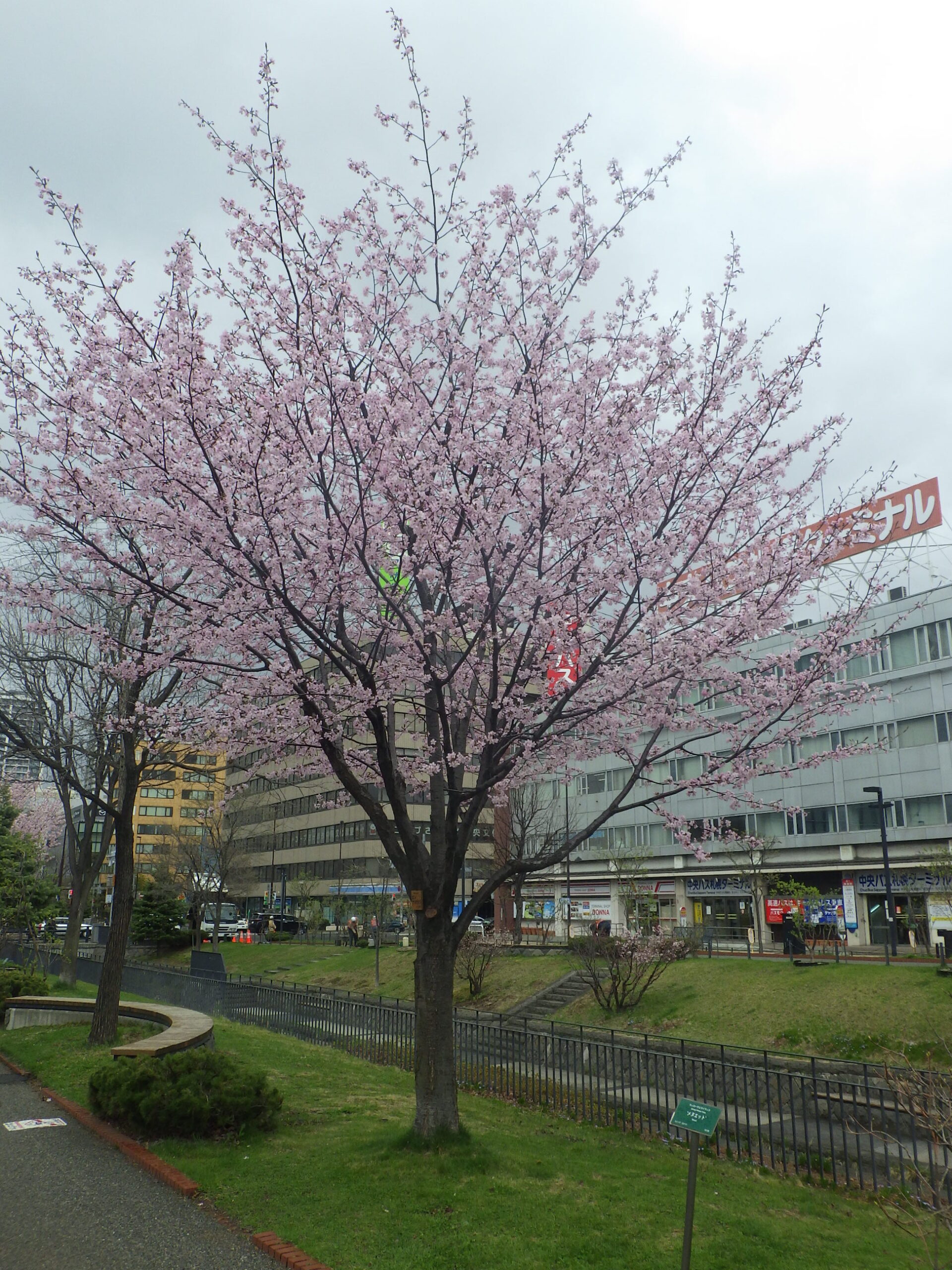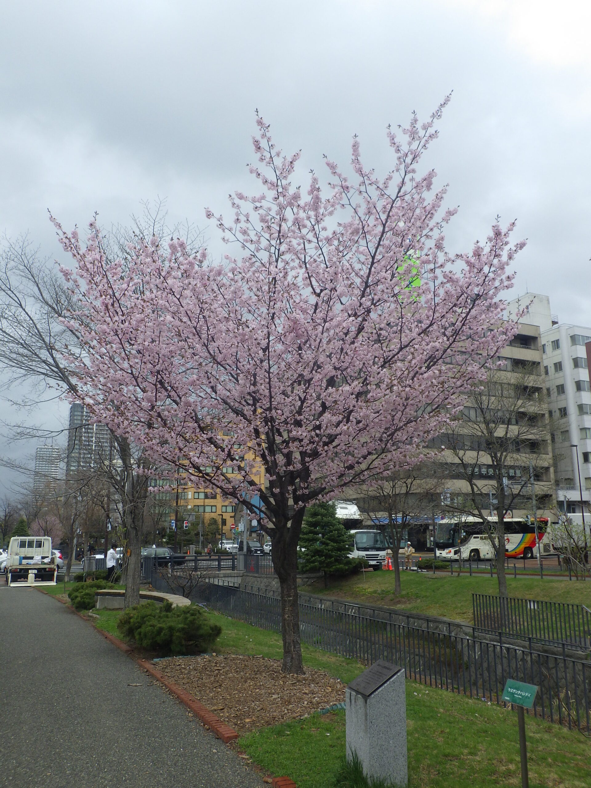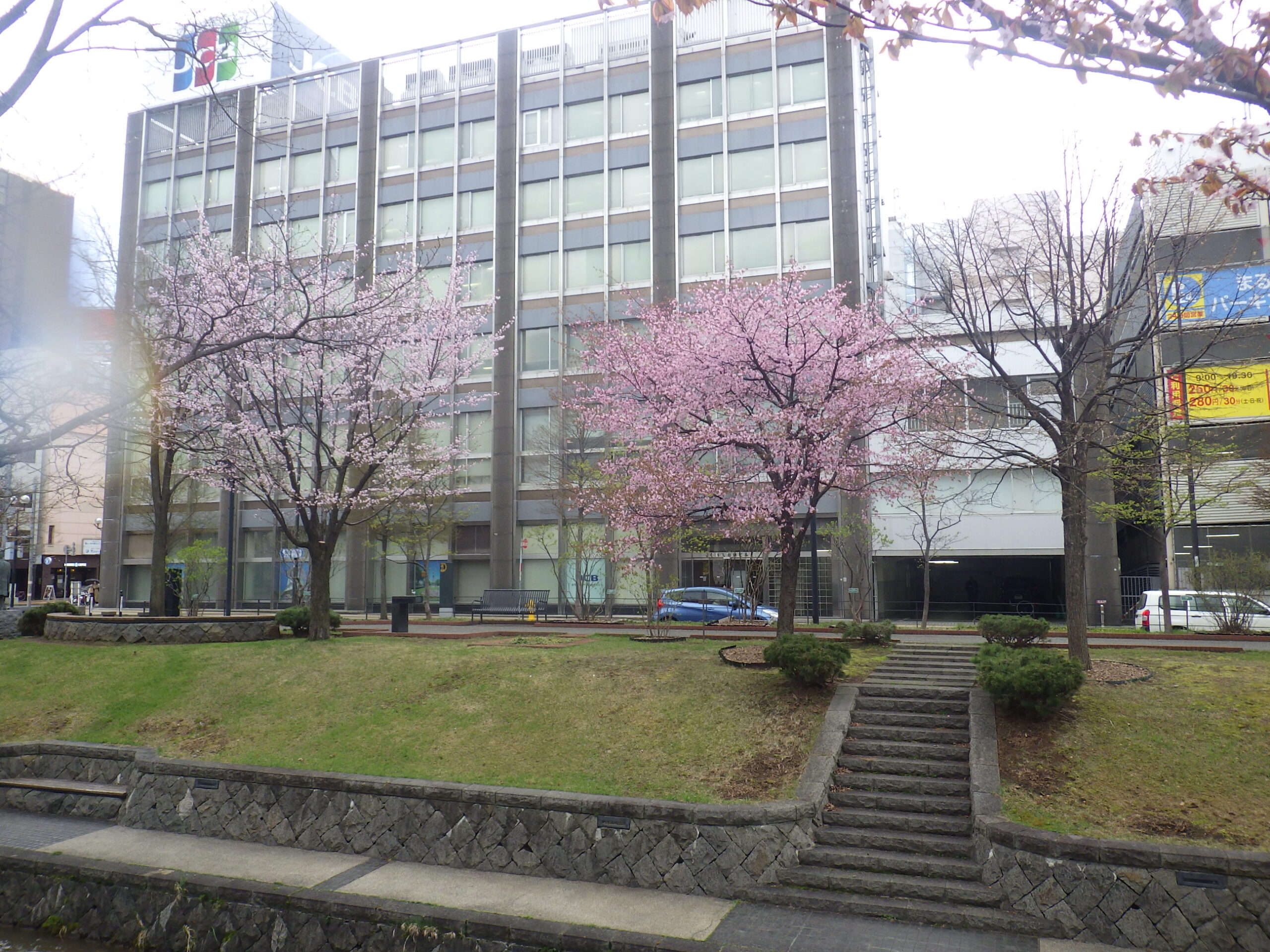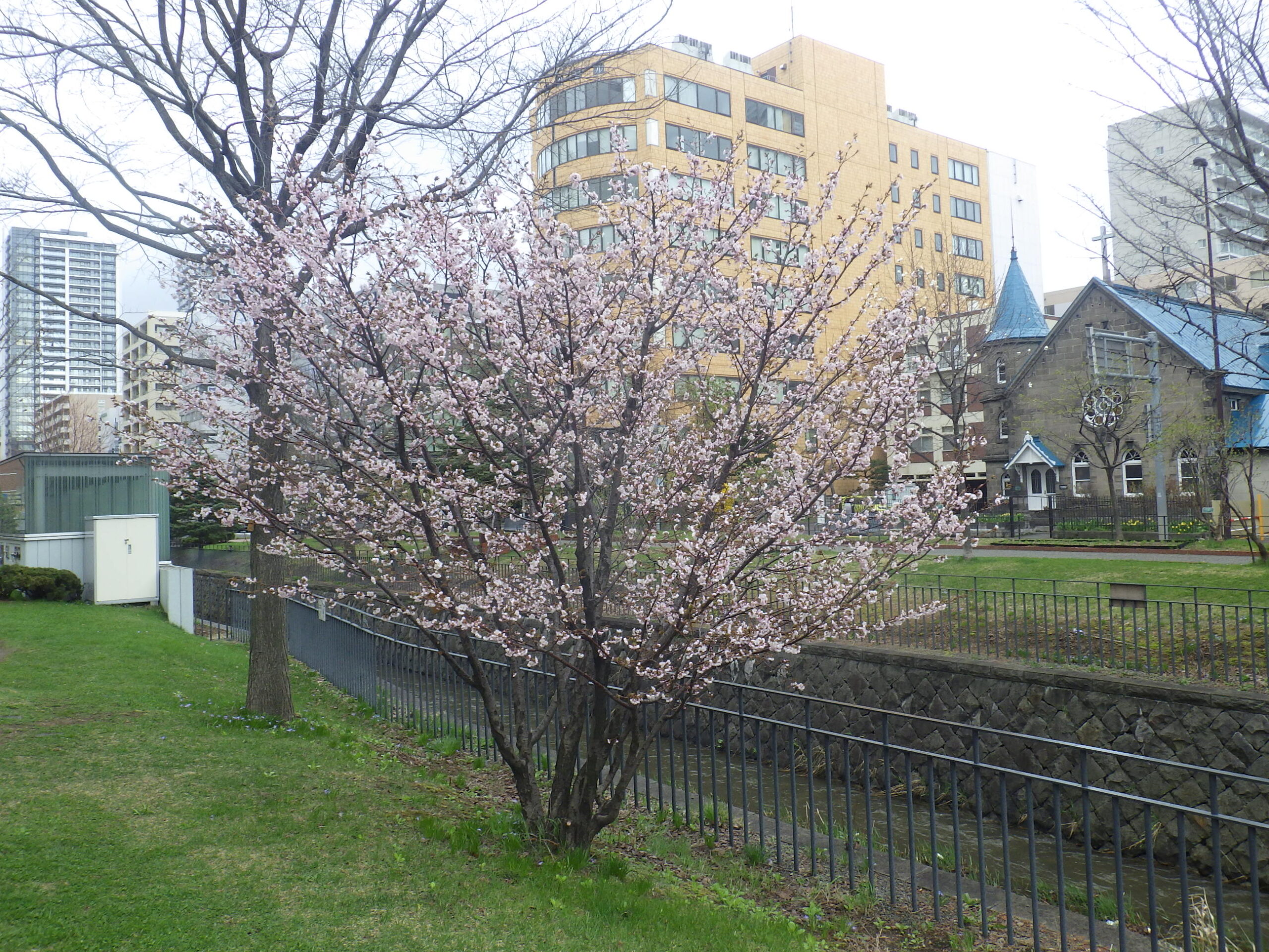 北2条ブロック創世スクエア前のチシマザクラもきれいに咲いています。