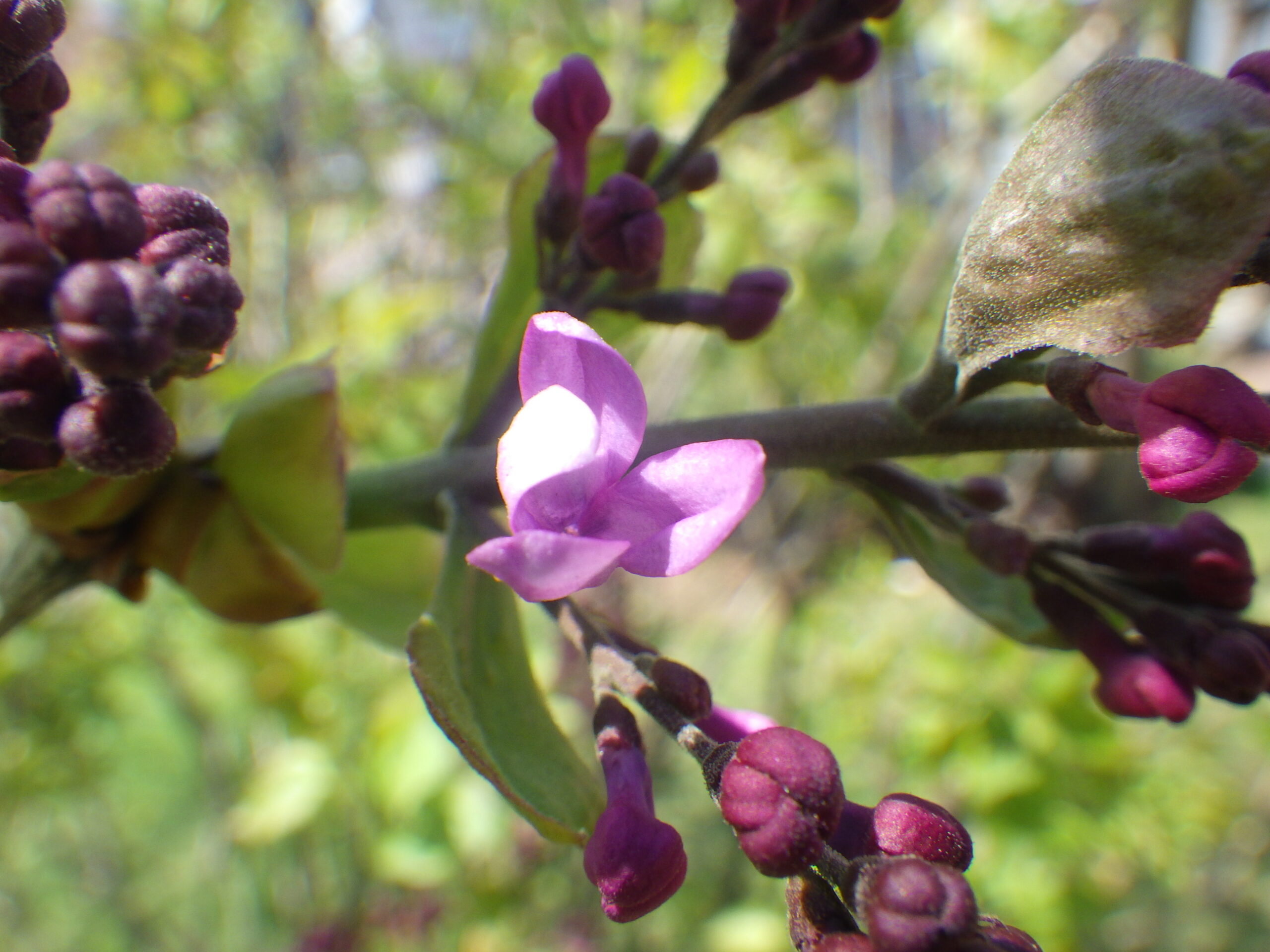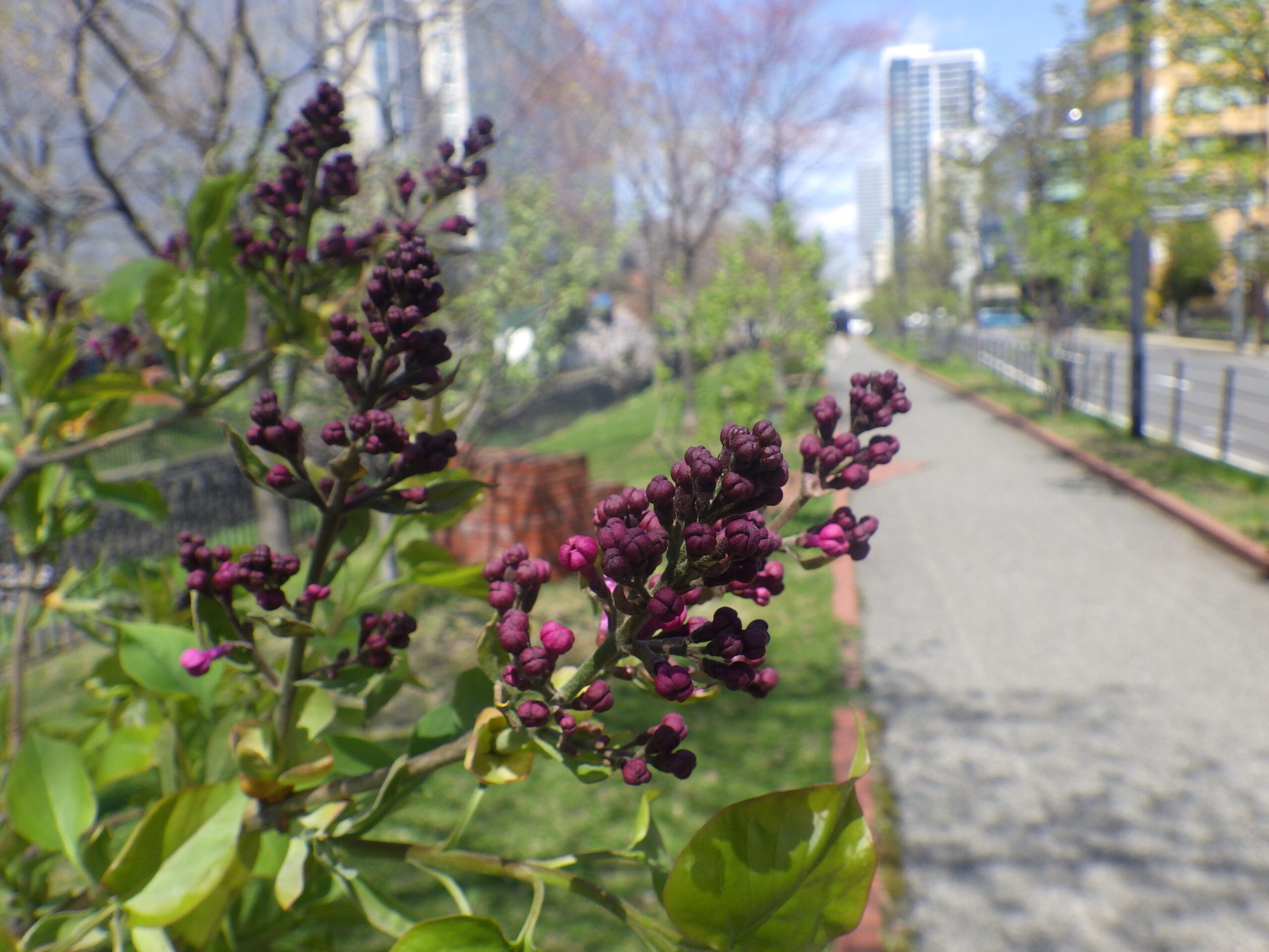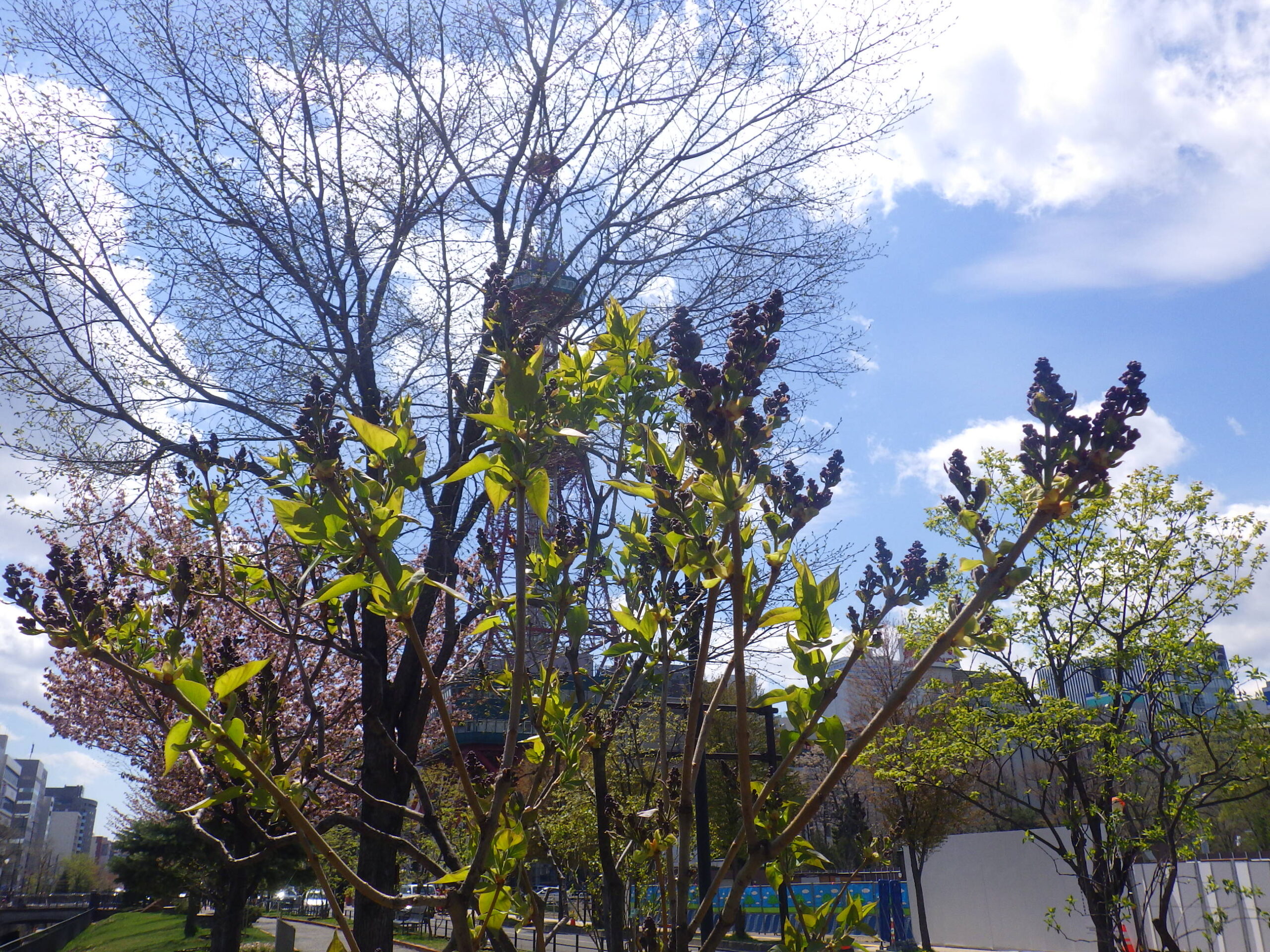 5月3日土曜日、一番北のライラック「アセシッピー」のつぼみの小さな花が一つ開いていました。