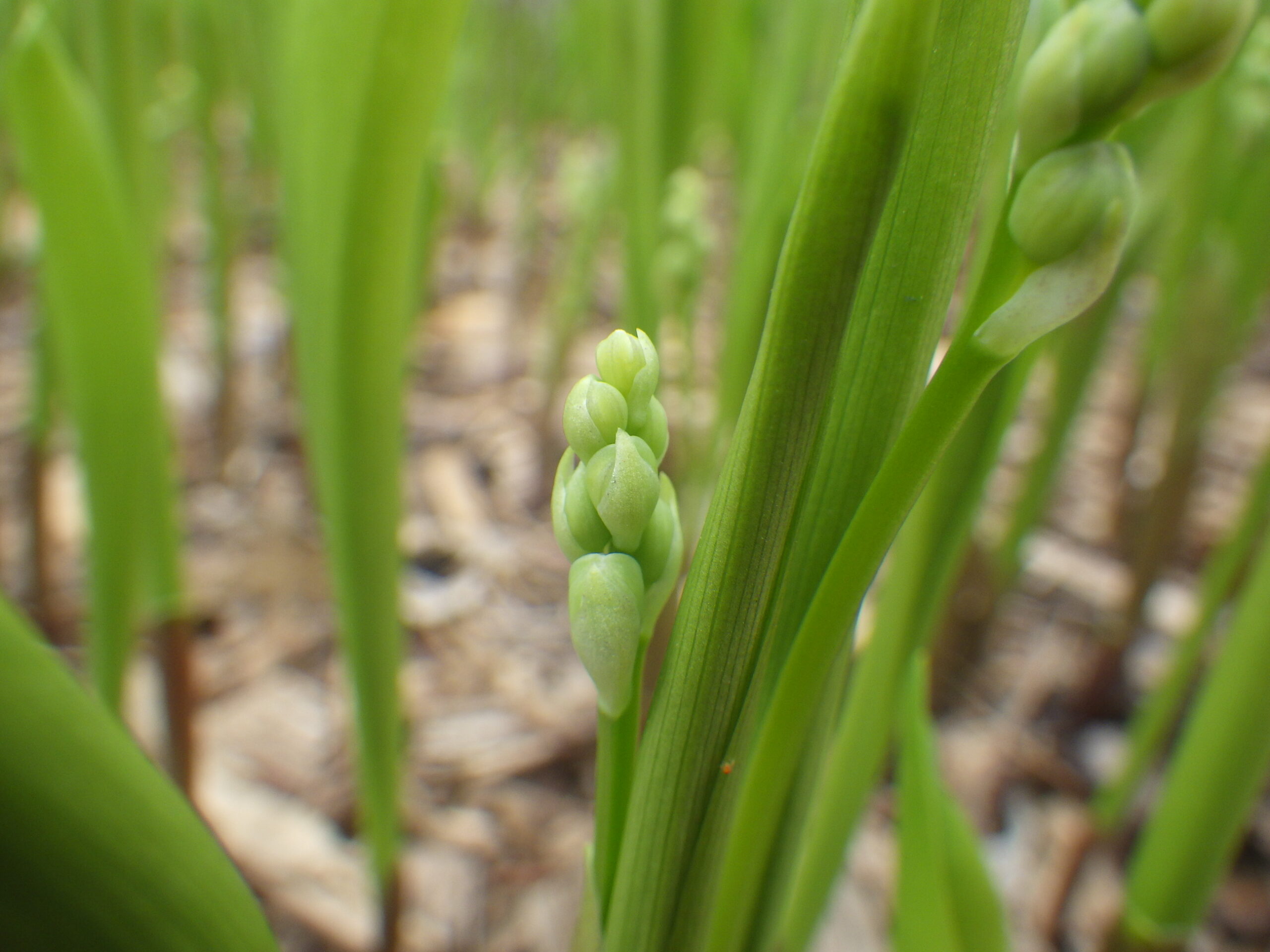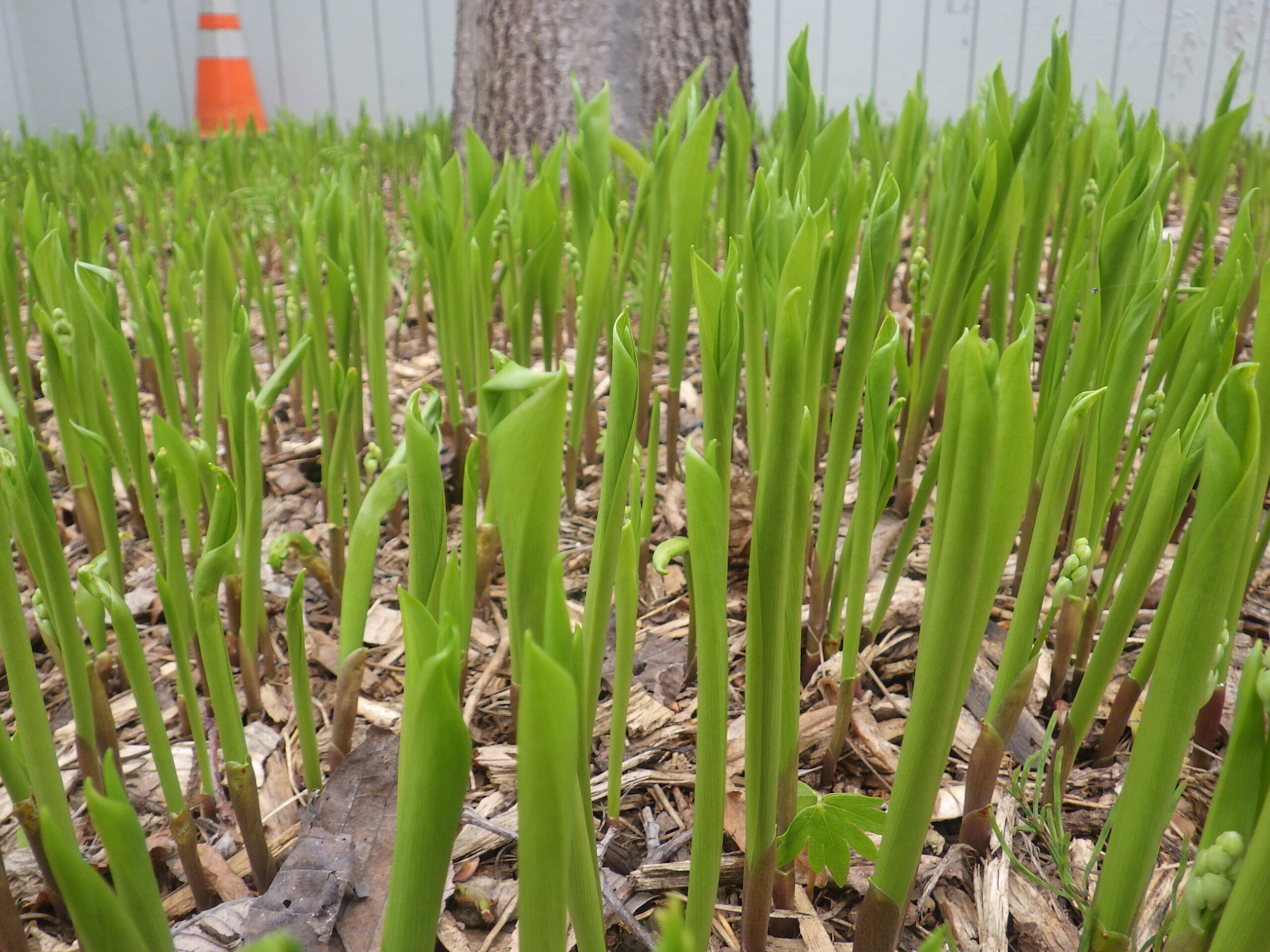 園内に30カ所以上あるドイツスズランの花壇では、たくさんの芽が伸びています。
