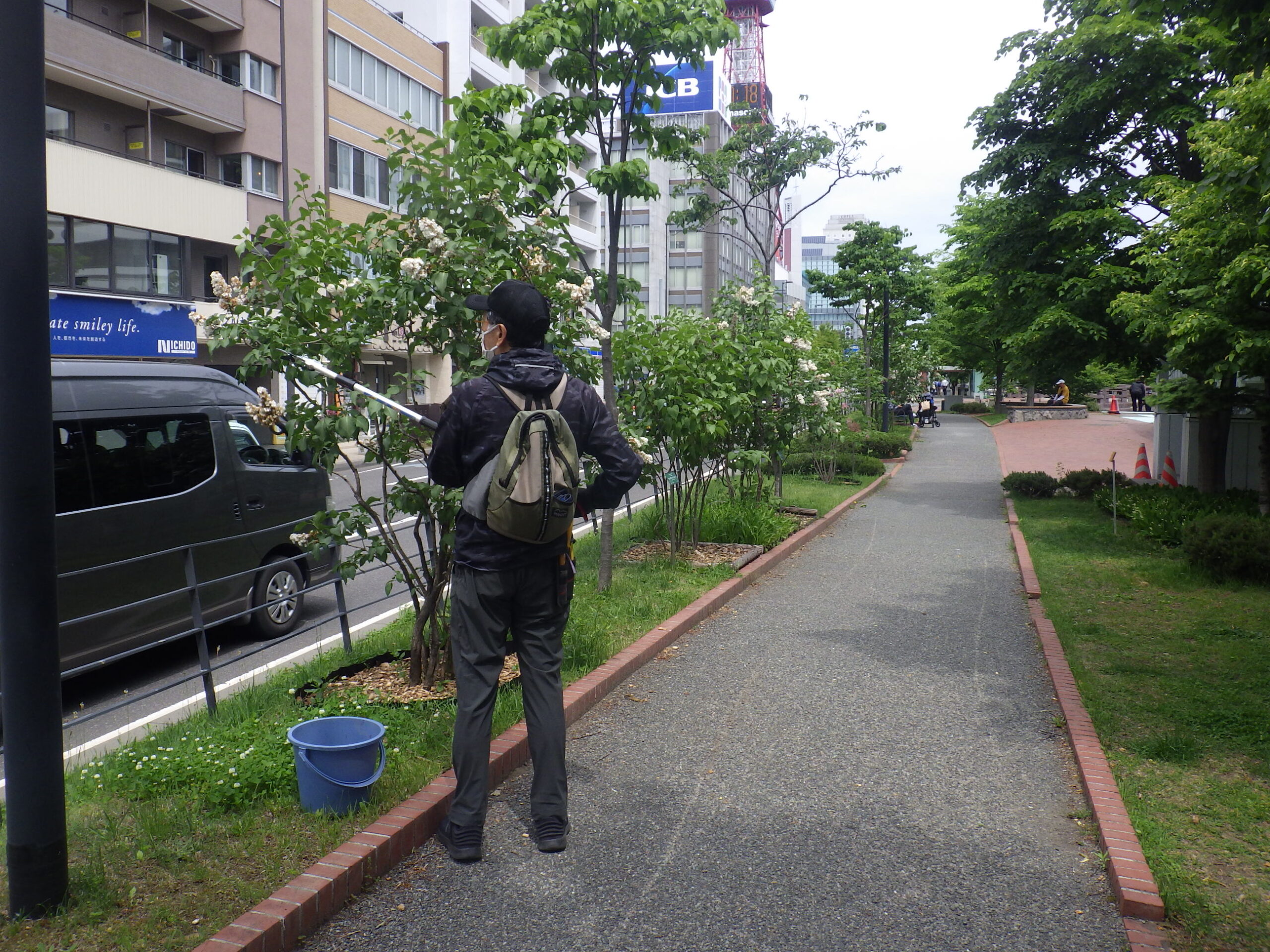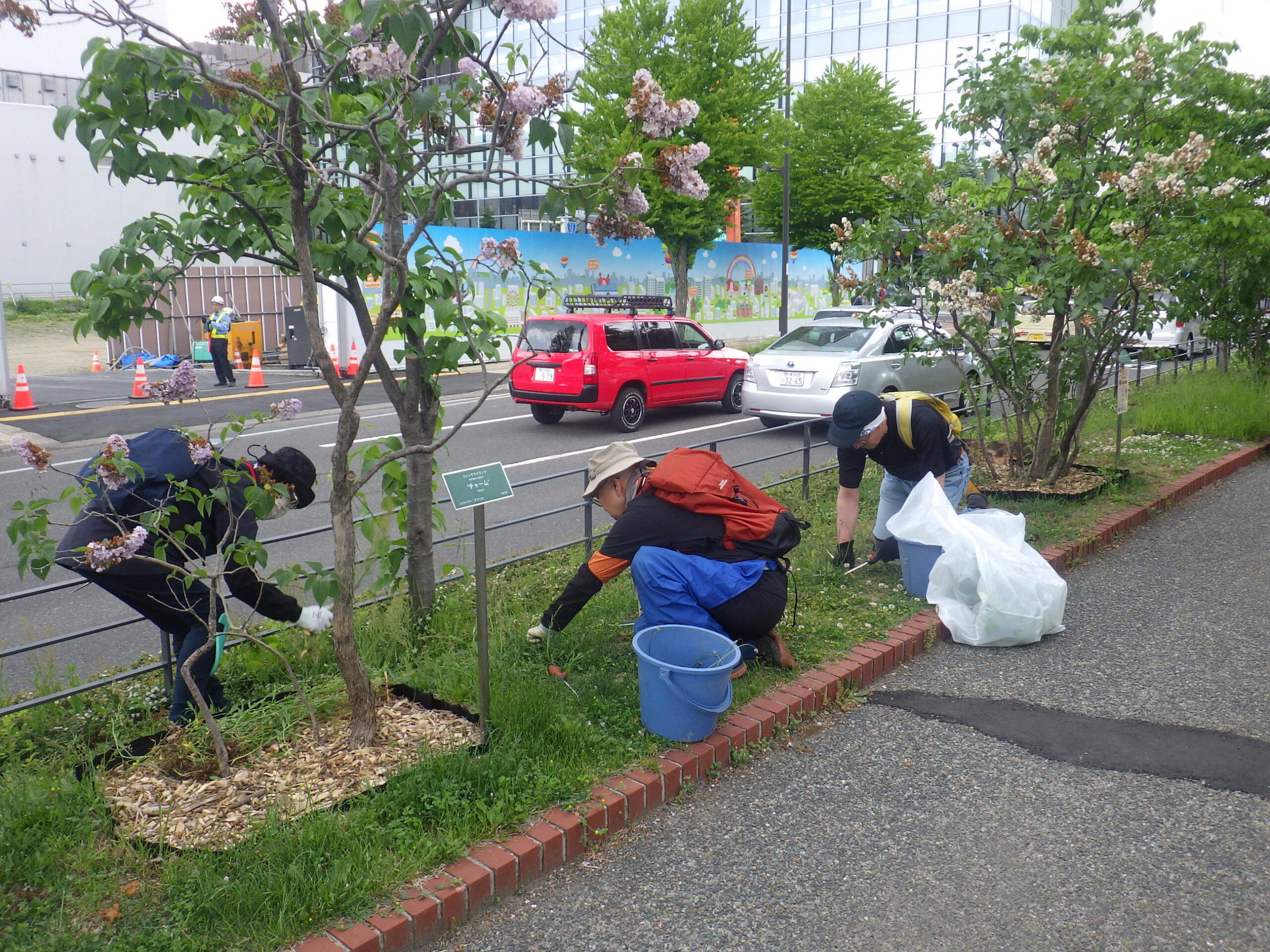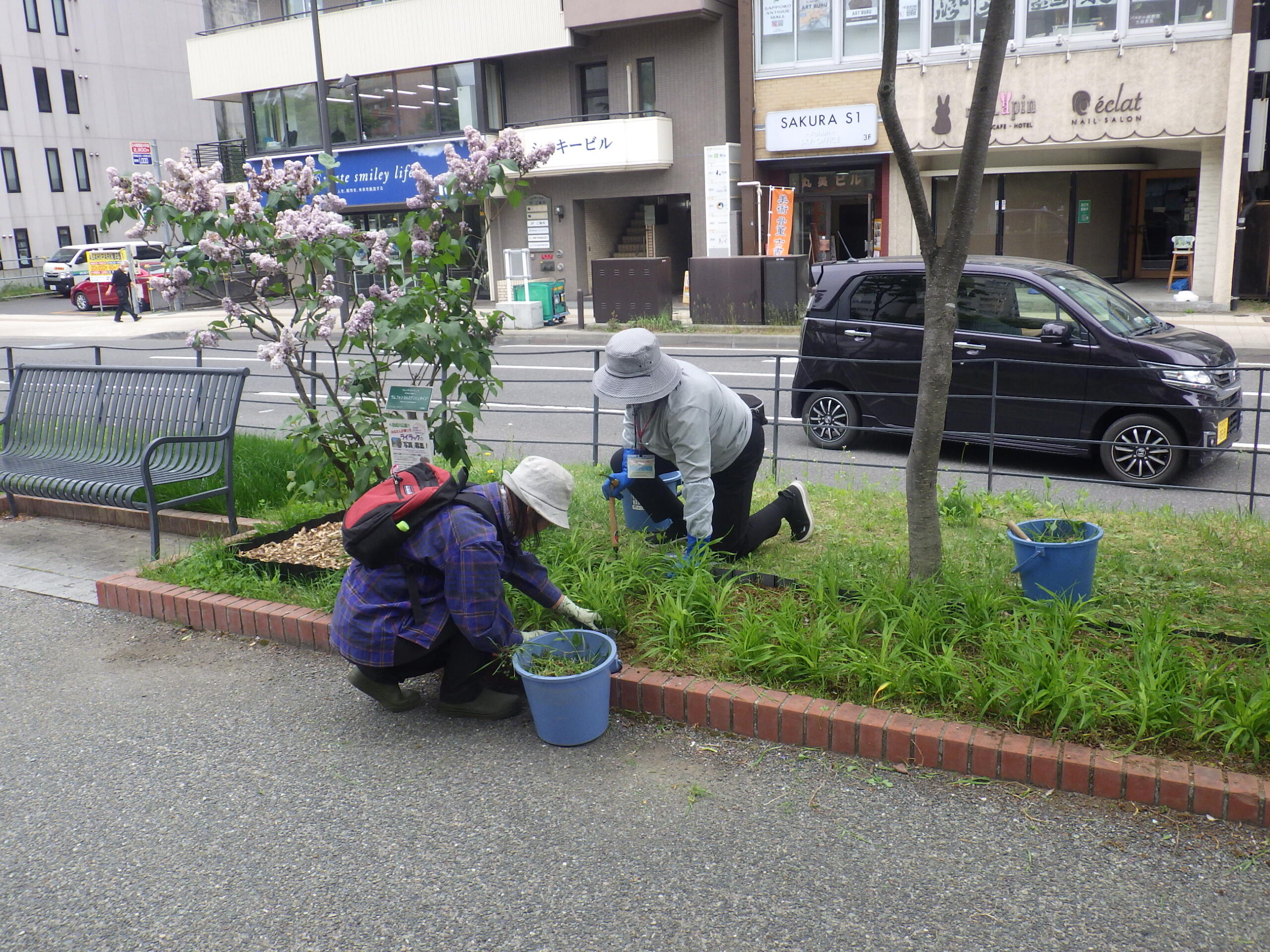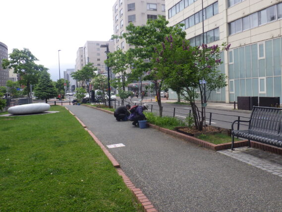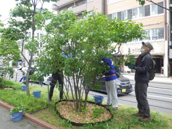6月3日火曜日、植物ボランティアではライラックの花がら摘みと花後剪定、ヘメロカリス花壇の除草を行いました。