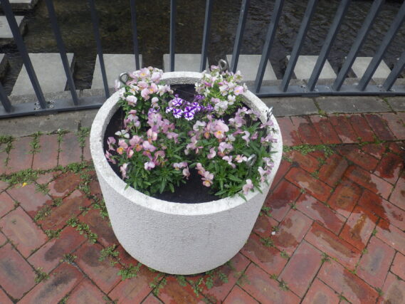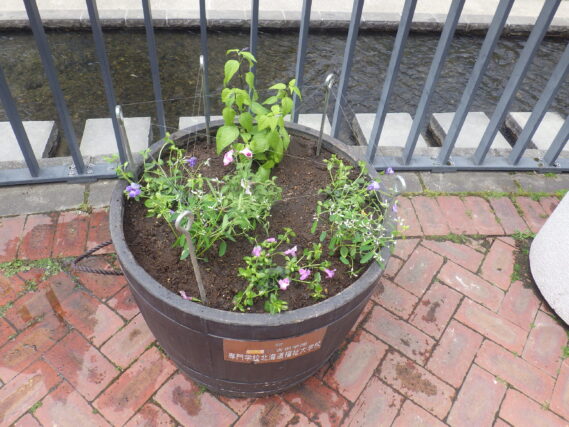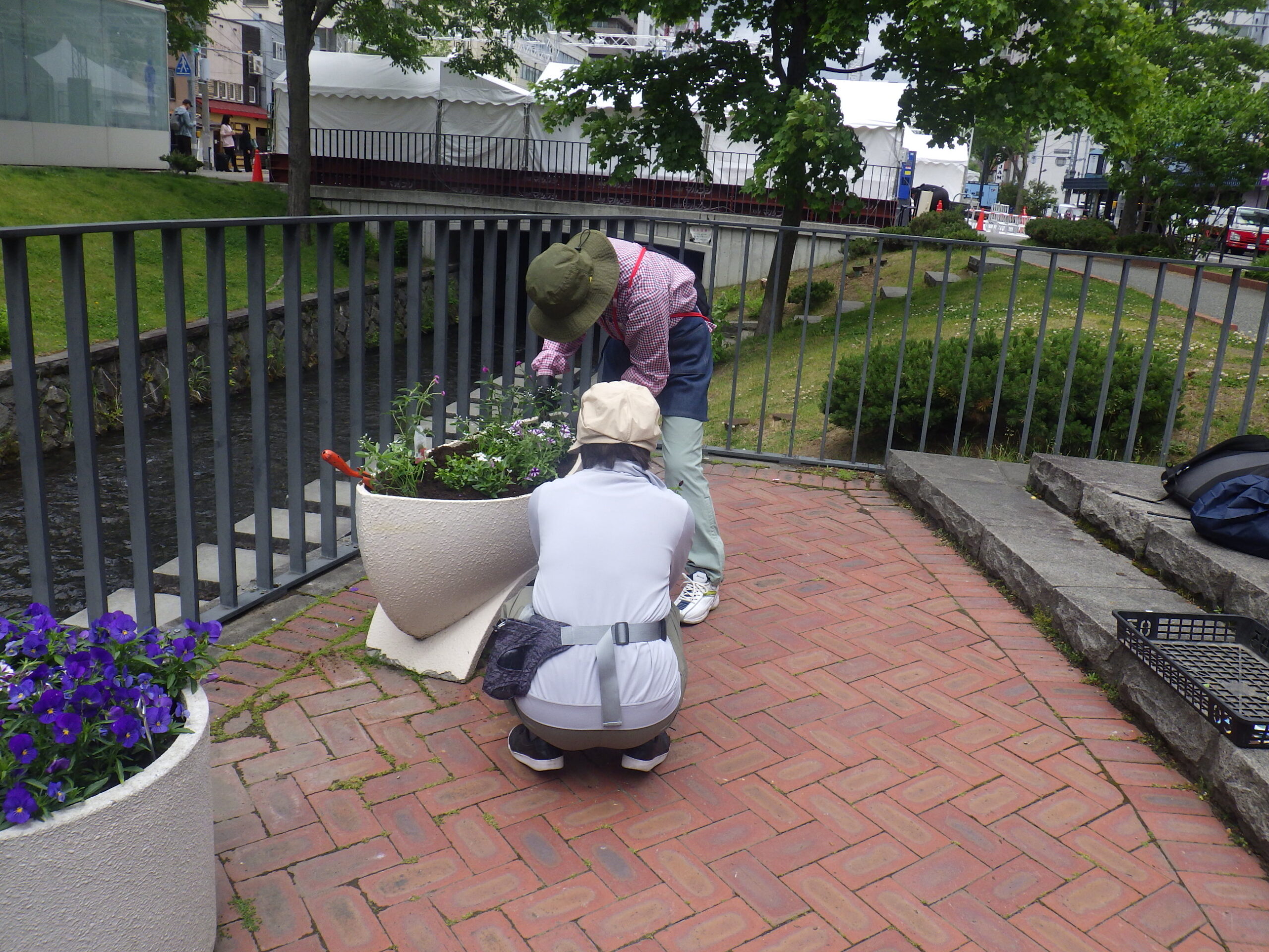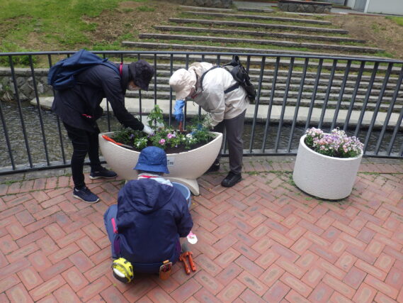 6月5日木曜日、花くらぶでは、狸二条広場南側のコンテナ花壇の花を植え替えました。