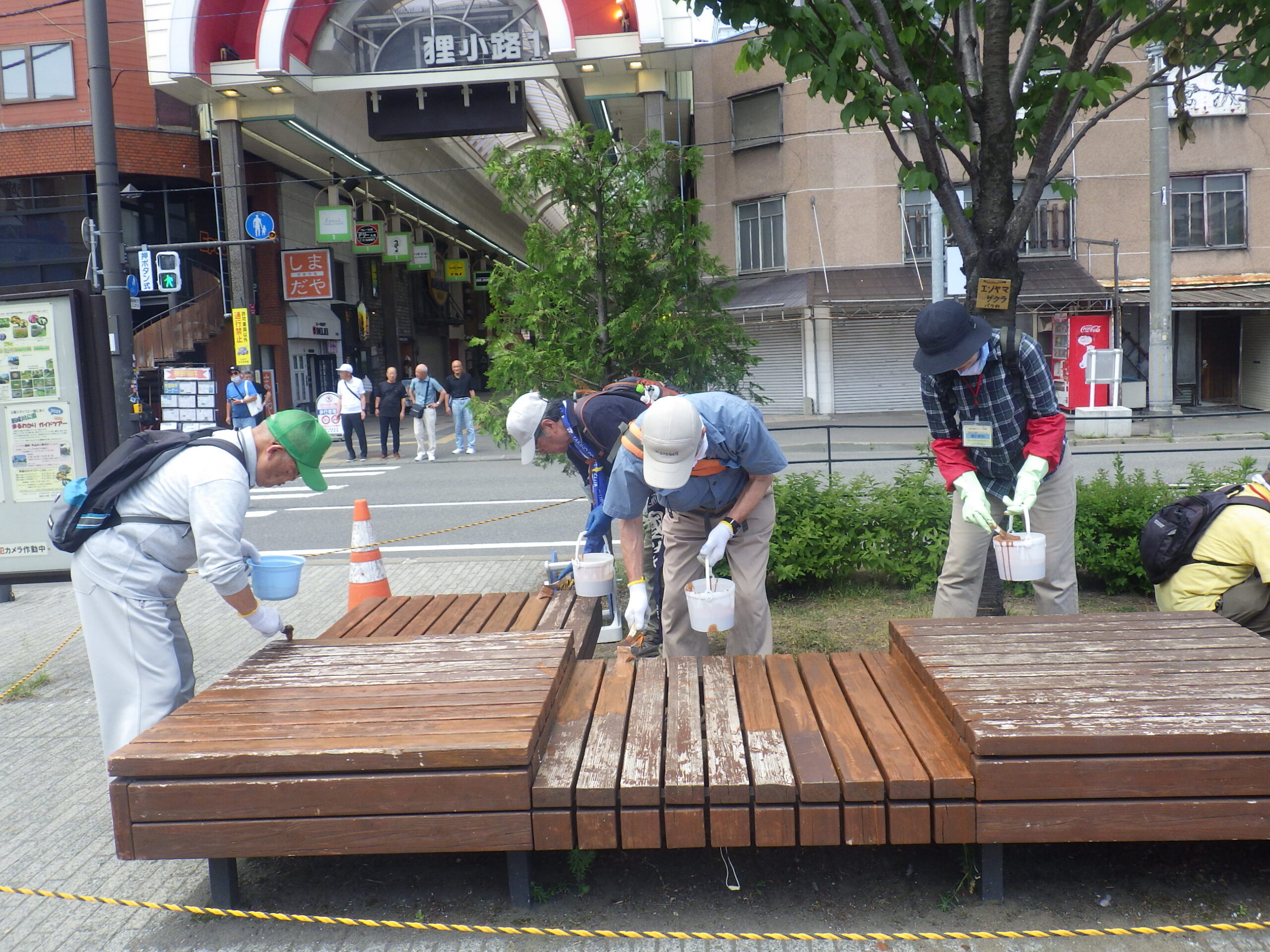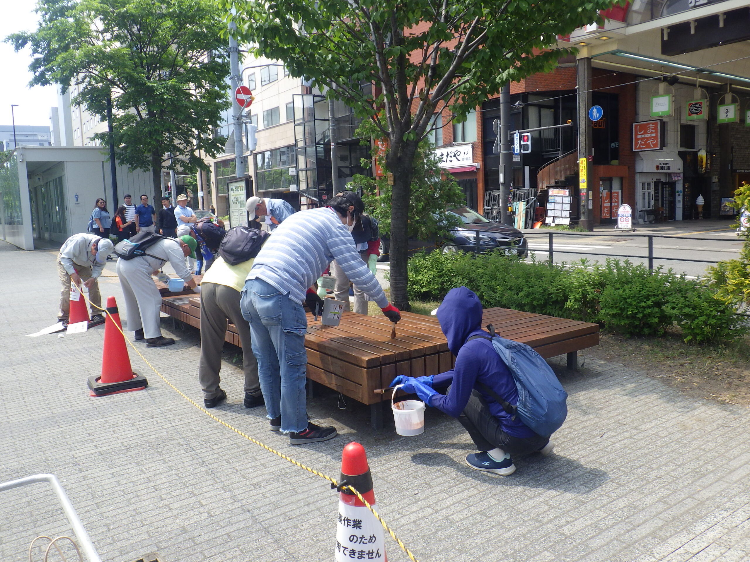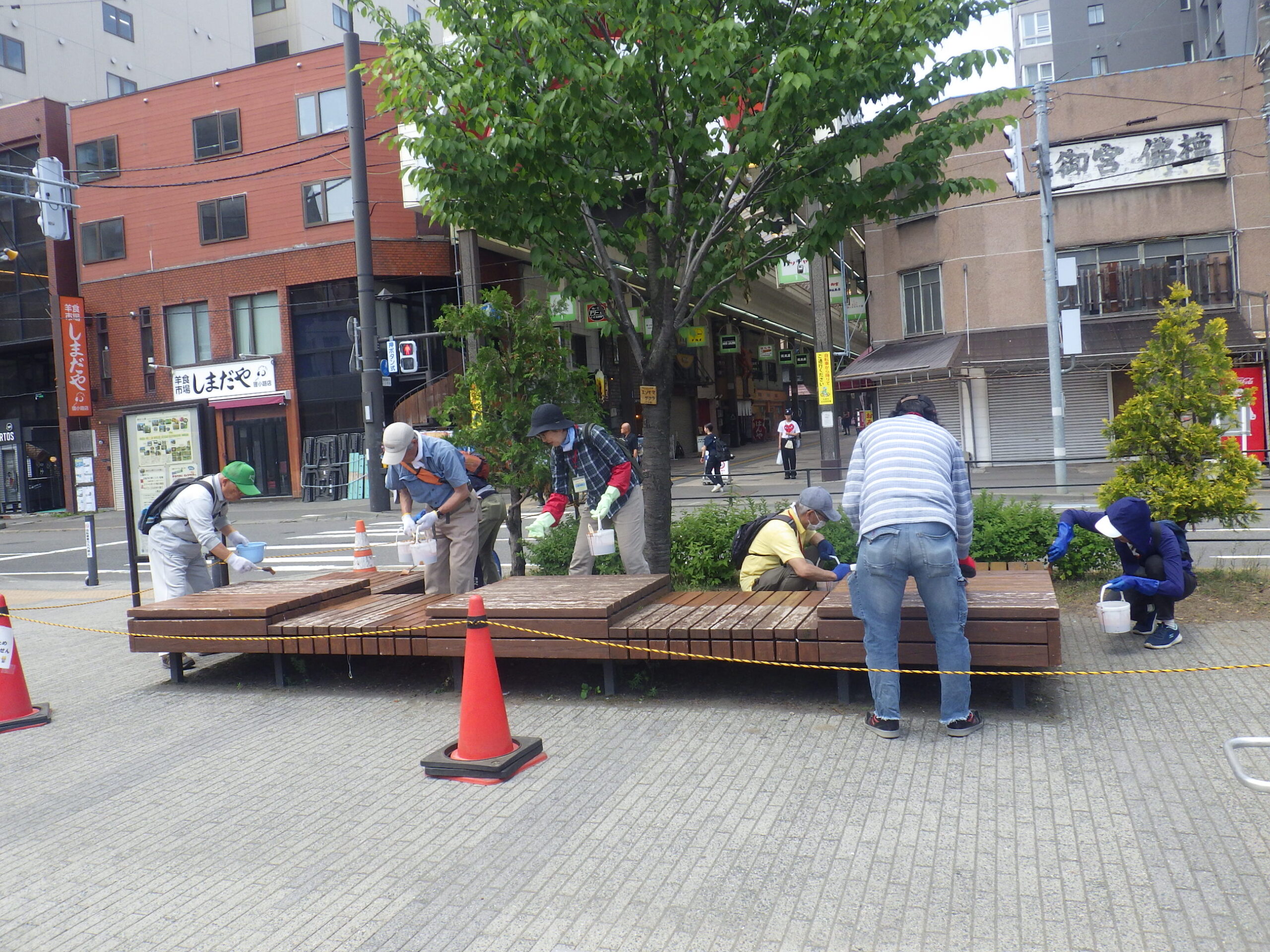 6月18日水曜日、お助け隊で狸二条広場の縁台の塗装作業を行いました。
