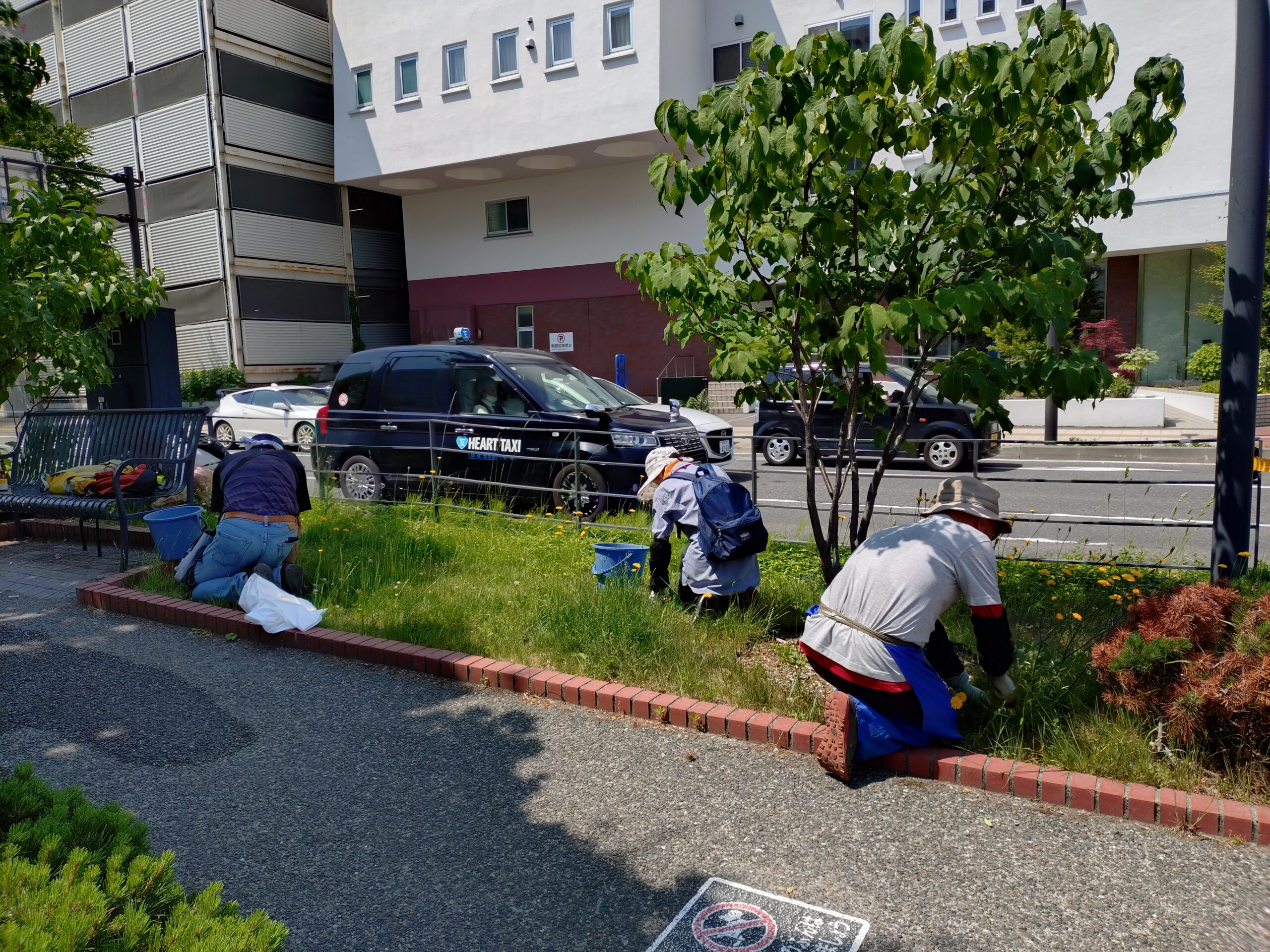 お助け隊ではヘメロカリス花壇の除草作業、やってもやってもなかなか進みません。