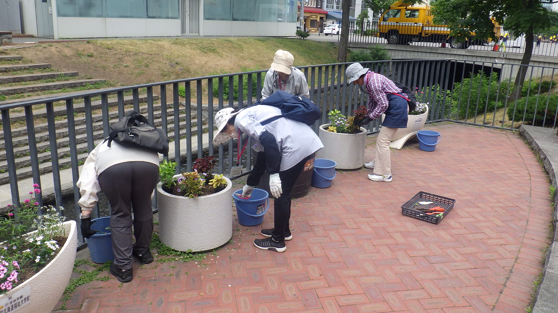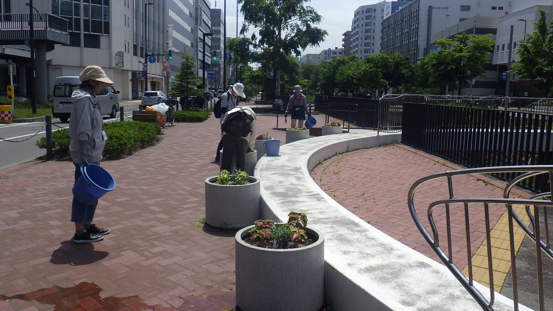 6月26日木曜日、花くらぶではコンテナ花壇のお手入れです。お水もたっぷりあげました。