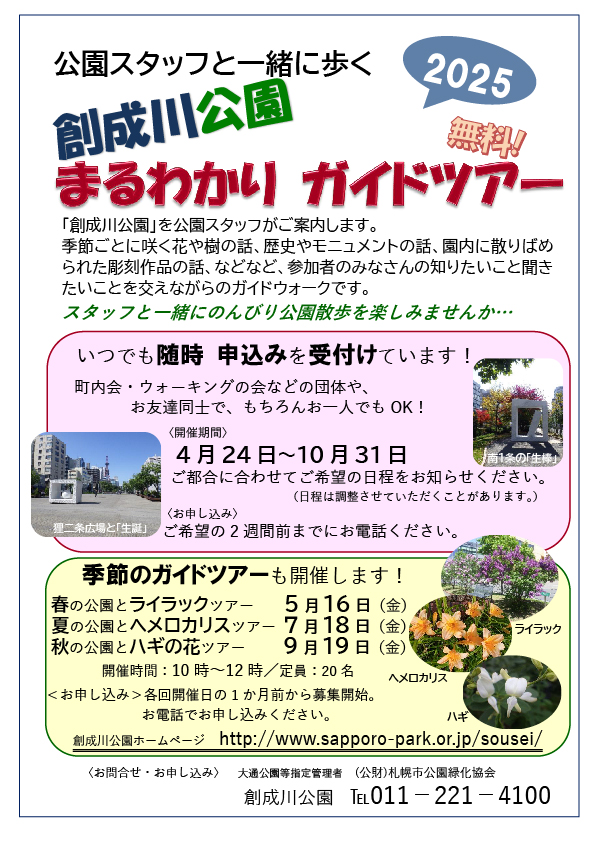 7月18日金曜日「夏の公園とヘメロカリスガイドツアー」を開催します。 公園内に約60カ所あり、25品種の花が咲くヘメロカリスの花壇。夏の公園を歩いて、夏の花ヘメロカリスを楽しみませんか。 ただいま参加者募集中です。 開催は、7月18日金曜日の午前10時から12時。 申込は、お電話で管理事務所まで。電話011-221-4100 今日咲いていたヘメロカリスの「ダブルキューティー」です。 こちらは6月から咲いている「ステラデオロ」 皆様のご参加をお待ちしております。