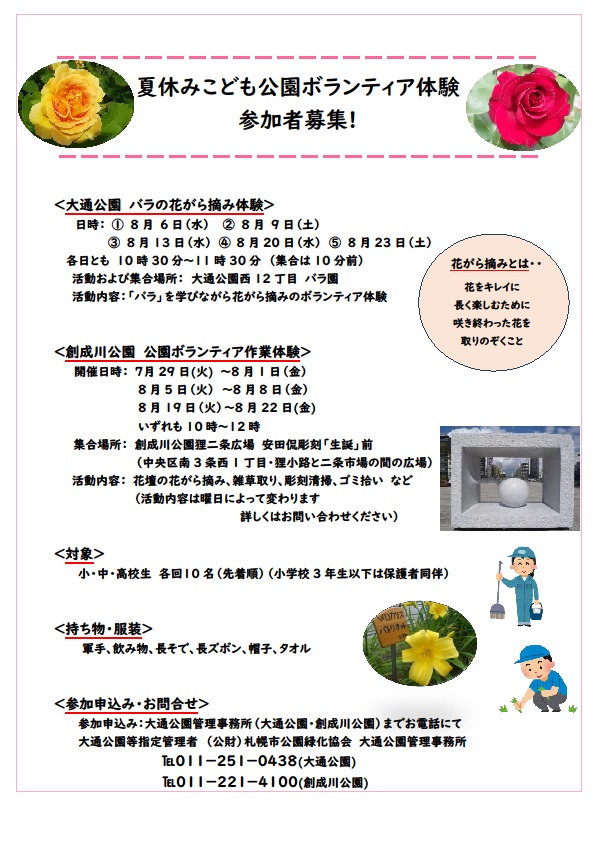 おとなりの大通公園でも「こども公園ボランティア」を募集しています。