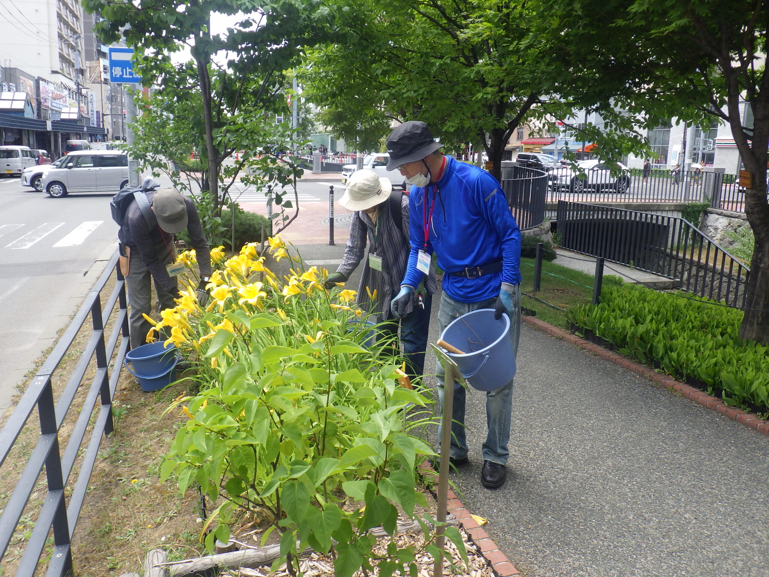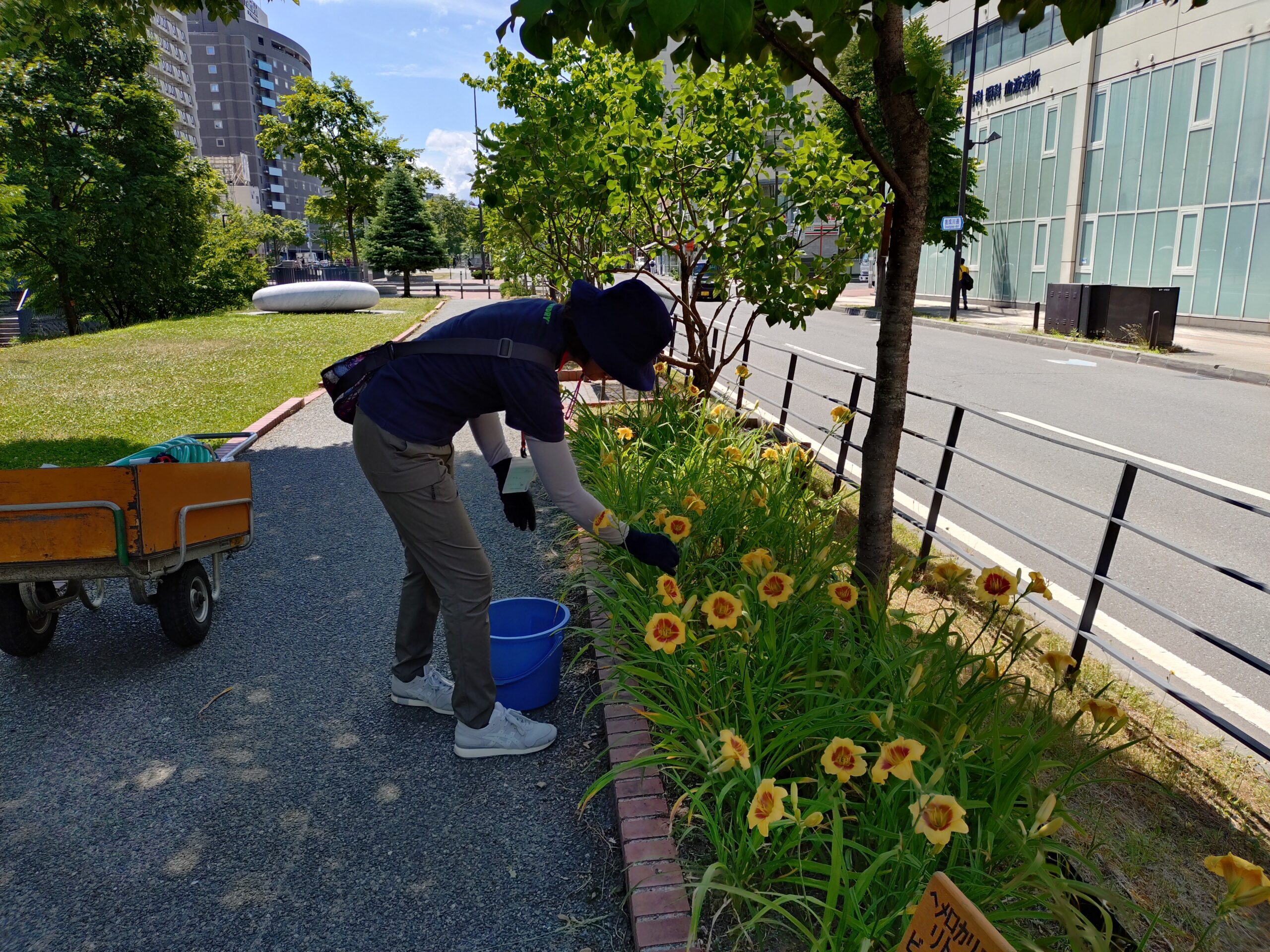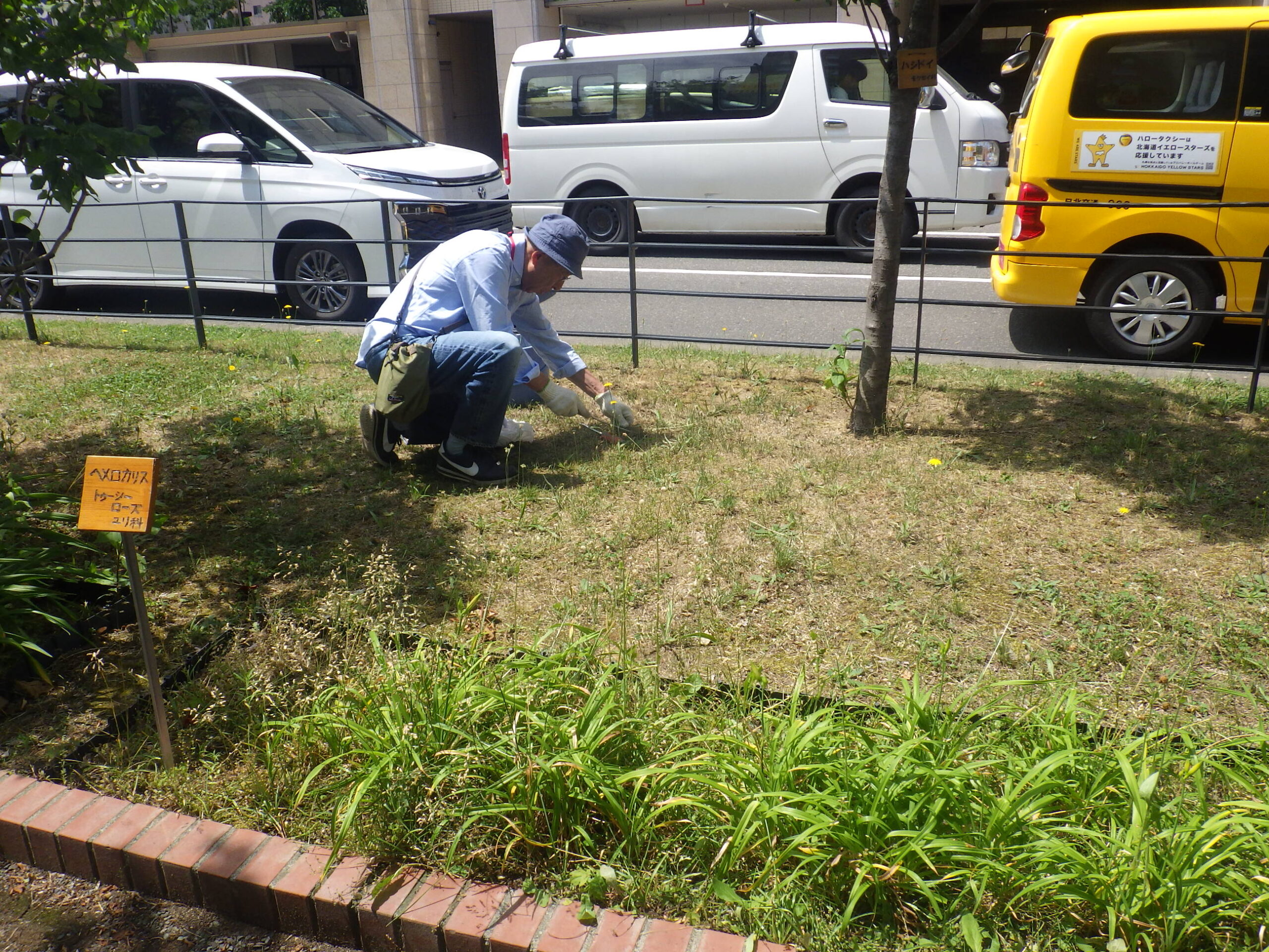 7月中旬の公園ボランティアの活動は、まず公園内を回ってのヘメロカリスの花がら摘みです。