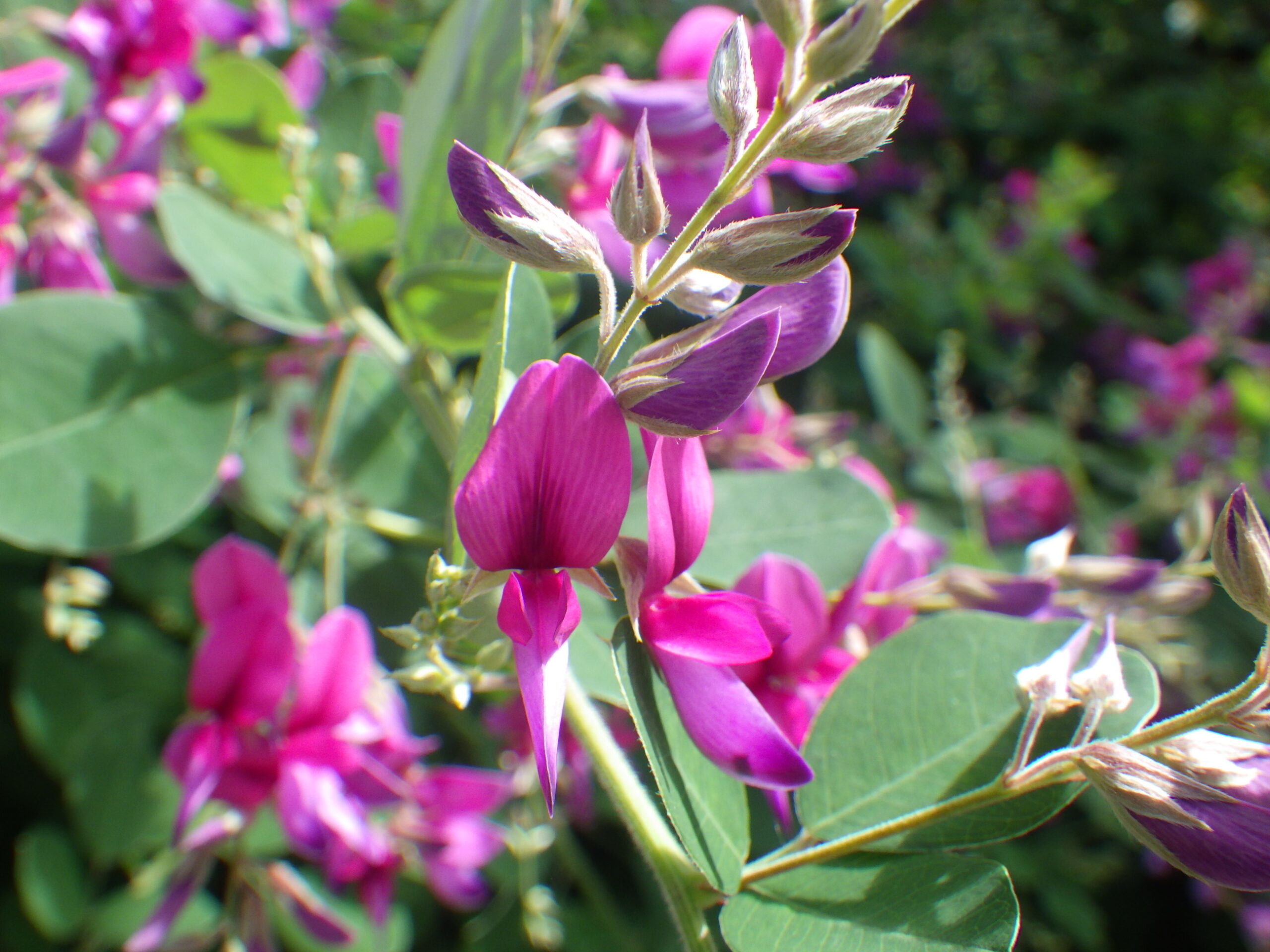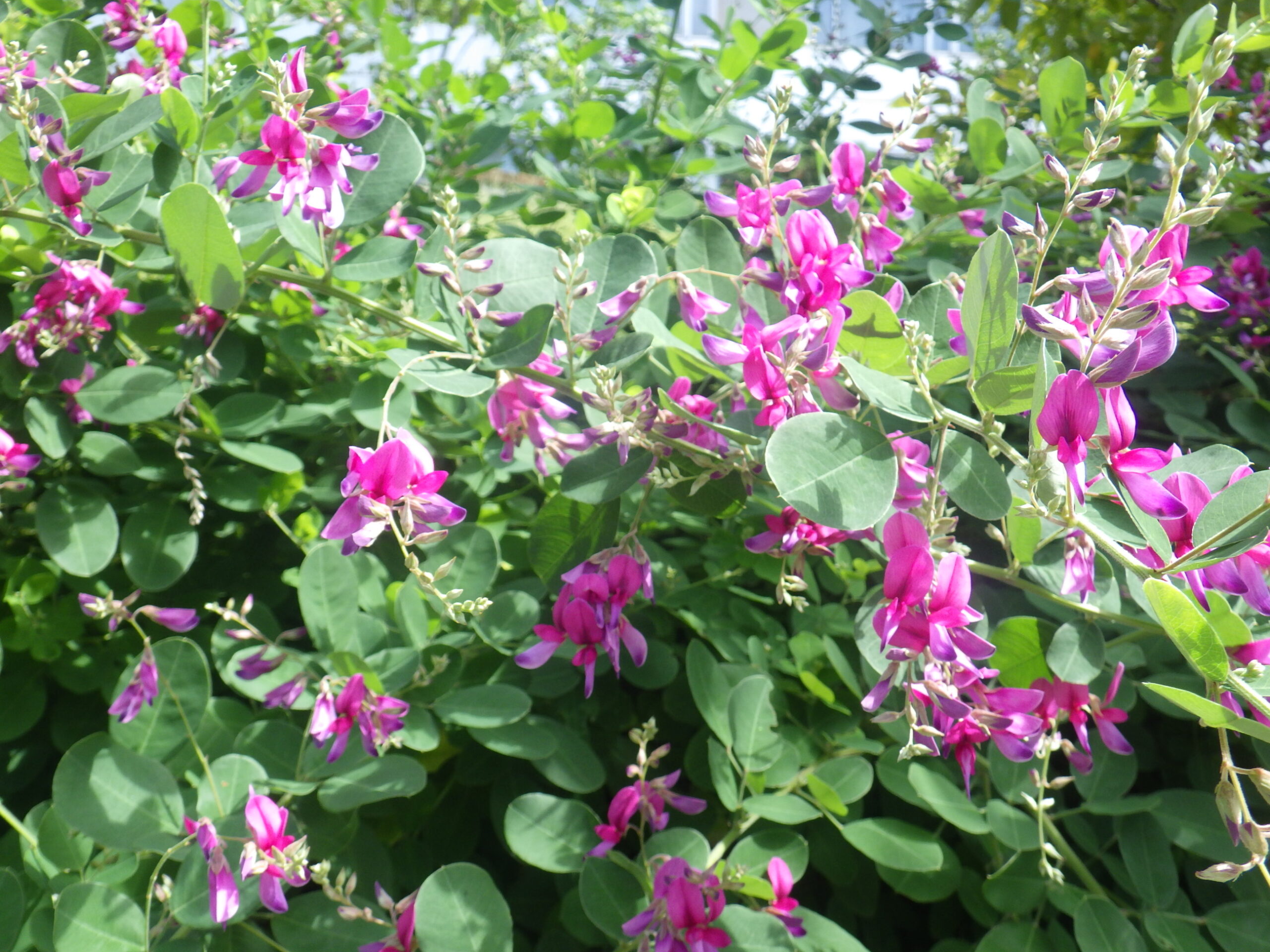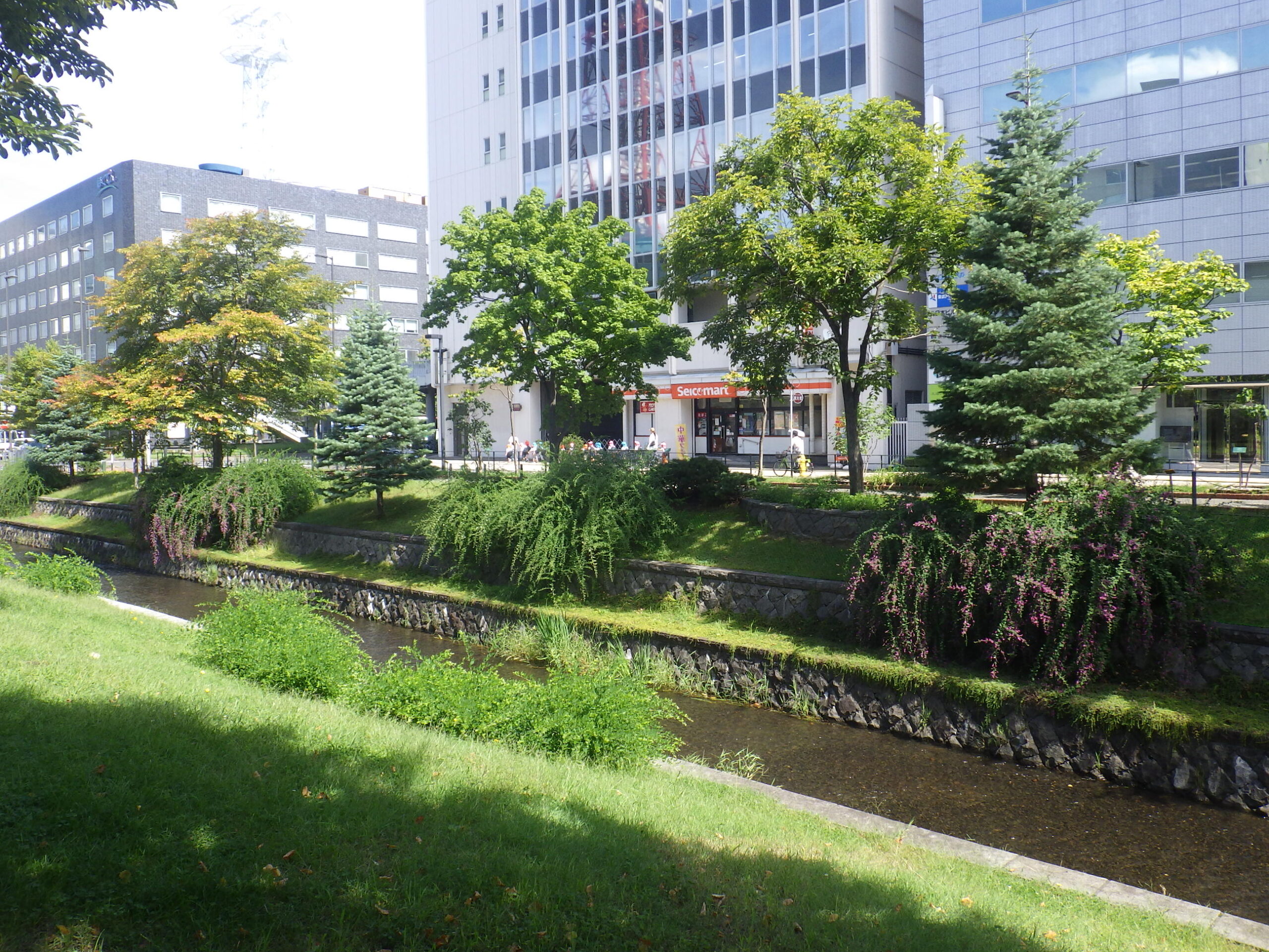 9月9日のハギの開花の様子です。 北1条のハギは少しづつ開花が進んでいます。 東側の下の園路の上や階段横のハギは、大きくなりすぎて通行の支障にならないよう、成長調整をして育てています。 それでも同じ時期にきれいに咲き始めています。 こちらは北1条西側の、成長調整をしていない、川に垂れさがるように育ったハギです。 茎が緑で葉が丸い、ケハギと思われる種類です。 ミヤギノハギの赤や白は少し遅れて開花が進みます。 南1条東側のハギもだんだん色づいてきました。