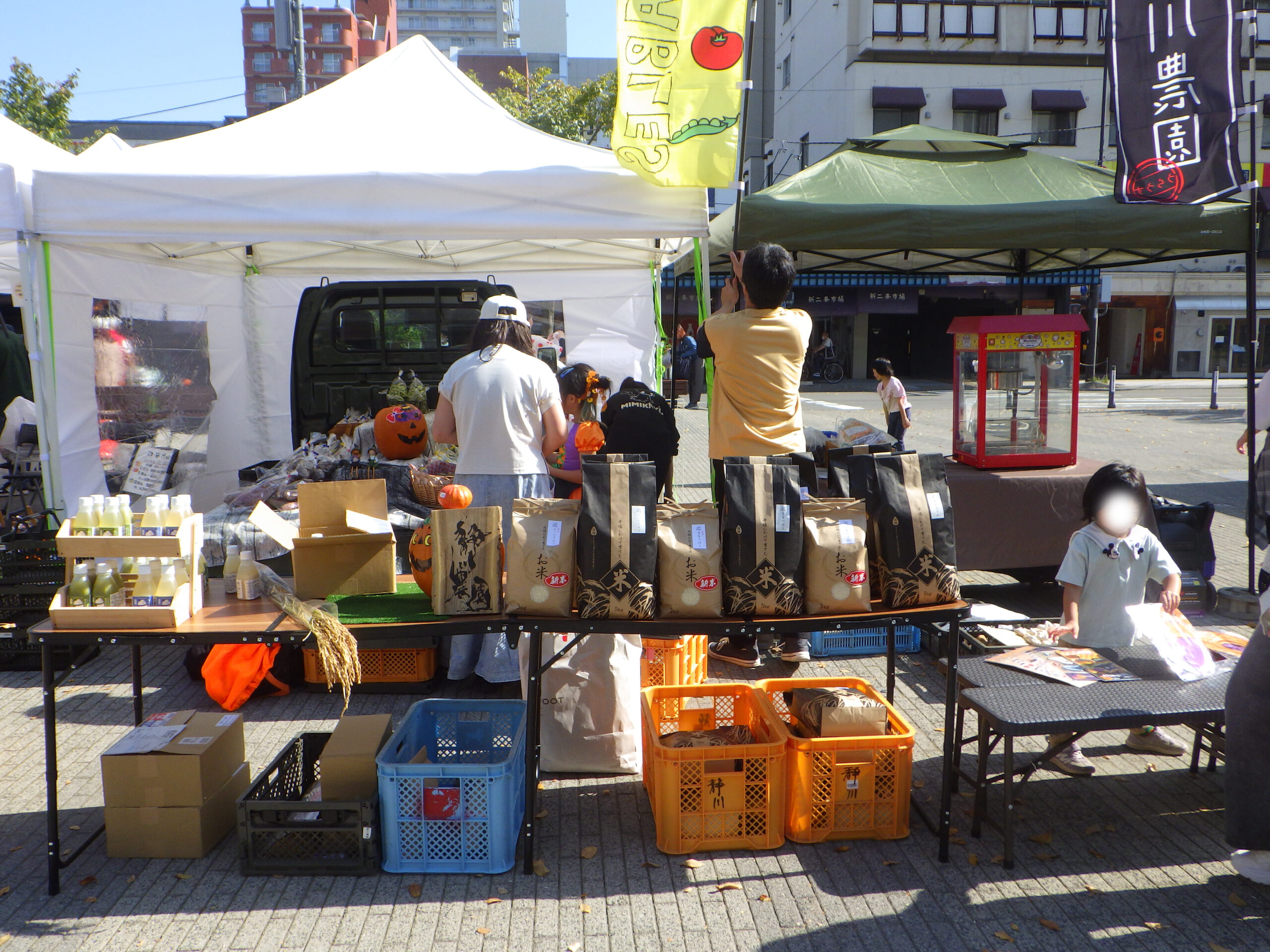 ハロウィンかぼちゃと秋の味覚の野菜販売、お米や収穫したコーンで作ったポップコーンも販売です。