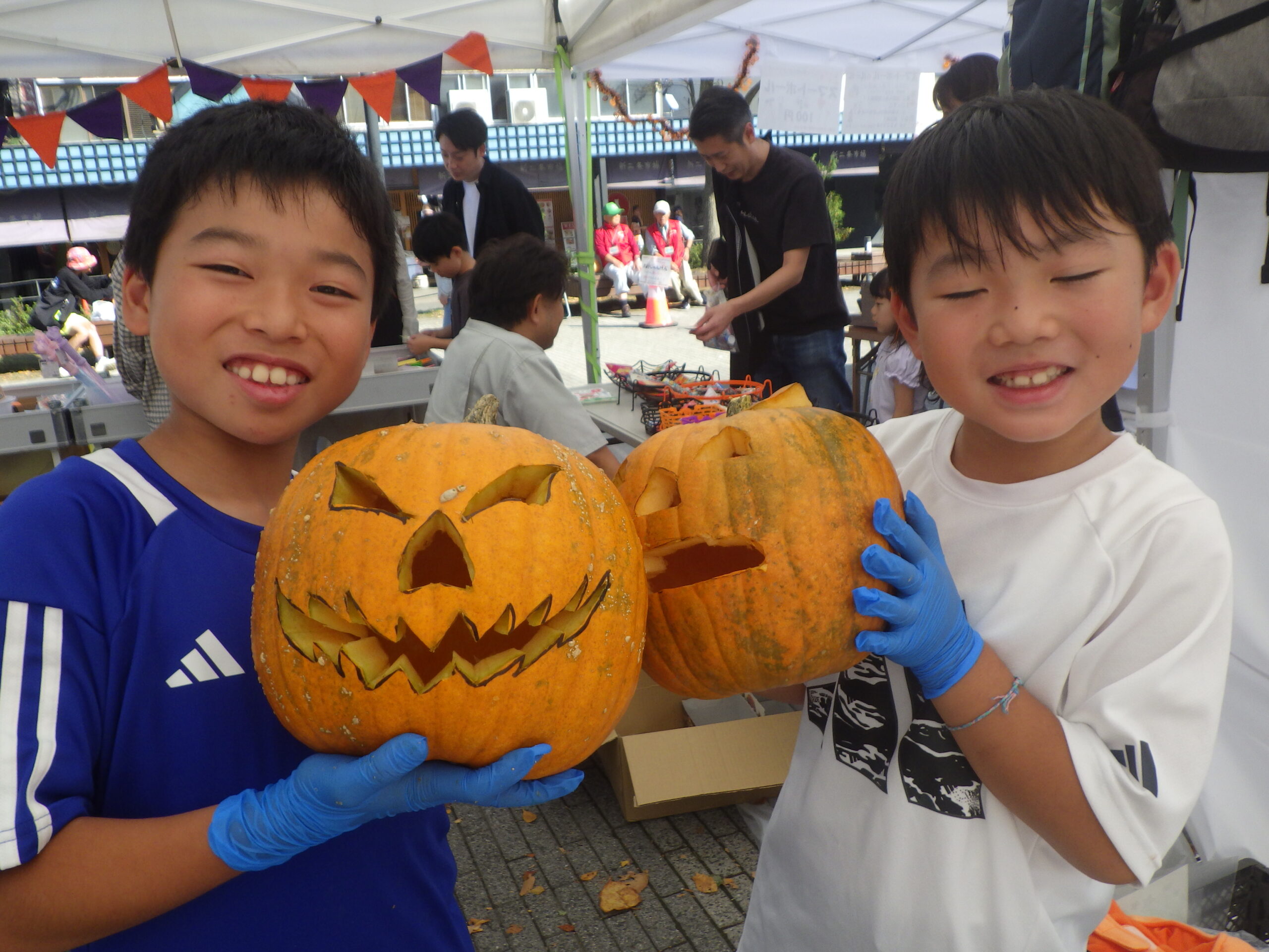 ほんものかぼちゃをくりぬいて削って作る「ジャック・オー・ランタン」作りは今年初めての開催でした。
