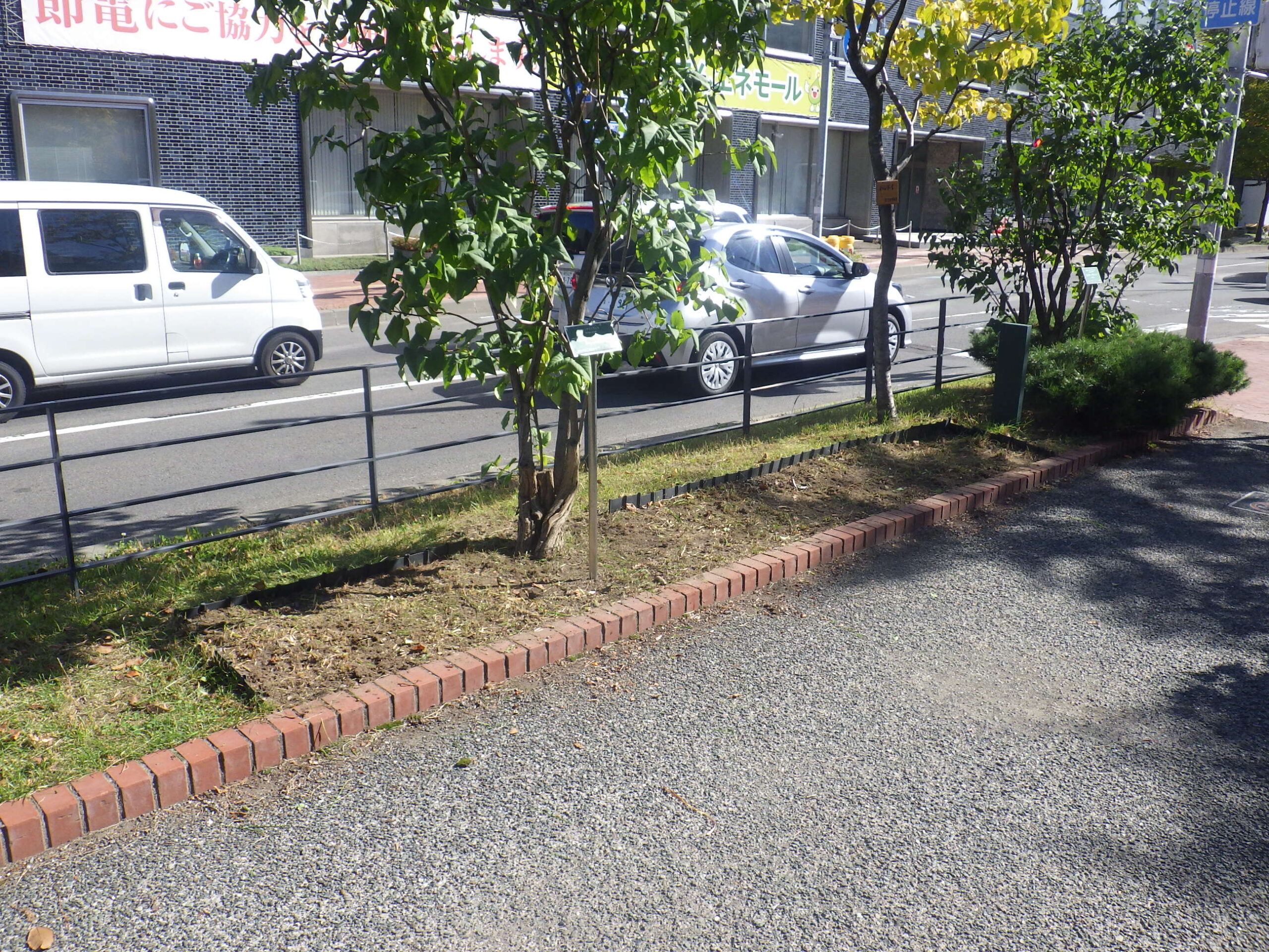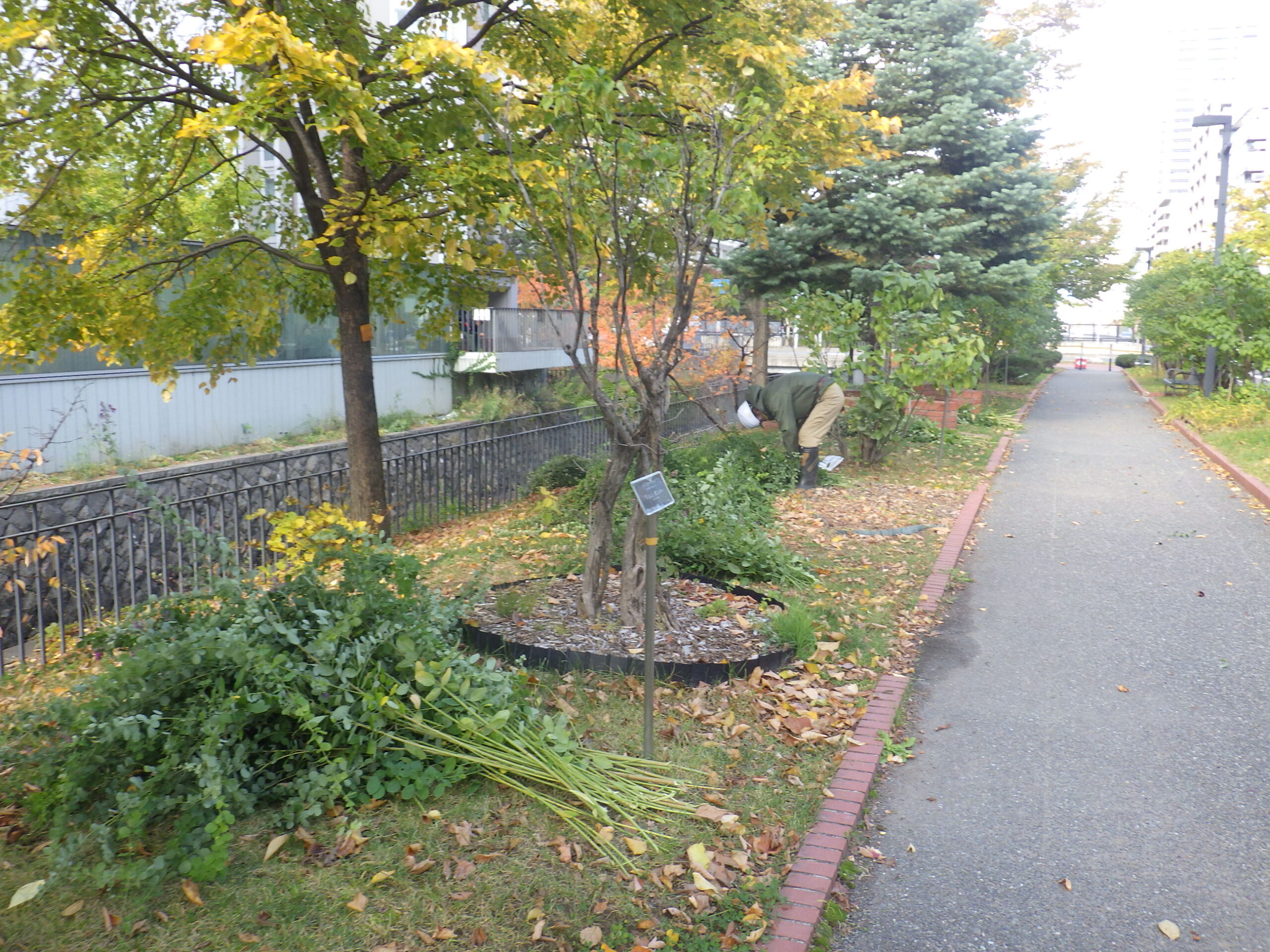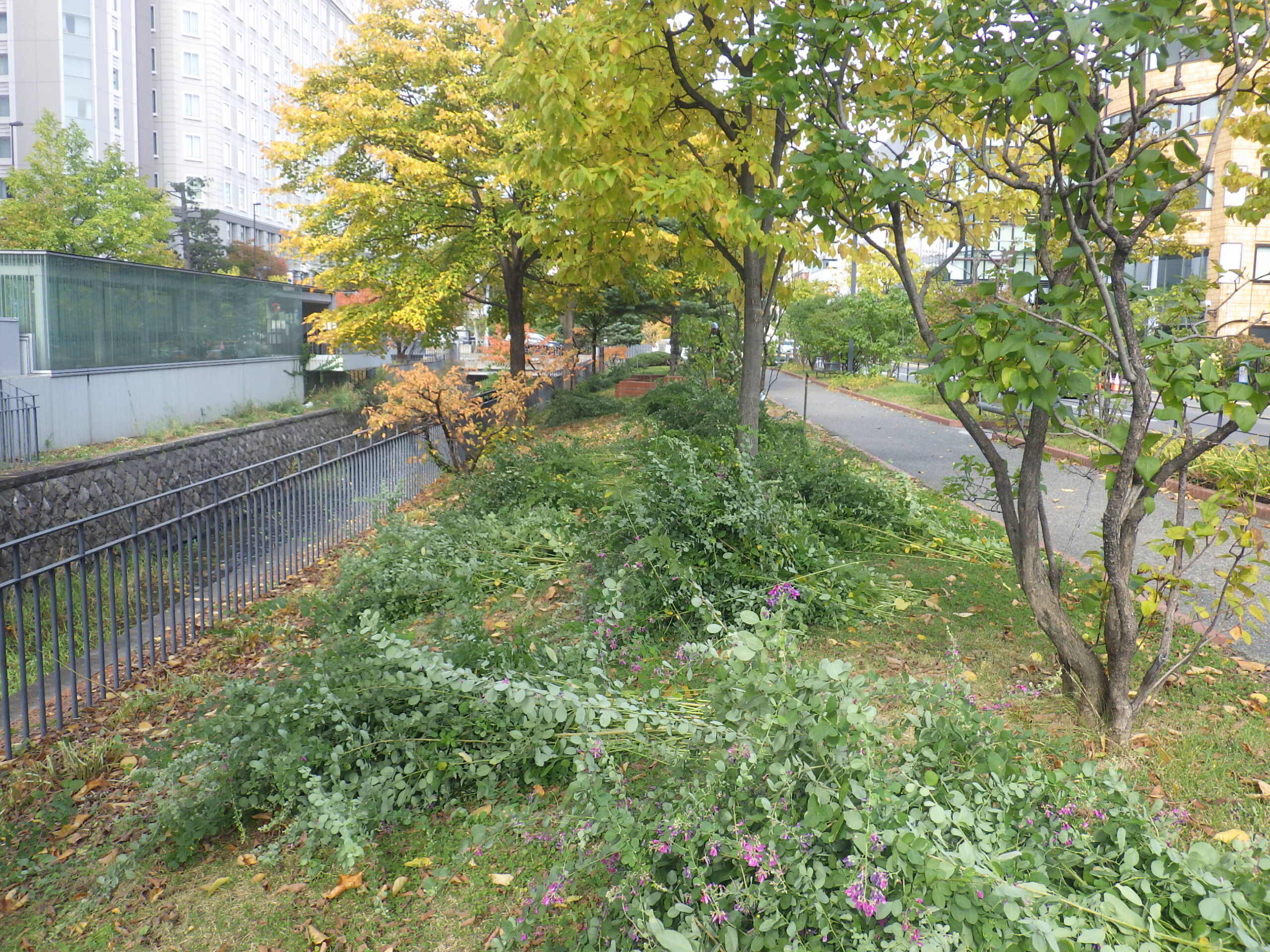 同じくスズラン花壇もきれいに刈取られて冬を待ちます。公園ボランティアのお助け隊が刈取り作業を行っています。