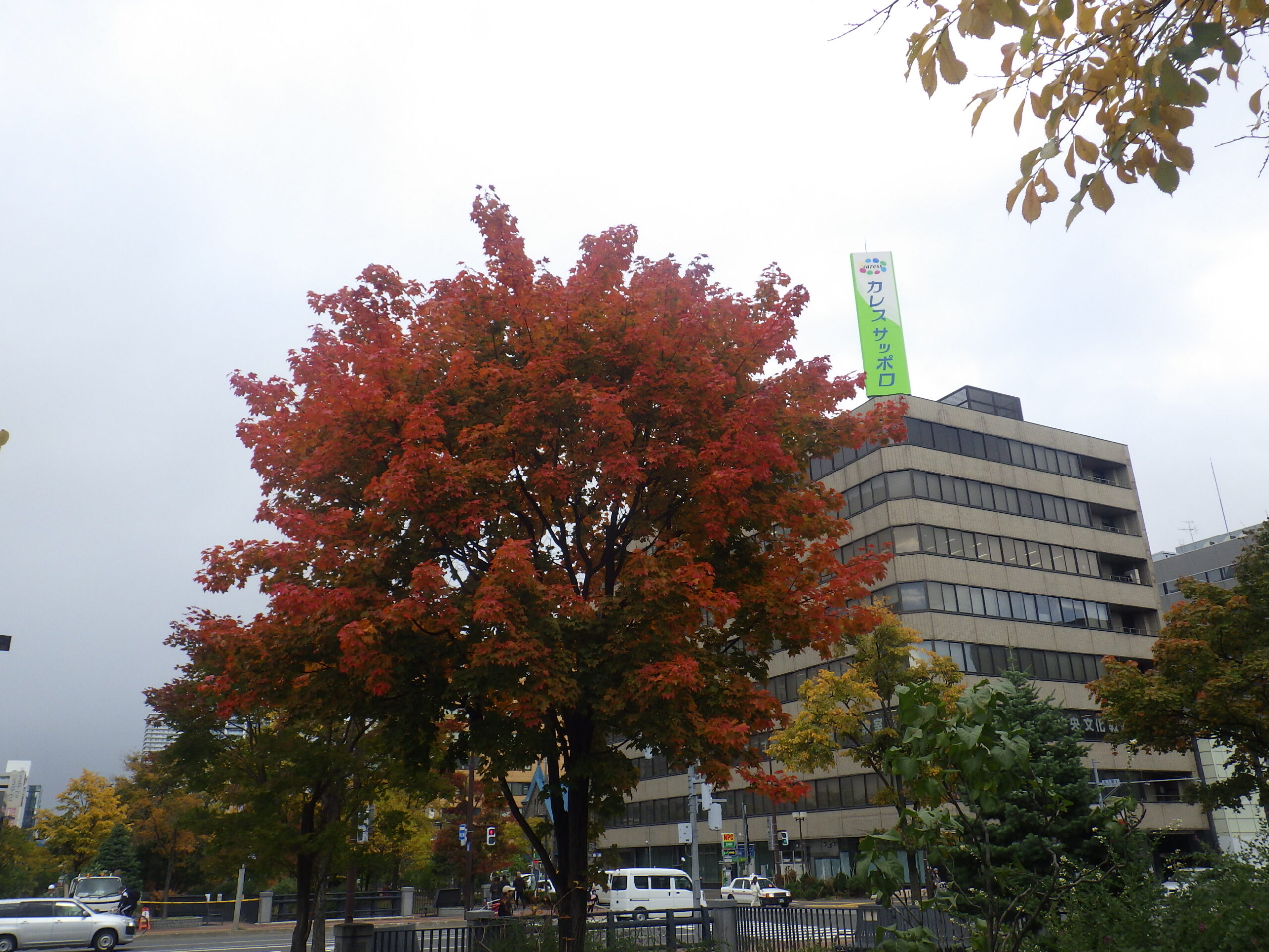 南1条のエゾヤマザクラとシナノキです。赤と黄色がとても綺麗です。